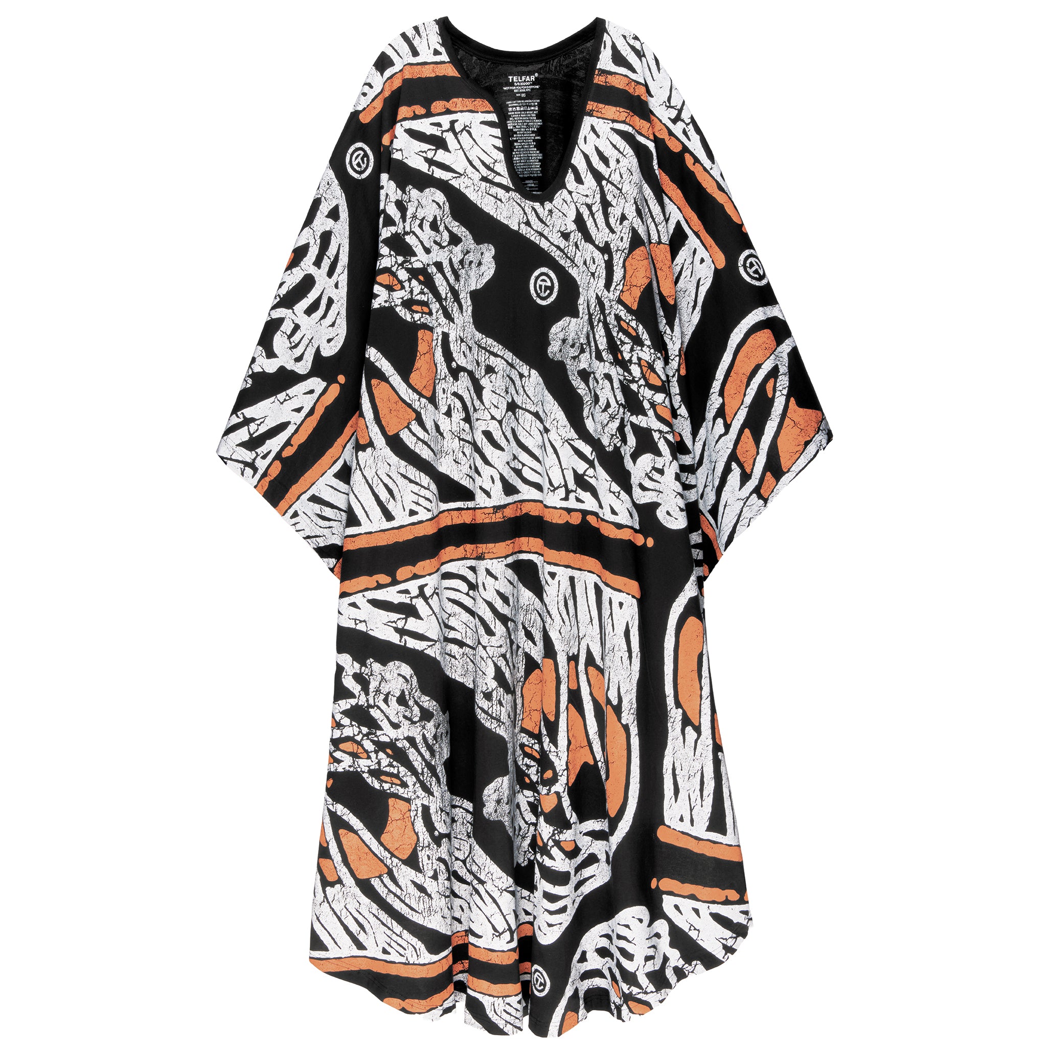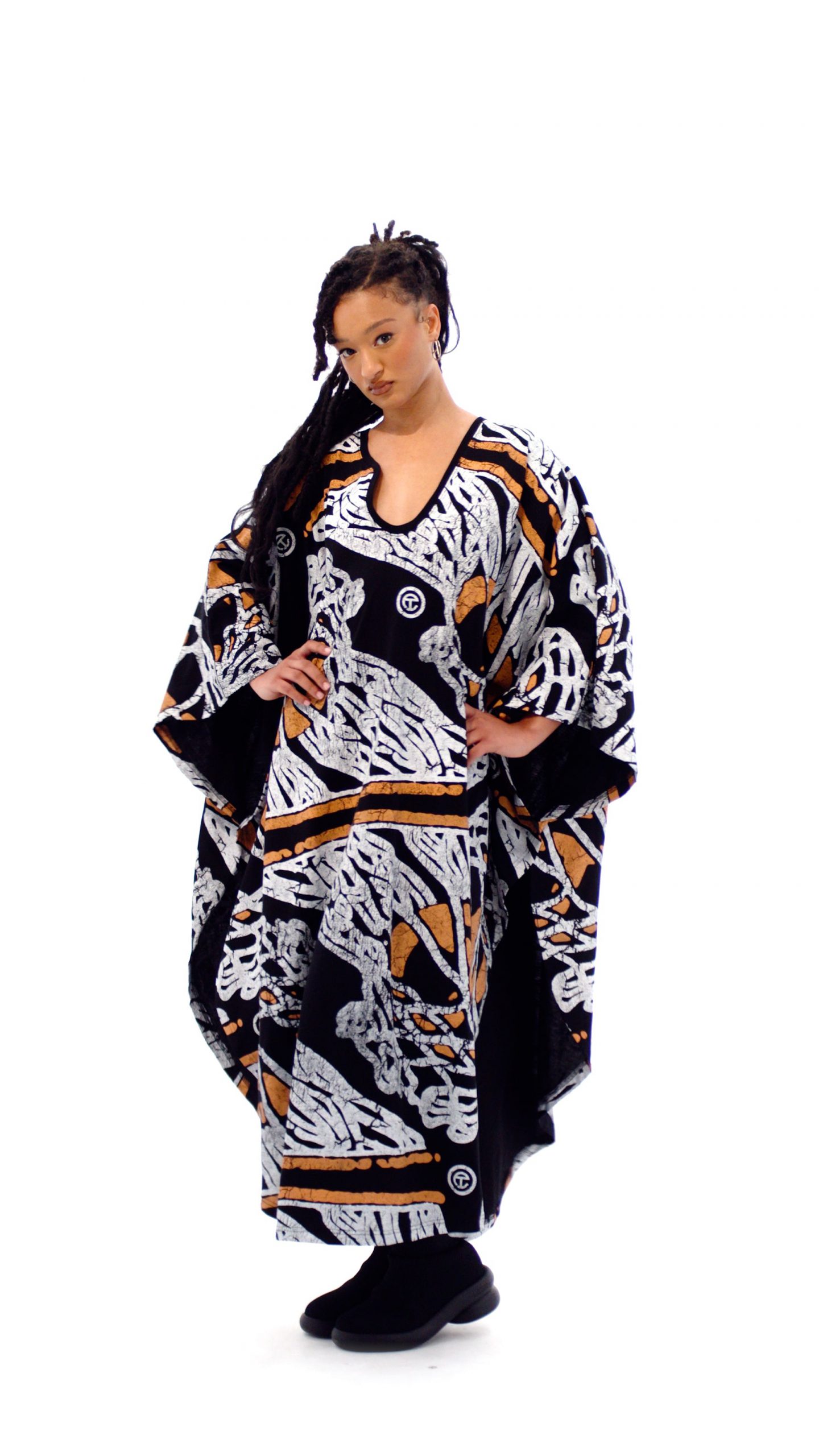 One-size soft jersey caftan with signature Basketball print and Africa neckline. Featuring long sleeves, asymmetrical hemline and draped silhouette.