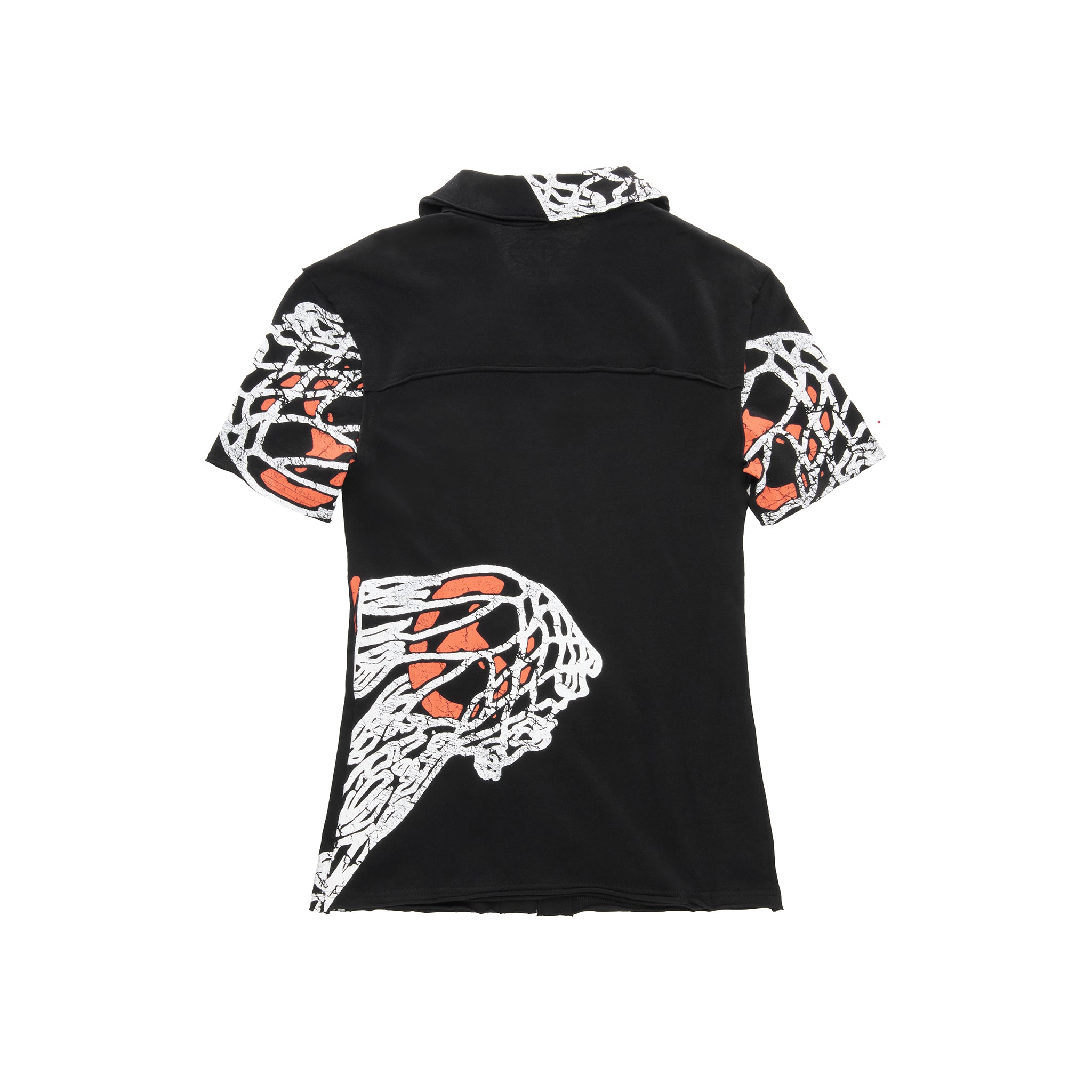 The Split T Dress Shirt – featuring our signature Basketball print on 100% ultra-soft jersey cotton. Constructed with a classic collar, short sleeves, chest pocket and forming a relaxed fit with hidden button closures, exposed seams and raw edges.