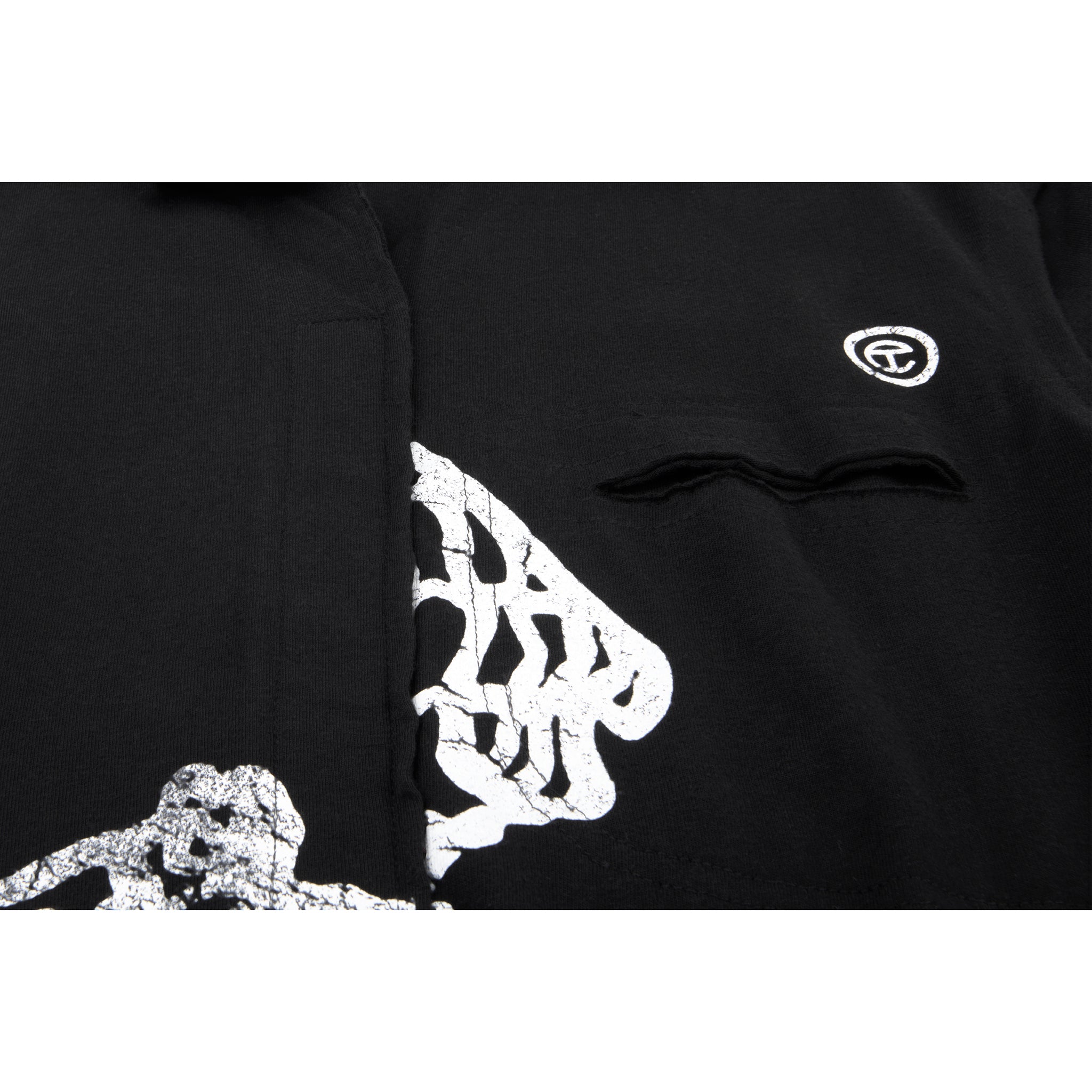 The Split T Dress Shirt – featuring our signature Basketball print on 100% ultra-soft jersey cotton. Constructed with a classic collar, short sleeves, chest pocket and forming a relaxed fit with hidden button closures, exposed seams and raw edges.