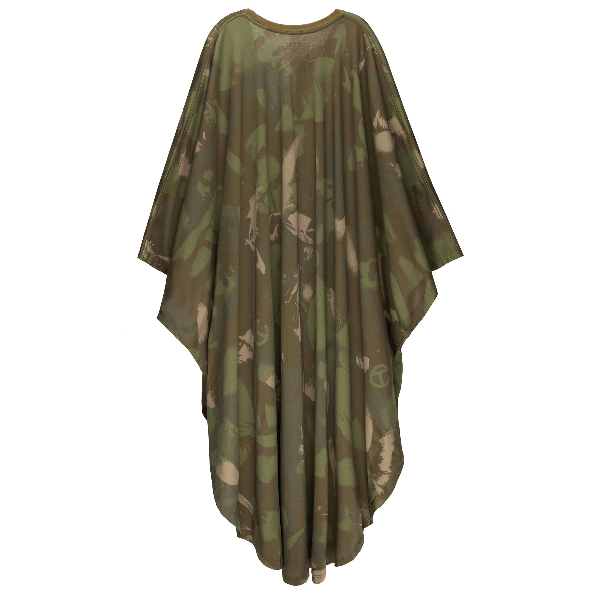 One-size soft jersey caftan with signature Camo print and Africa neckline. Featuring long sleeves, asymmetrical hemline and draped silhouette.