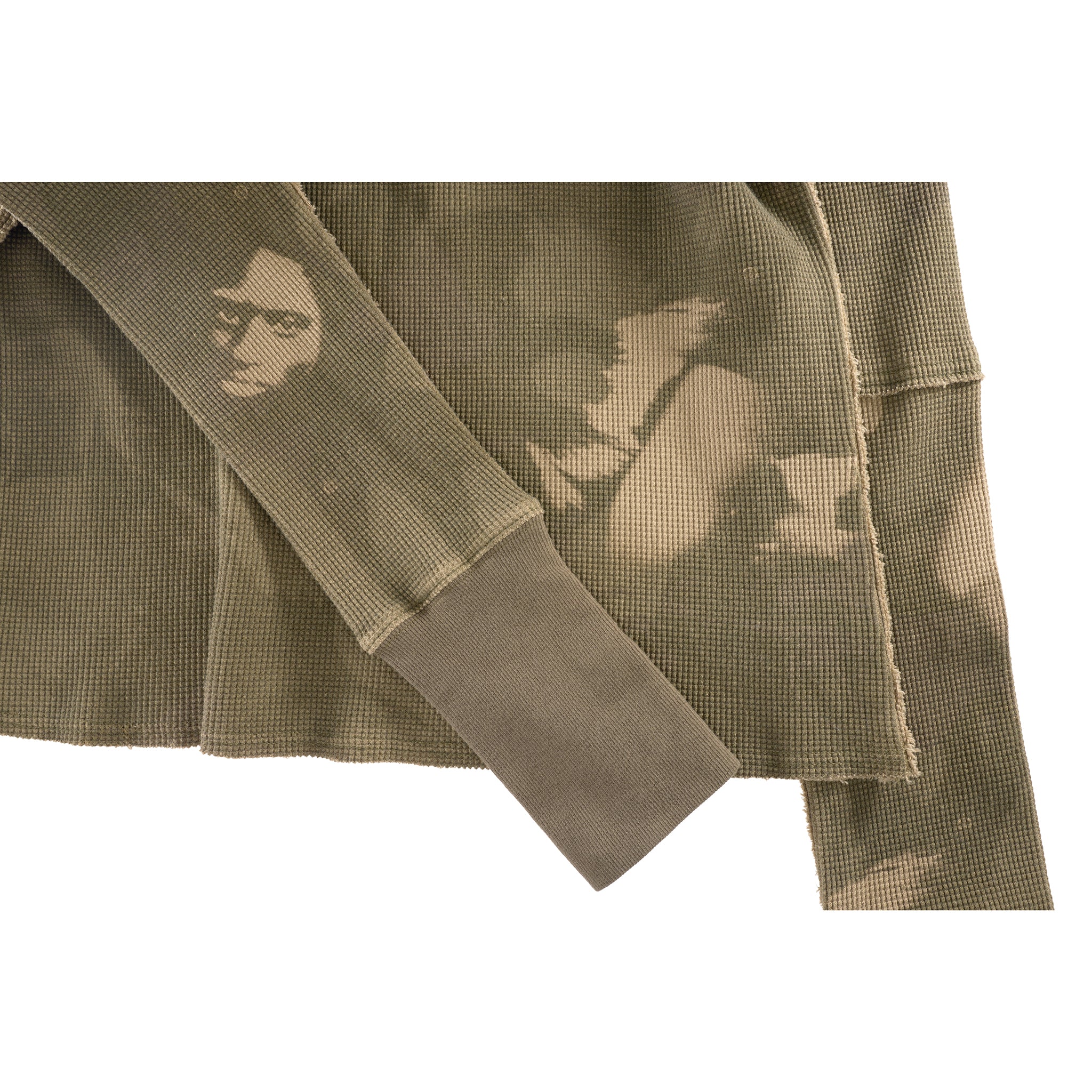 Our iconic thermal pull-over in extra-heavy waffle knit. Featuring long sleeves with ribbed cuffs, thumbholes to keep you warm and contrast edges with distressed seams.