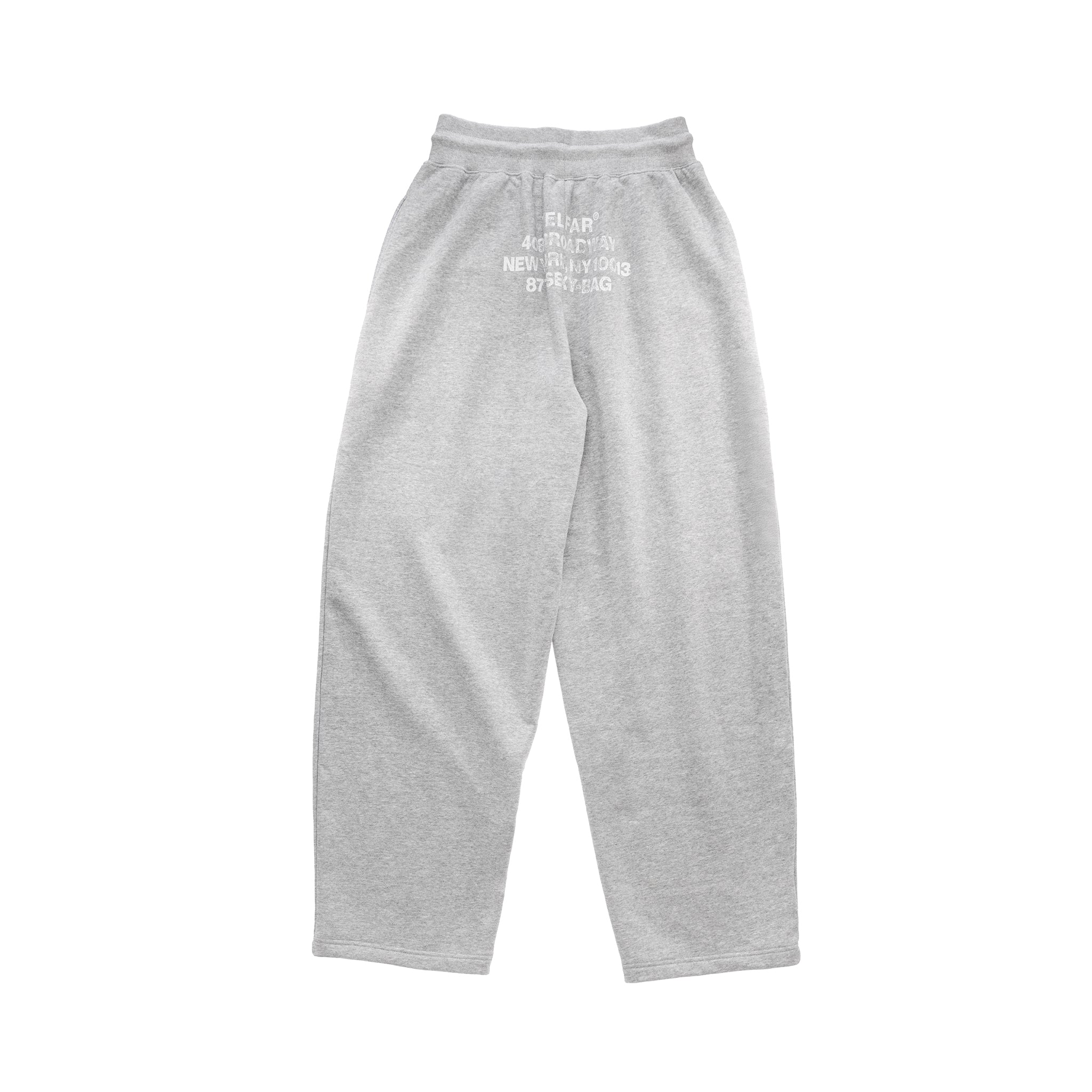 Sweatpant featuring adjustable drawstring tie closure at waistband, signature screenprinted Canal logo at thigh, and 408 Broadway logo at the back panel. Tonal side seams, hidden side pockets. Relaxed straight leg silhouette.