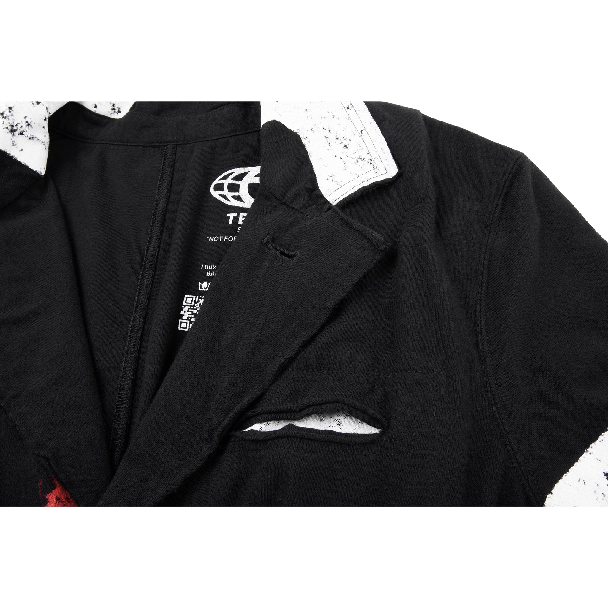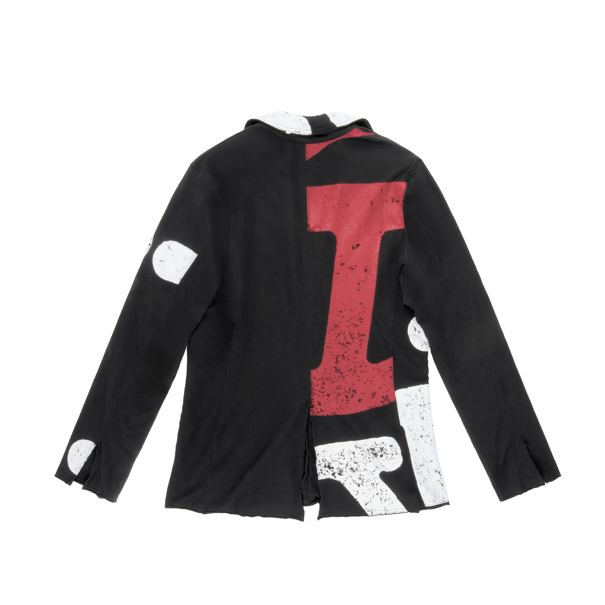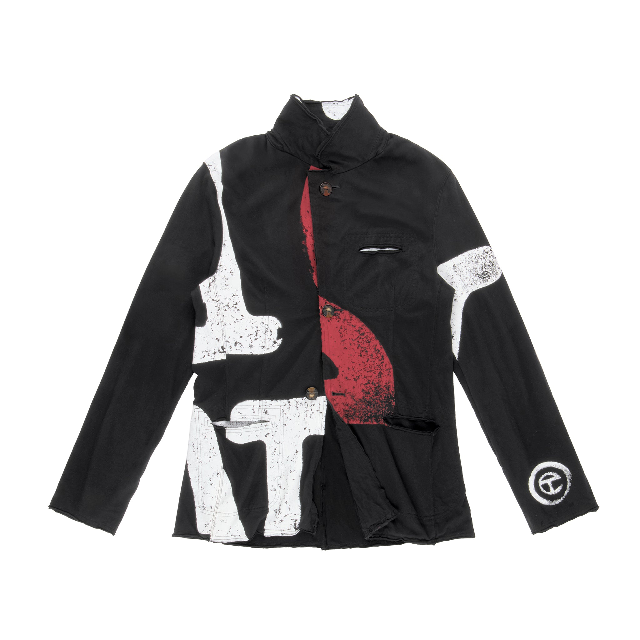 The T-Shirt Blazer — featuring our signature Canal print on 100% ultra-soft jersey cotton. Constructed with lapel collar, chest pockets, deep slit pockets at the waist, custom faux horn buttons, exposed seams and raw edges.