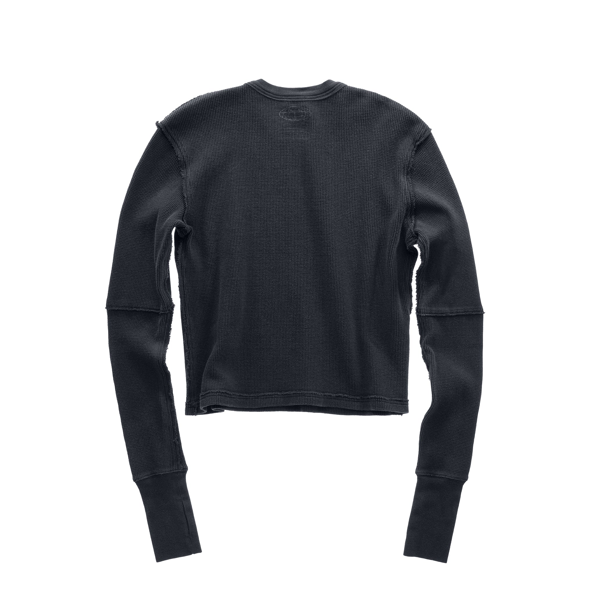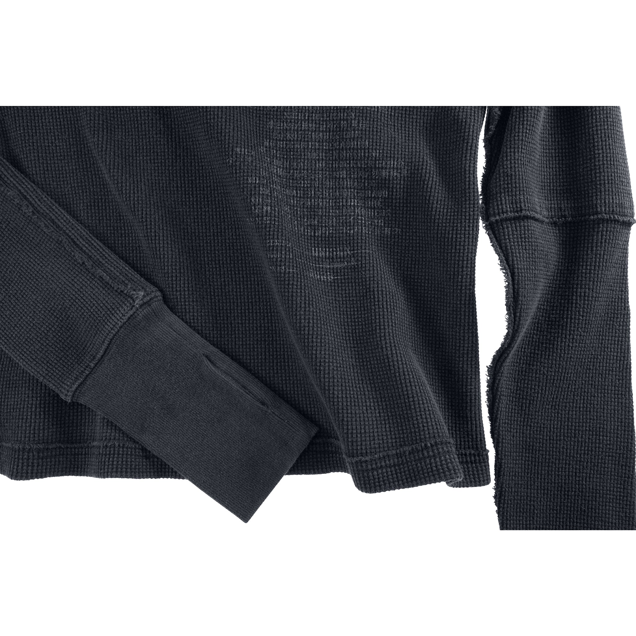 Our iconic thermal pull-over in extra-heavy waffle knit. Featuring long sleeves with ribbed cuffs, thumbholes to keep you warm and contrast edges with distressed seams.