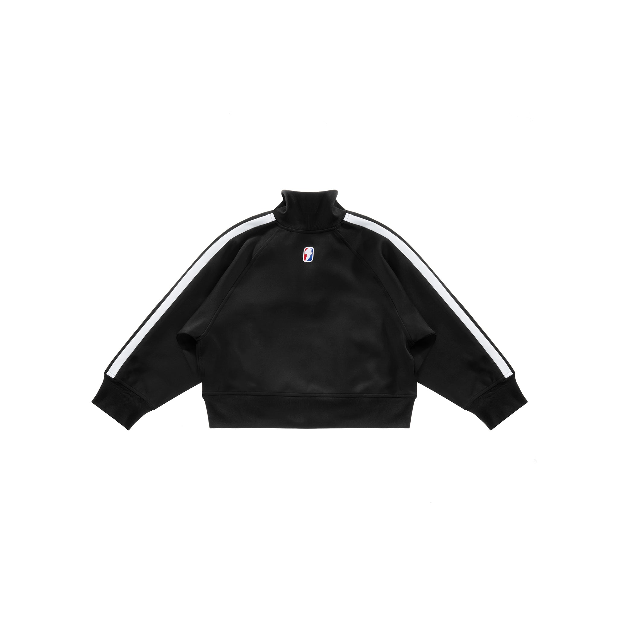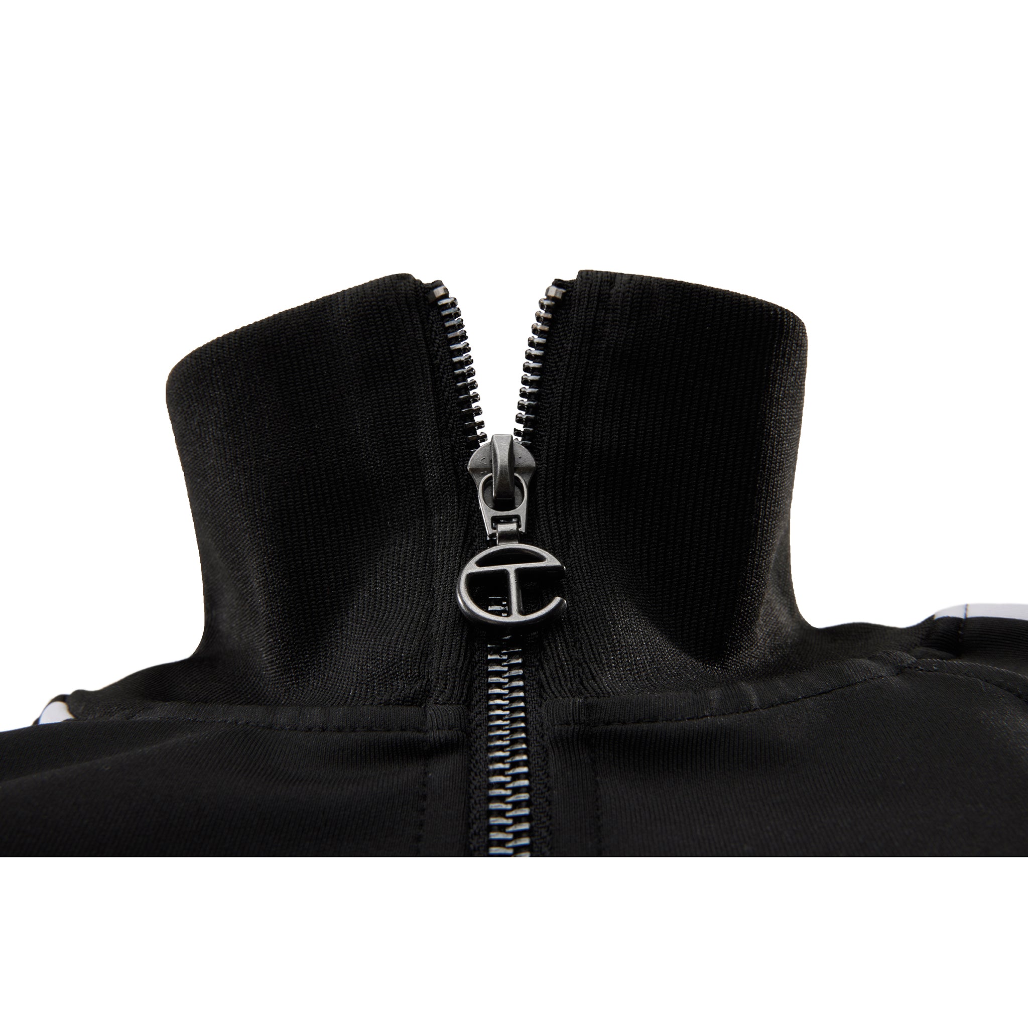 Cropped track jacket featuring sculptural stripes on the sleeves, athletic logo embroidery on the chest, logo zipper pull, welt pockets with zipper closures, ribbed collar, cuffs and waistband.