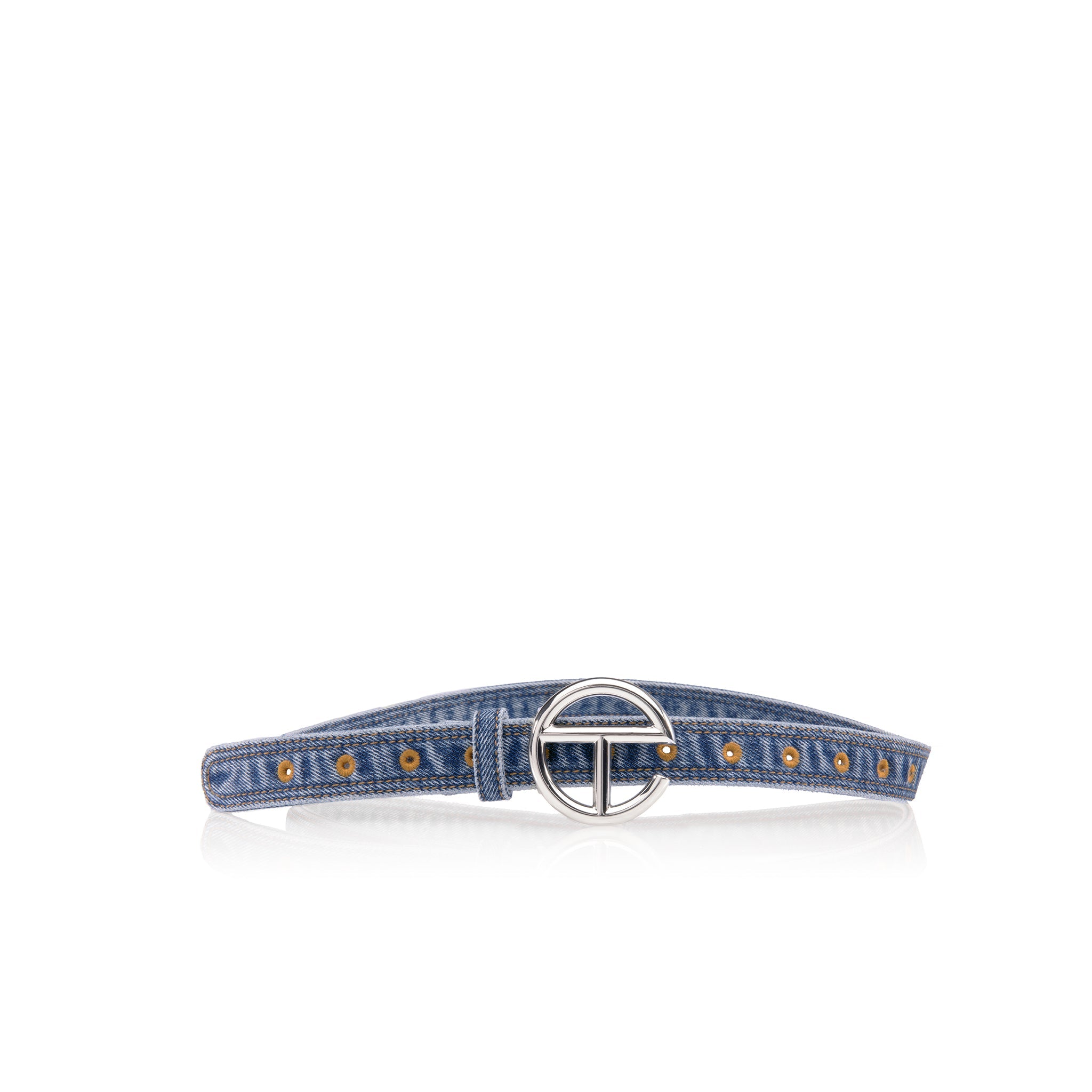 An Everyday belt for Everyone, inspired by our iconic Unisex Shopping Bag. Made from washed denim and featuring a chrome-finish logo buckle, contrast topstitching and painted edges. Available in two sizes. Belt is protected by a drawstring bag and rigid outer box with silver foil logo.