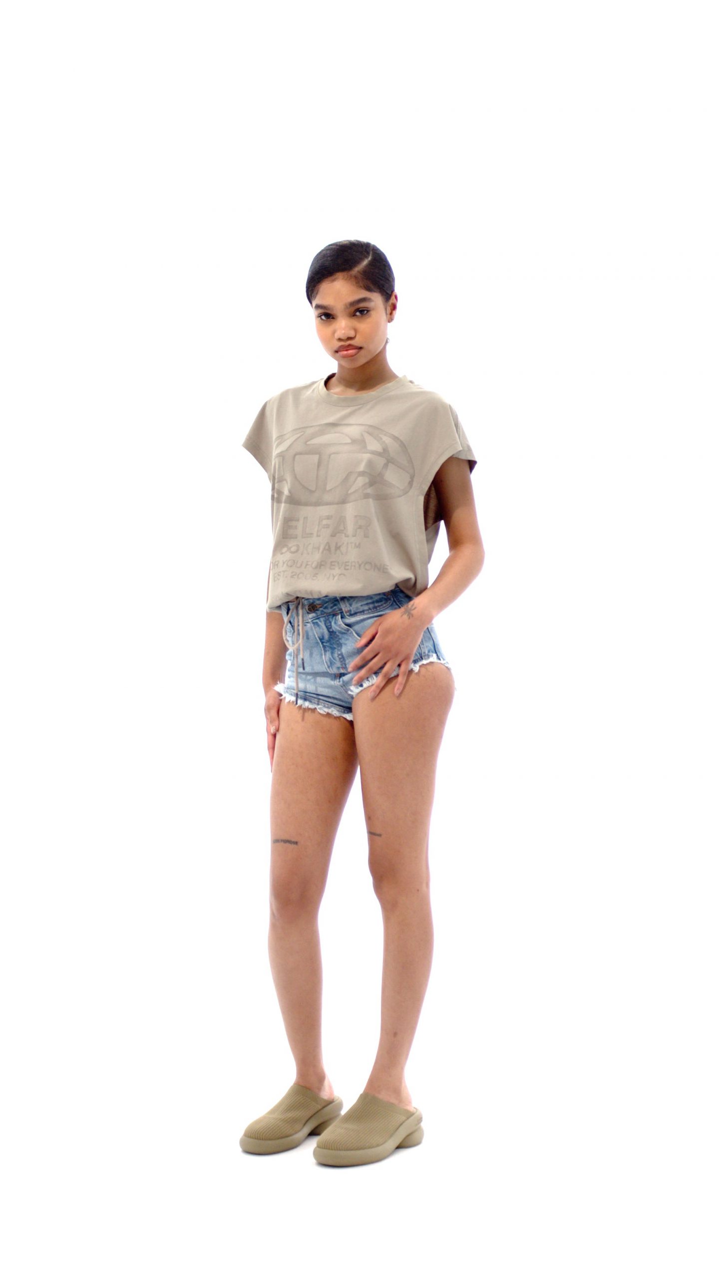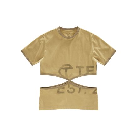 Our iconic Wrap T — featuring cap sleeves and adjustable ties that wrap from front to back. Draped and cropped with signature Camo print.