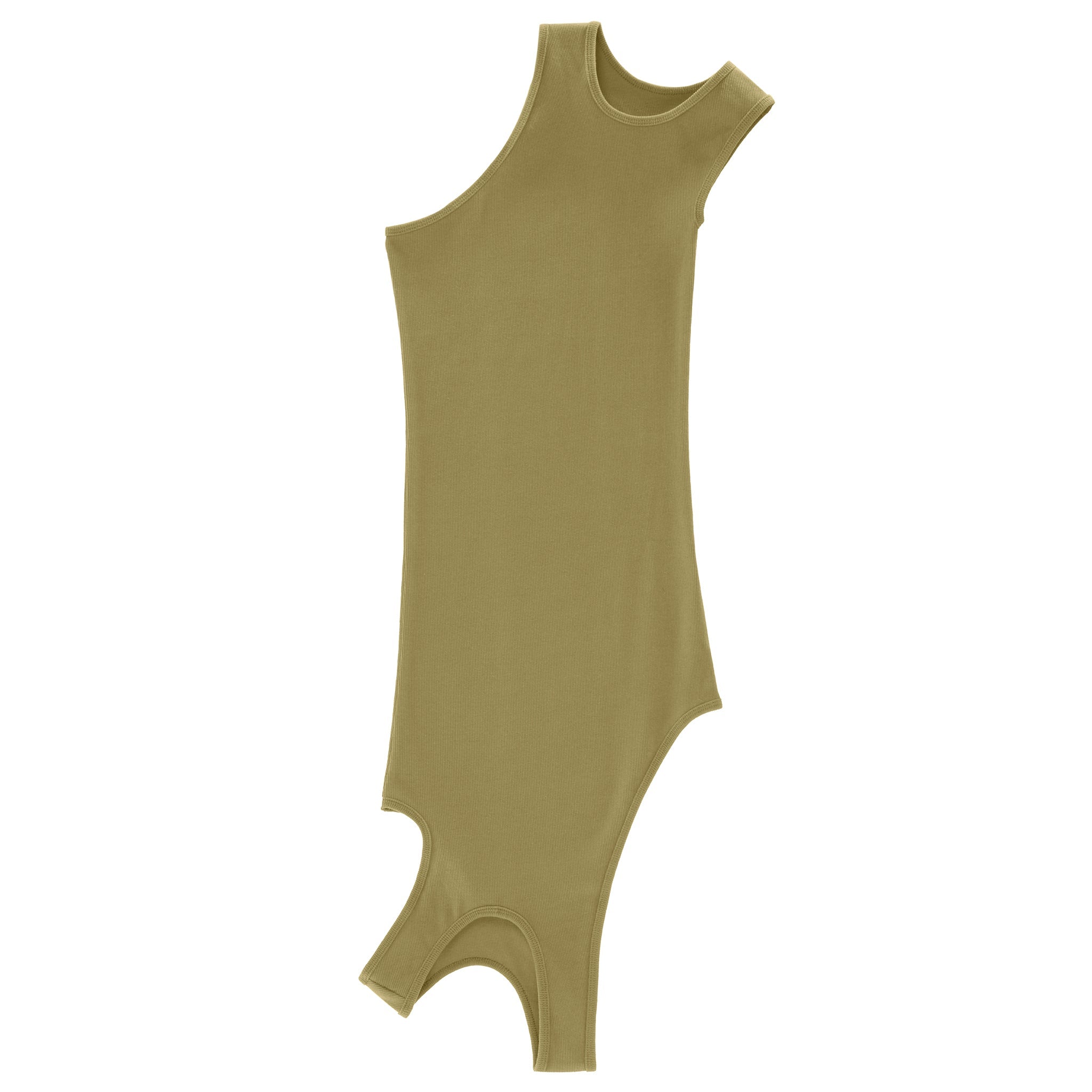 Our iconic unisex Half Tank in high quality cotton rib constructed in tunic length featuring leg compartment with asymmetrical hemline above the knee.