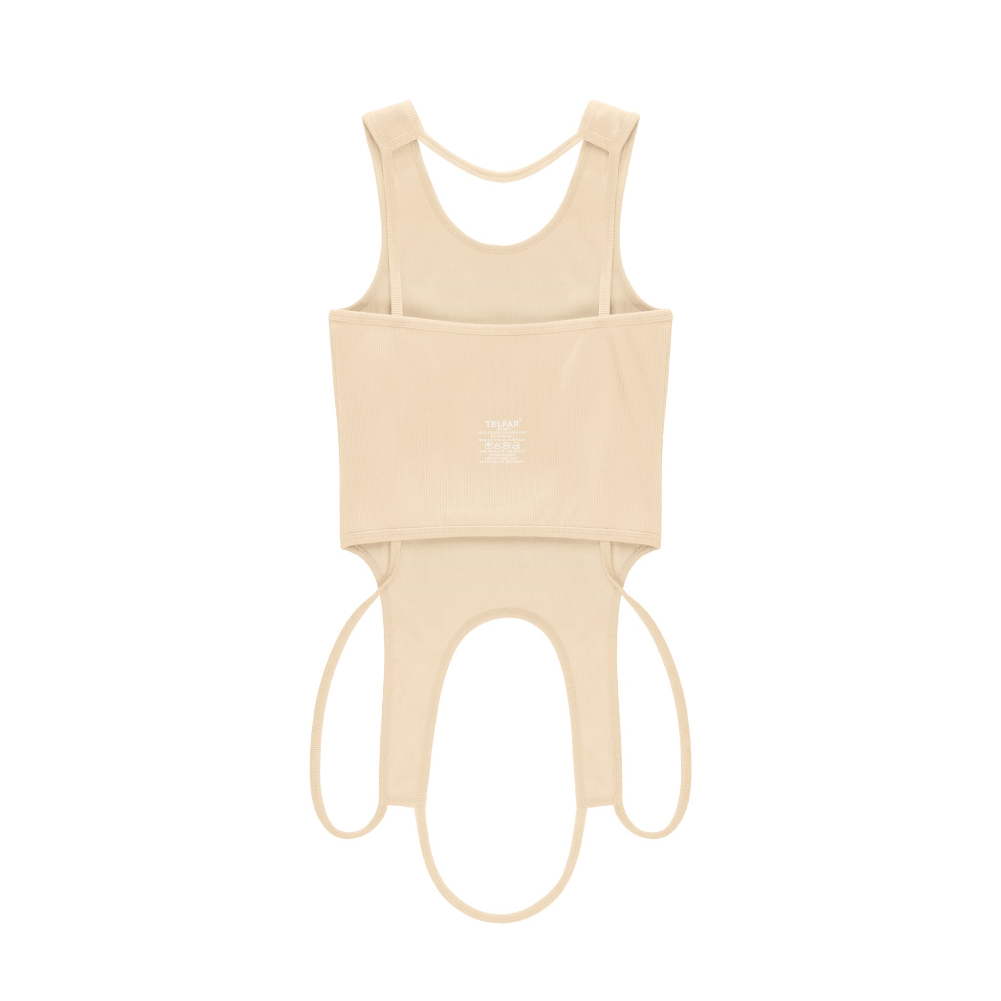 Our iconic unisex Halter Tank in high quality cotton rib featuring infinity cutout with symmetrical straps at the hemline that hang below waist.