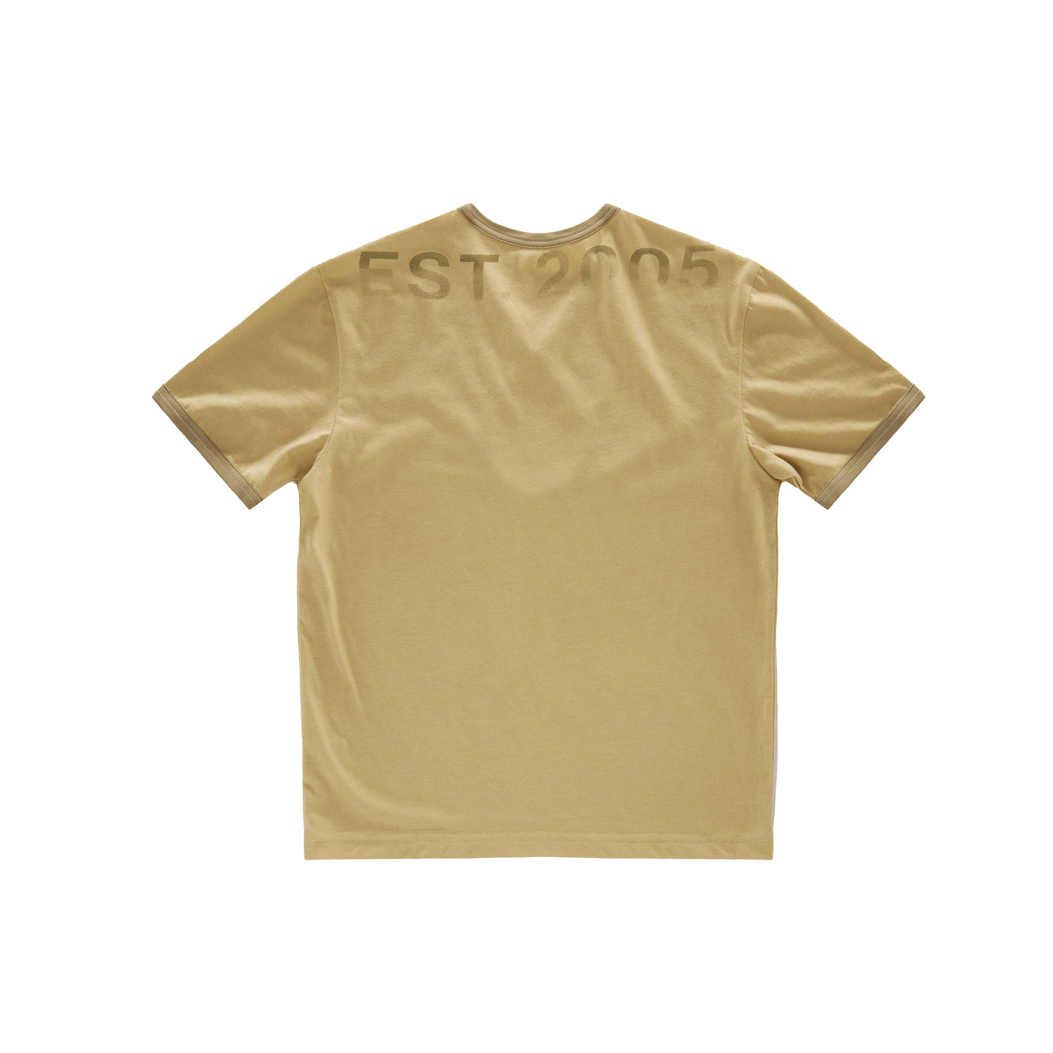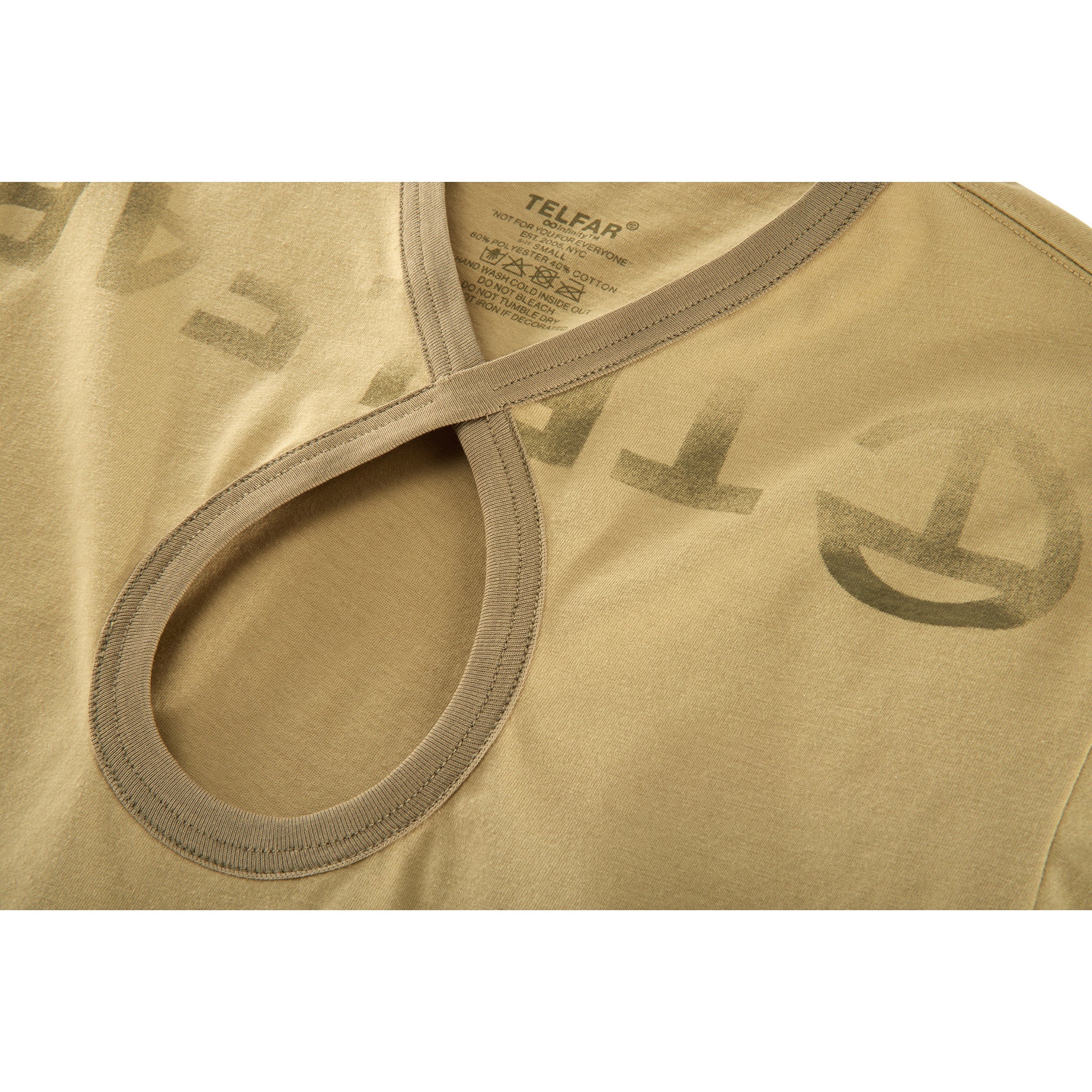 Short sleeve tee featuring low cut neckline, ribbed trim, and infinity keyhole cutout with faded logo print.