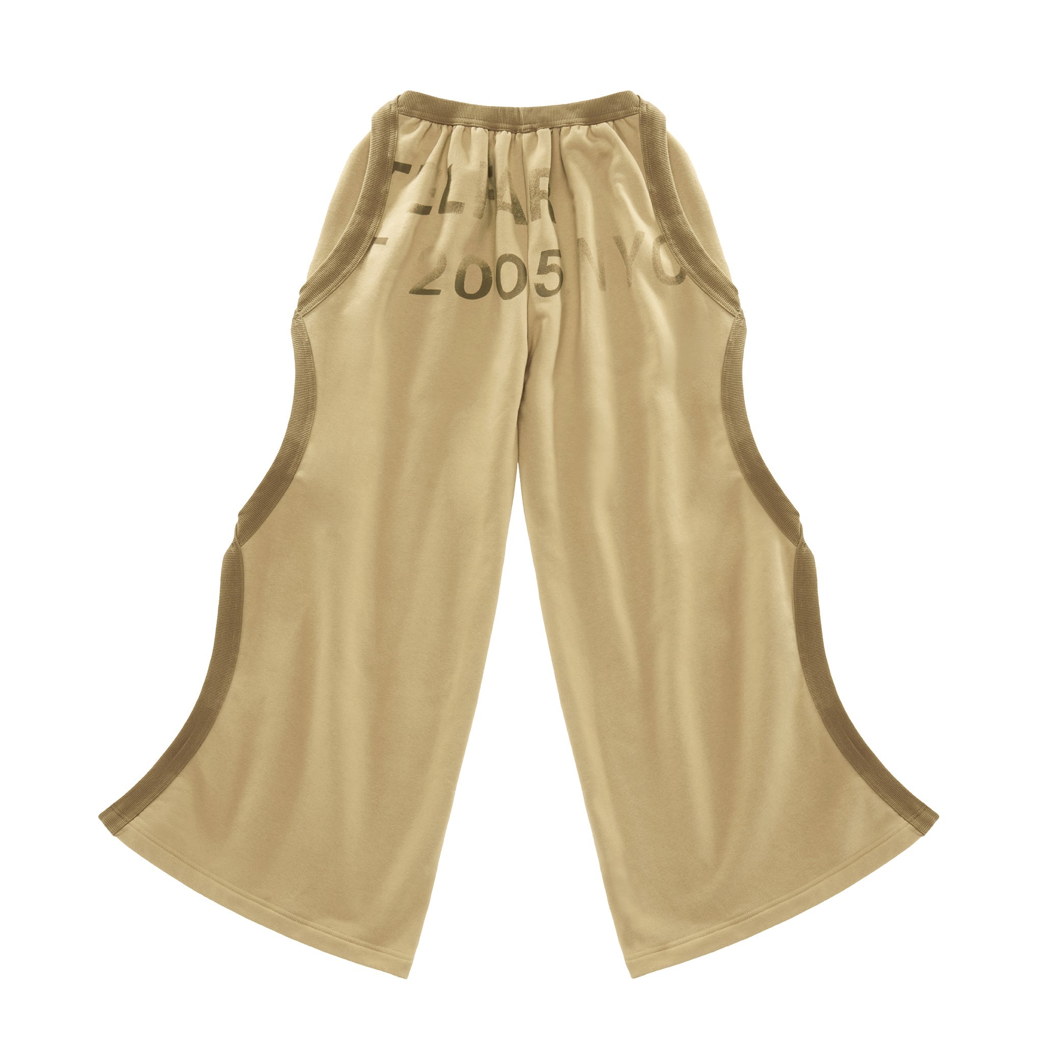 Sweatpant featuring ribbed trim, infinity loop cutouts at side panel with flared ankle slits, deep pockets, drawstring waist and faded logo print.