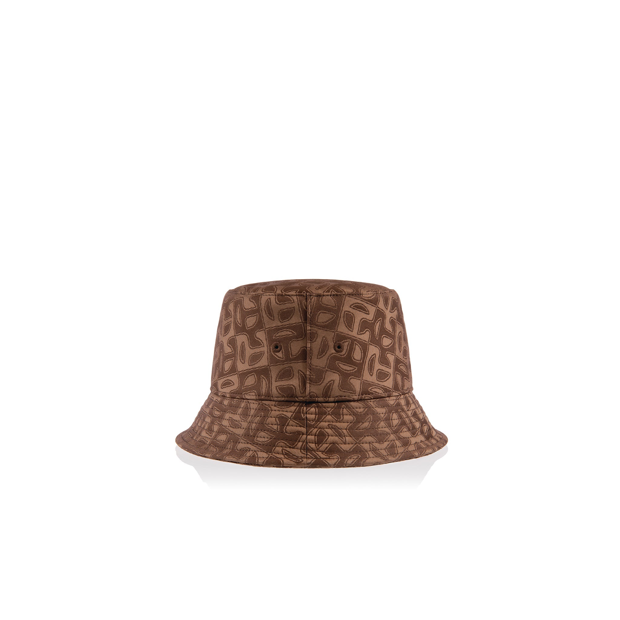 Bucket hat constructed from our woven monogram jacquard with embossed logo patch. Hat is packaged in a drawstring bag with screen-printed logo.