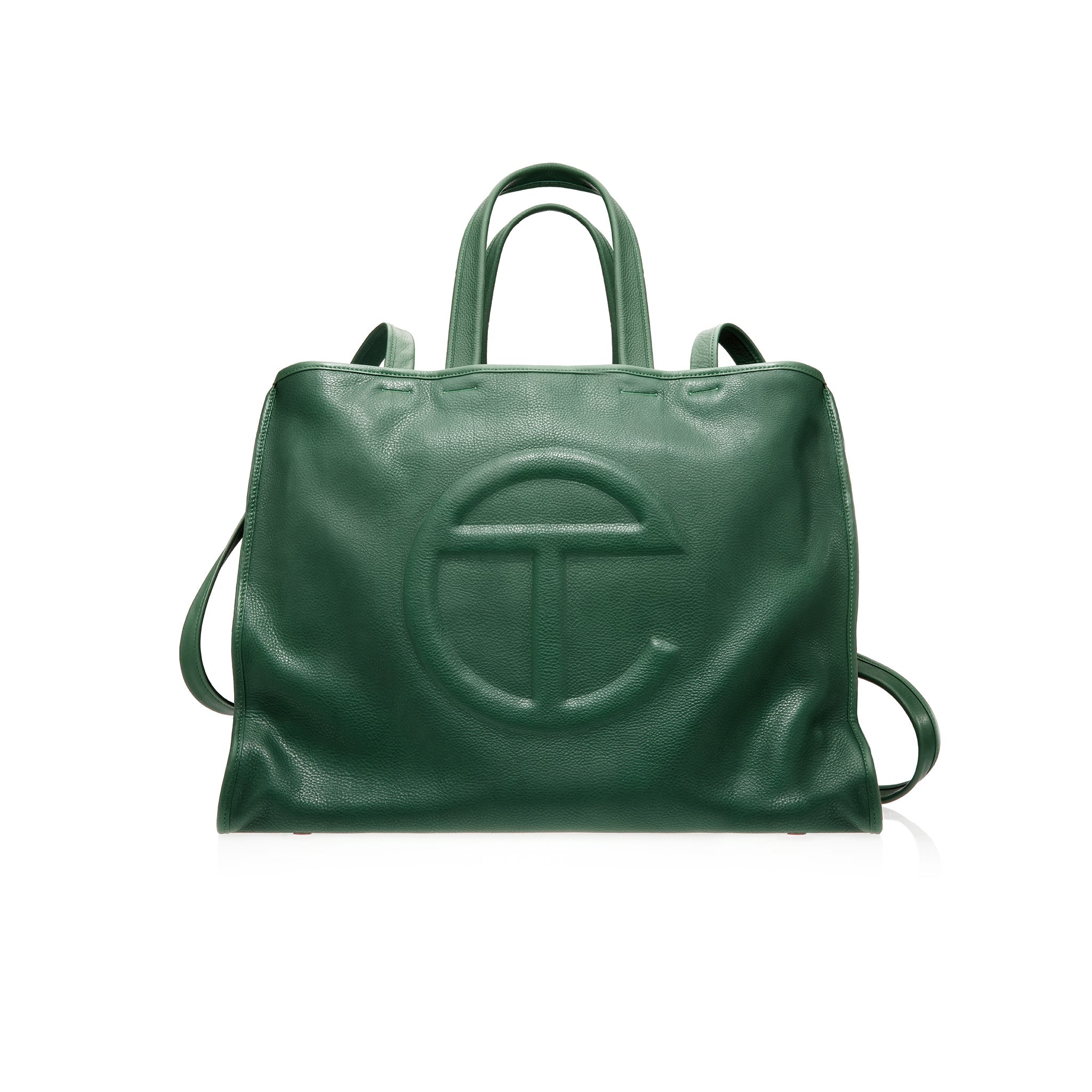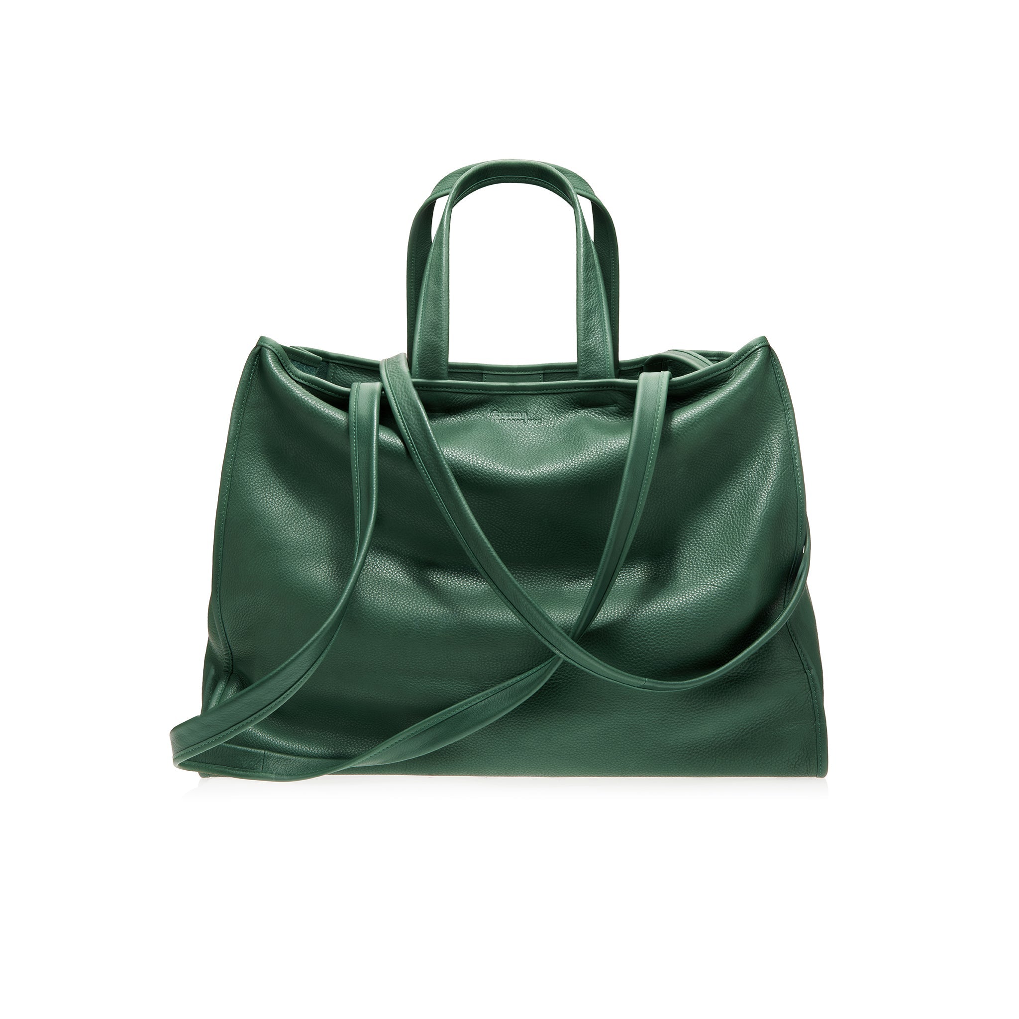 TELFAR’s answer to traditional luxury. Hewn in soft, aniline, full-grain pebble leather — left unlined (since it has nothing to hide), The Carry starts with our iconic tote and deepens in the gusset — to gather  with leather-covered snaps and then drape with an unstructured swagger that you can feel on your eyes. With supple folds that contour to your body and hand straps lengthened luxuriously — so you can now carry The Carry — on your shoulder. Hardware has been intentionally kept to a minimum; studded feet, and an interior key ring.