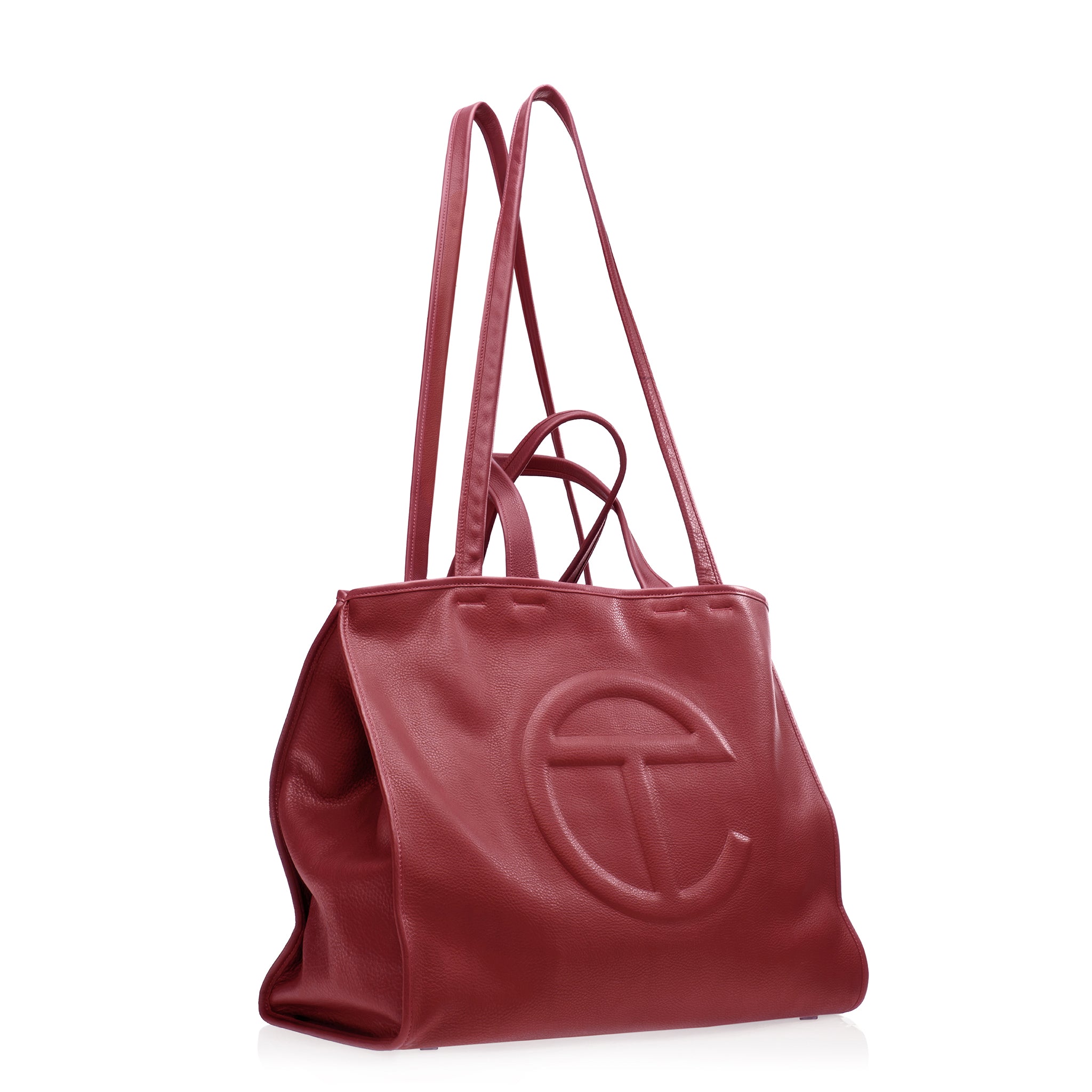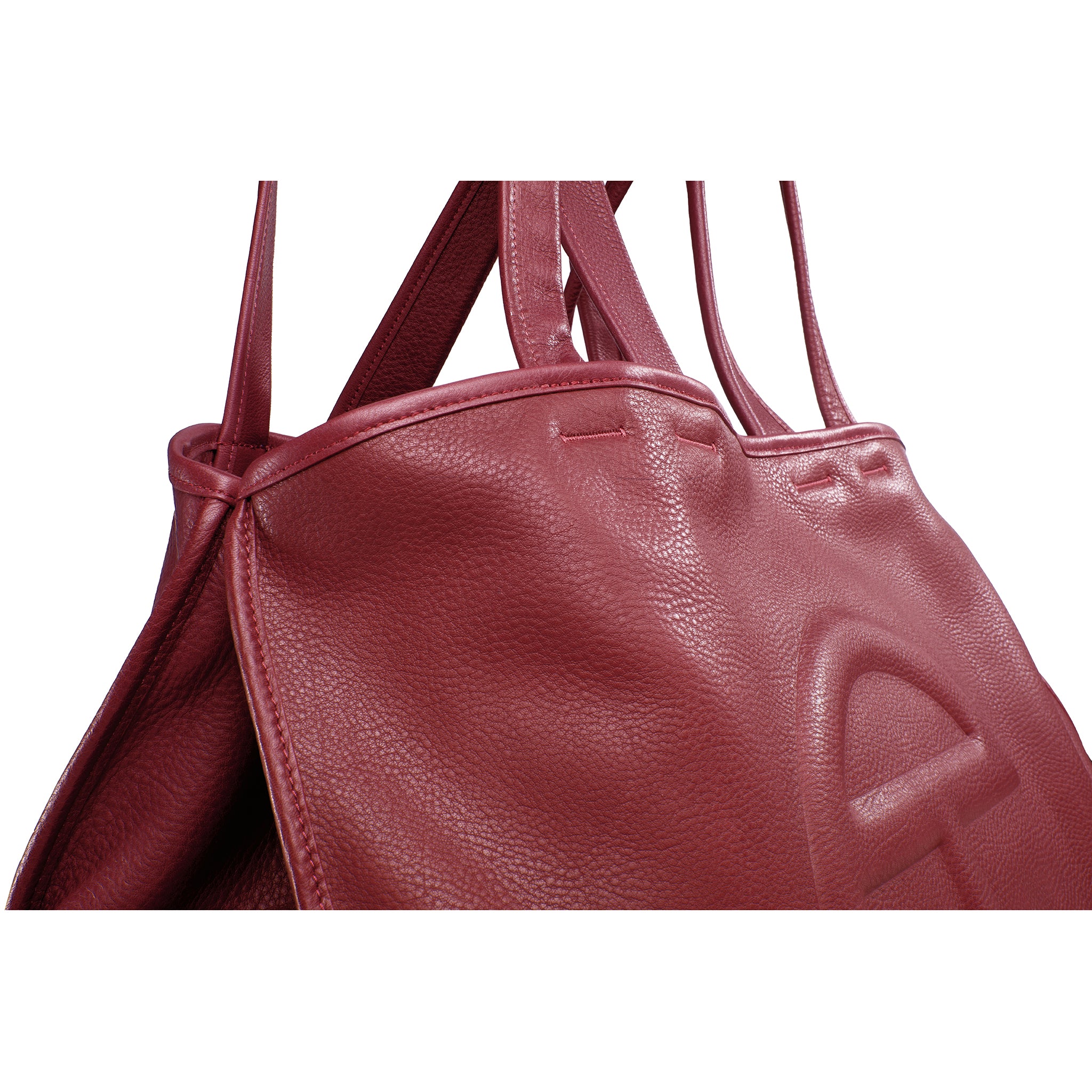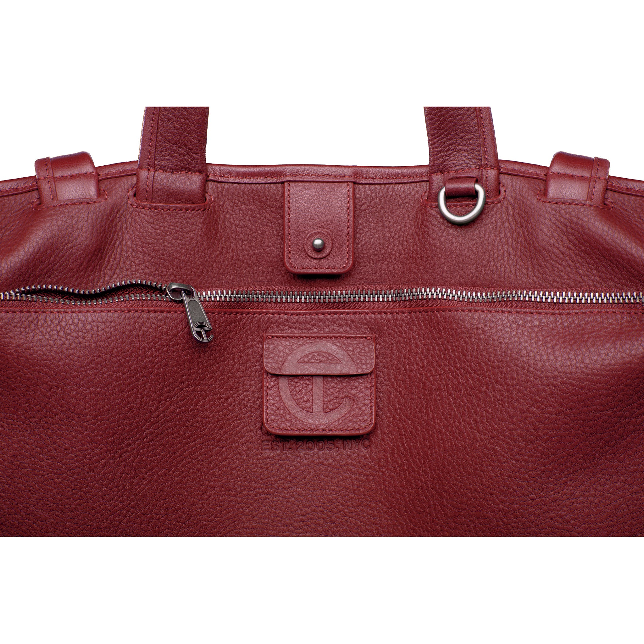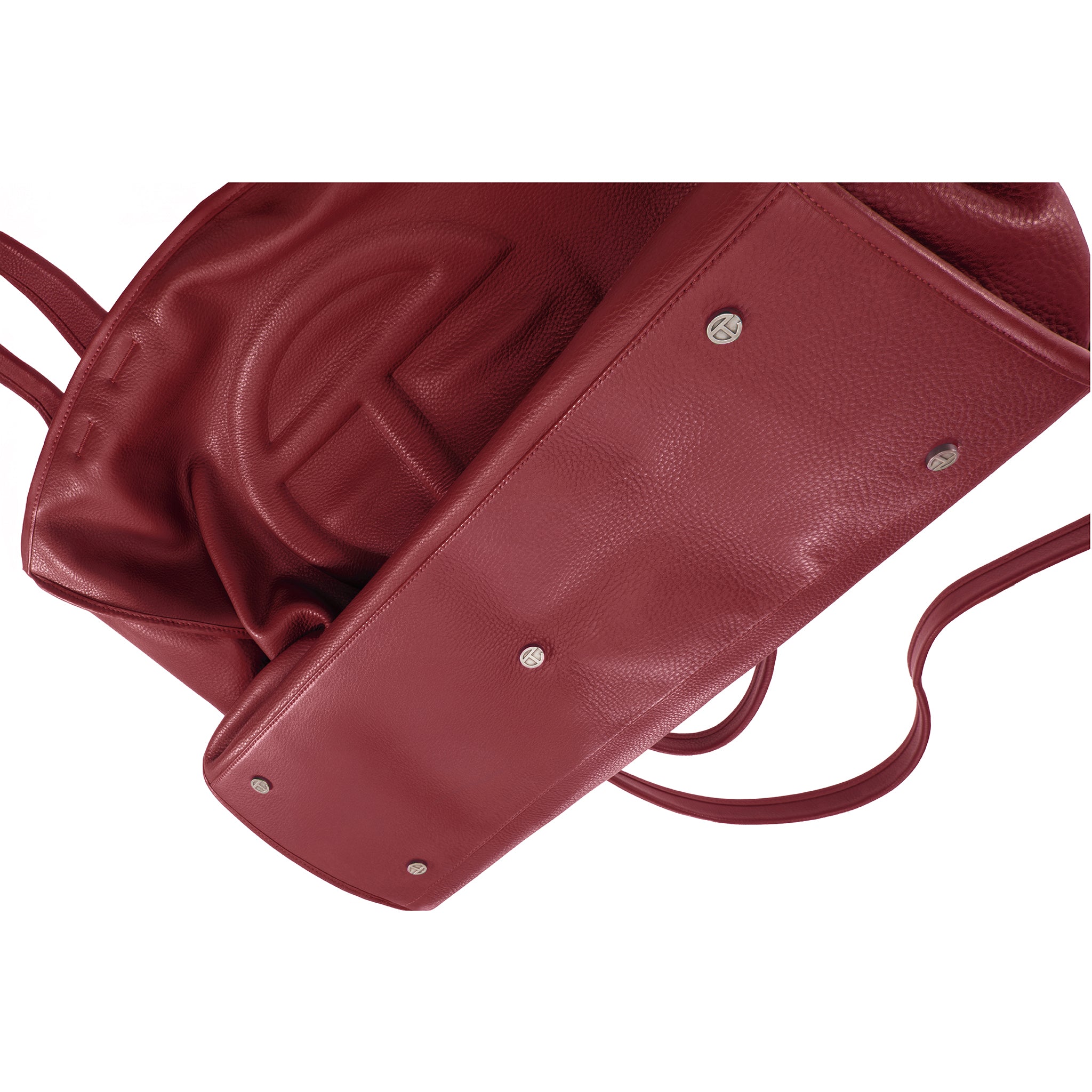TELFAR’s answer to traditional luxury. Hewn in soft, aniline, full-grain pebble leather — left unlined (since it has nothing to hide), The Carry starts with our iconic tote and deepens in the gusset — to gather  with leather-covered snaps and then drape with an unstructured swagger that you can feel on your eyes. With supple folds that contour to your body and hand straps lengthened luxuriously — so you can now carry The Carry — on your shoulder. Hardware has been intentionally kept to a minimum; studded feet, and an interior key ring.