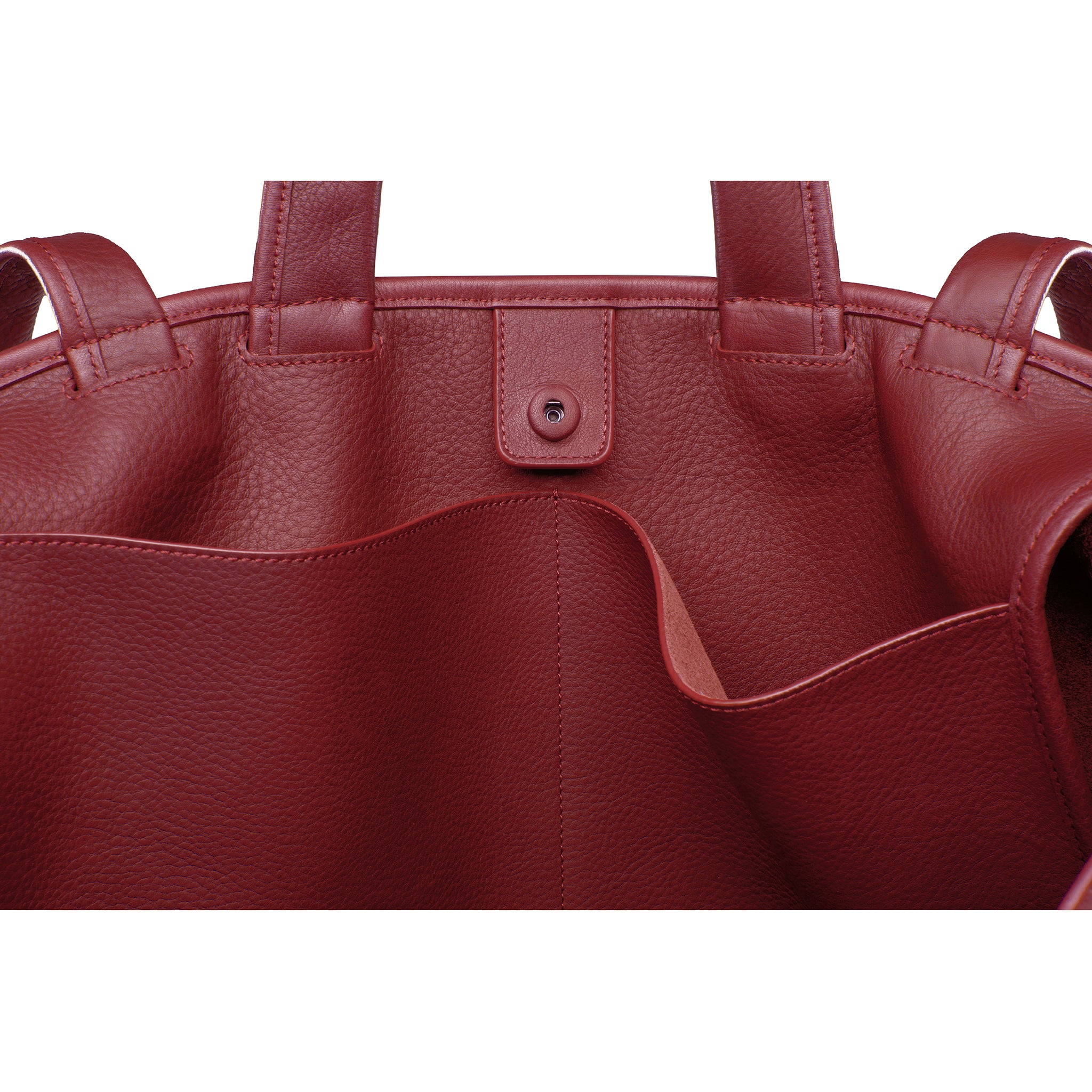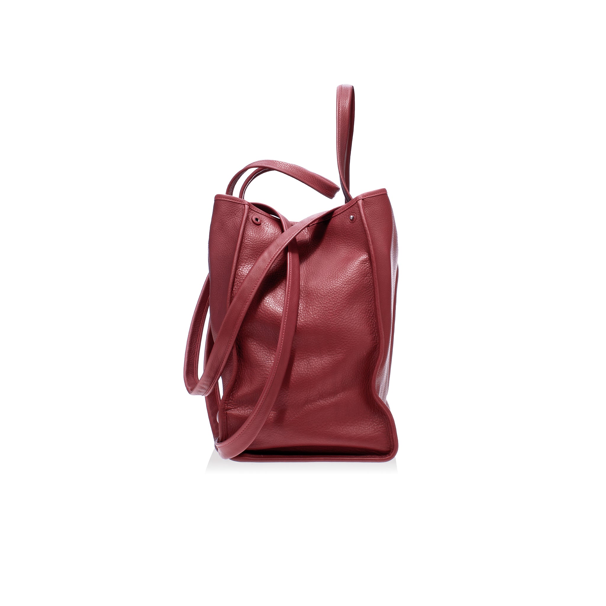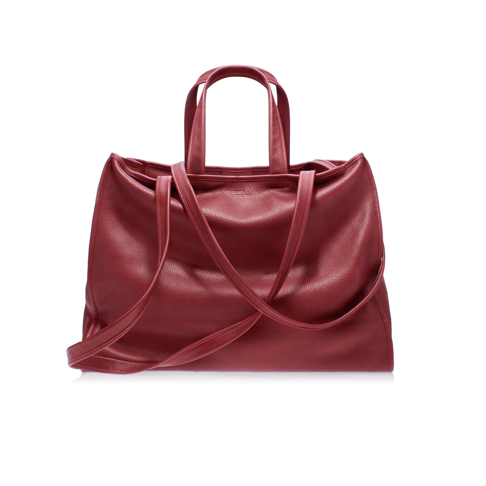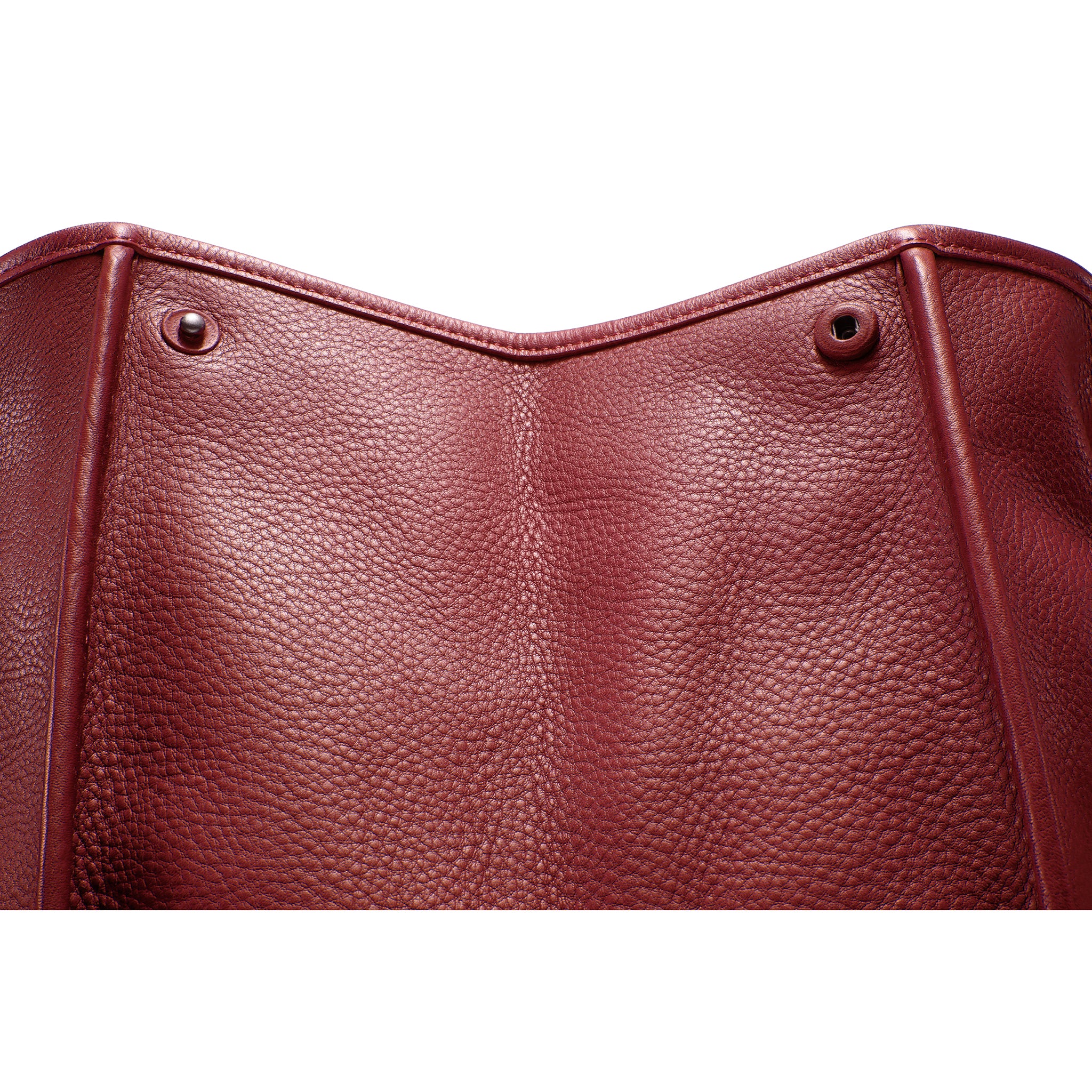 TELFAR’s answer to traditional luxury. Hewn in soft, aniline, full-grain pebble leather — left unlined (since it has nothing to hide), The Carry starts with our iconic tote and deepens in the gusset — to gather  with leather-covered snaps and then drape with an unstructured swagger that you can feel on your eyes. With supple folds that contour to your body and hand straps lengthened luxuriously — so you can now carry The Carry — on your shoulder. Hardware has been intentionally kept to a minimum; studded feet, and an interior key ring.
