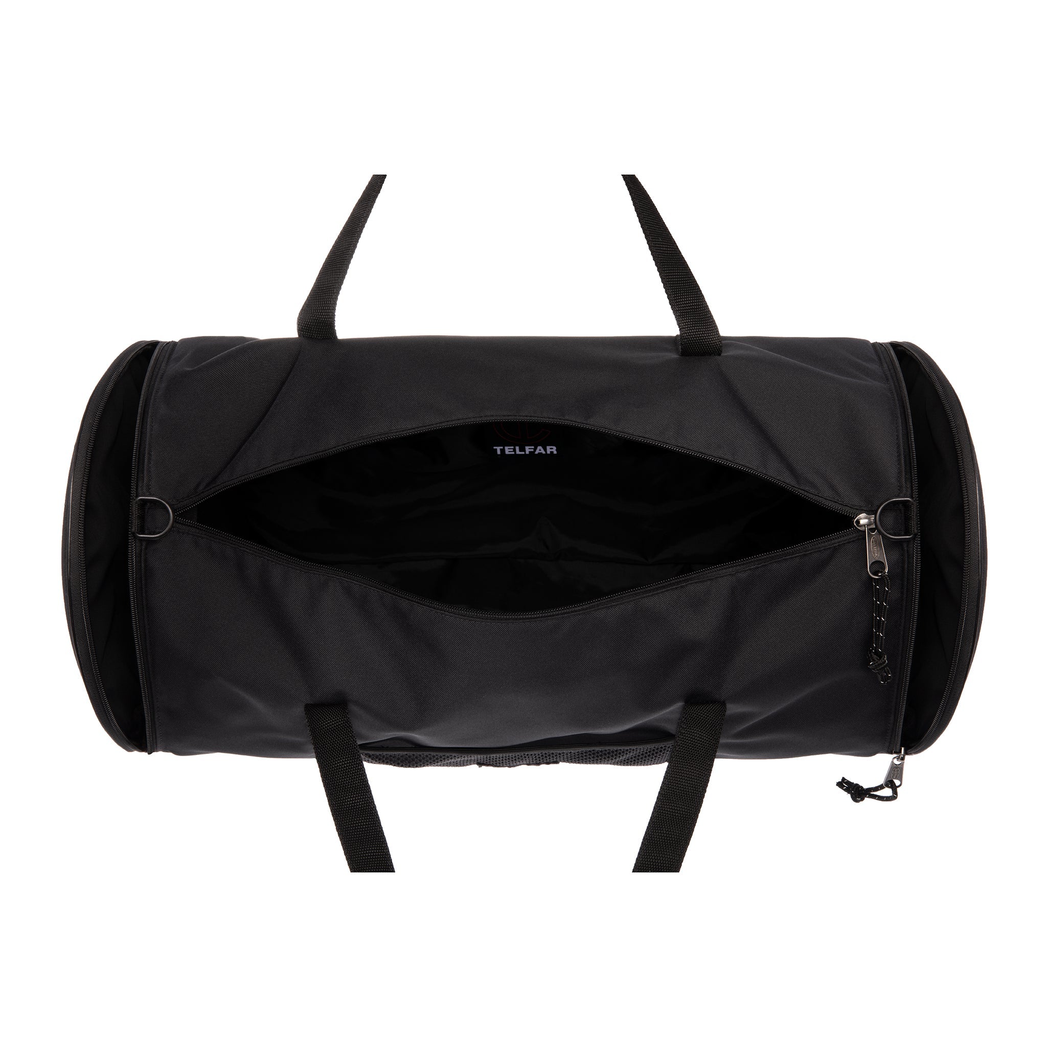 The Large TELFAR Duffle—perfect for travel, the gym, sleepovers, or whatever you get up to. Made in tactical canvas and featuring embossed TC logo zip pockets at both ends, a generous interior with zip pocket, exterior mesh pockets, and removable/adjustable padded shoulder strap to be worn crossbody, around the waist, or over the shoulder. PS: all three sizes nest and look bomb as a trio.