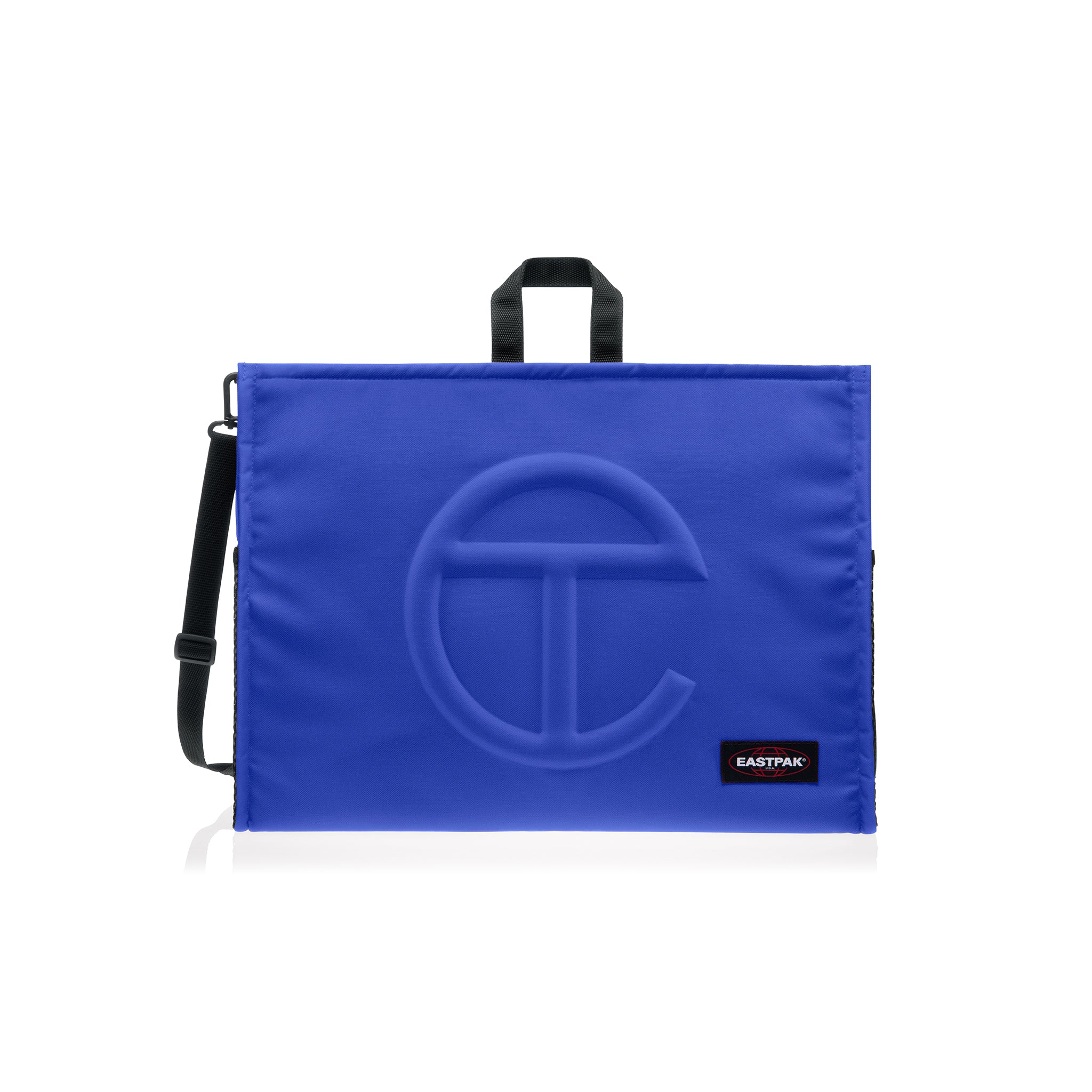 The iconic Large Shopper in tactical canvas with woven hand straps, removable/adjustable padded shoulder strap and adjustable backpack straps on the reverse side. Exterior features embossed Telfar logo, top zipper closure, and side mesh pockets. Interior features zipper pocket and padded laptop compartment.