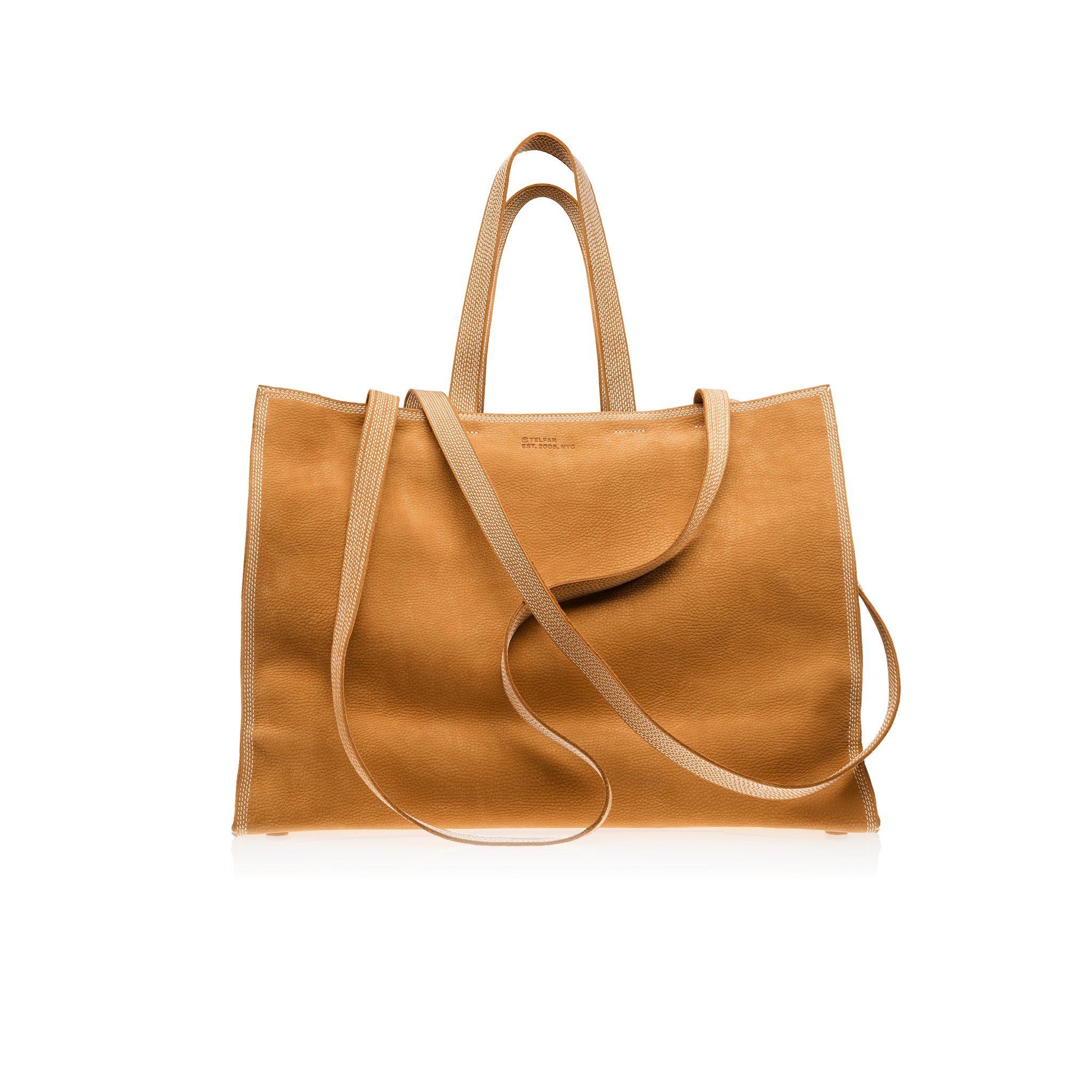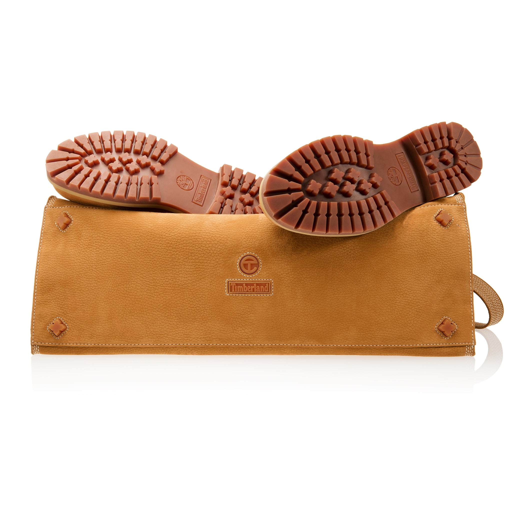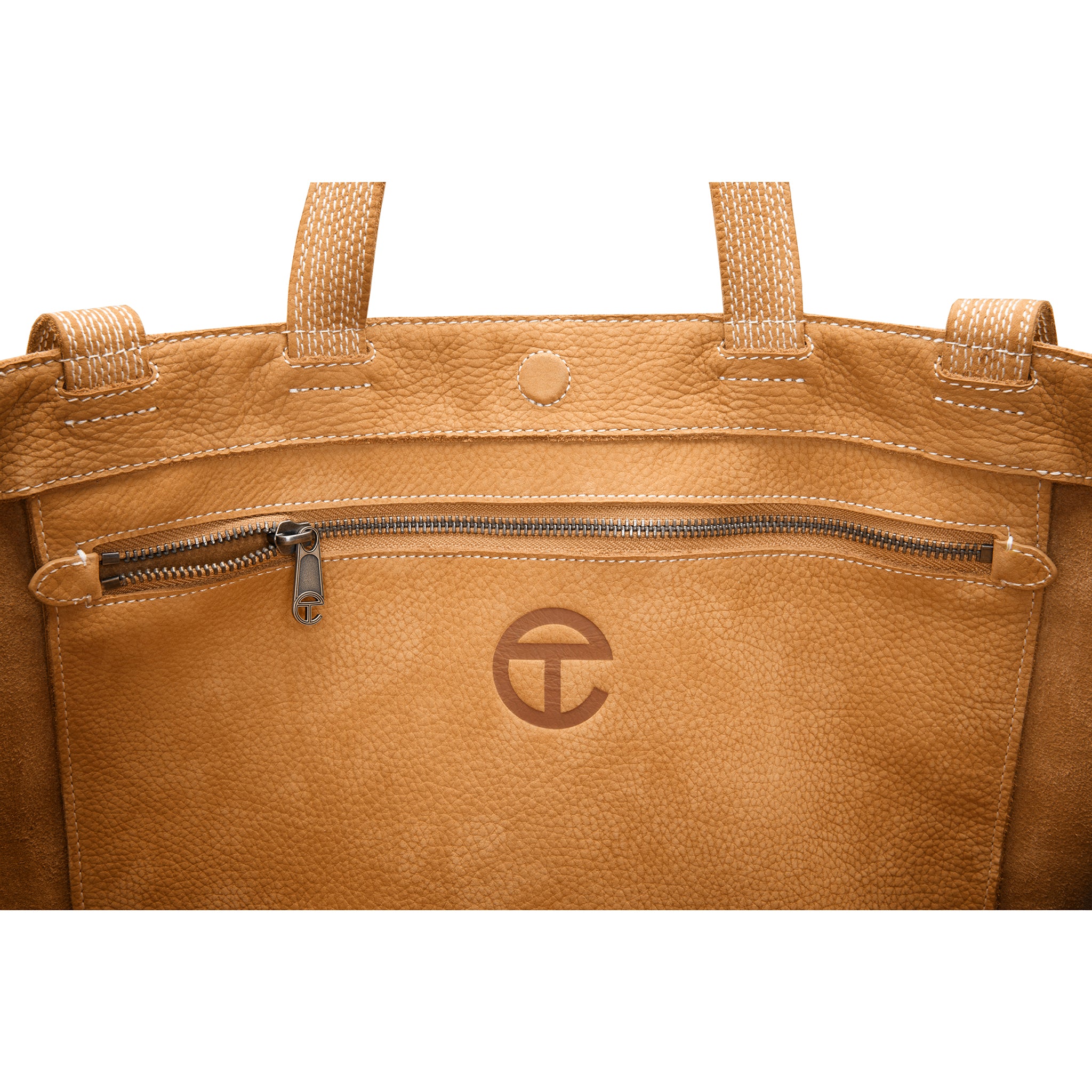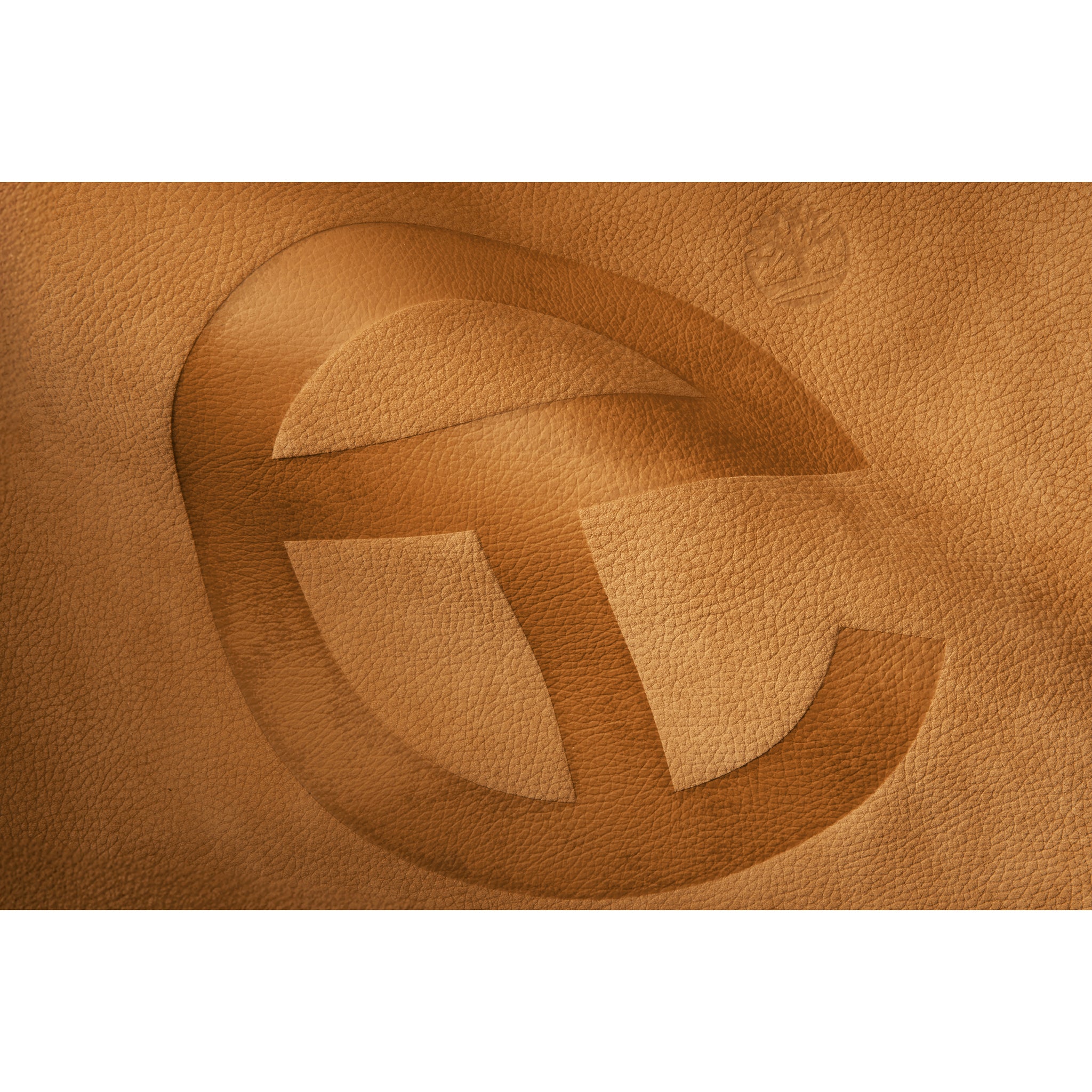 The Telfar Timberland shoppers: hewn in supple pebbled nubuck leather is both our softest and hardest ever collab. Our thick nubuck leather requires no internal structure or lining and gives a suave drape; with the iconic heavy quadruple needle stitch running its straps and our logo burned into its front. But we saved the best for last — with the base of each bag studded with four natural rubber feet taken straight from the iconic tread of the Timberland boot. Available in wheat and black.