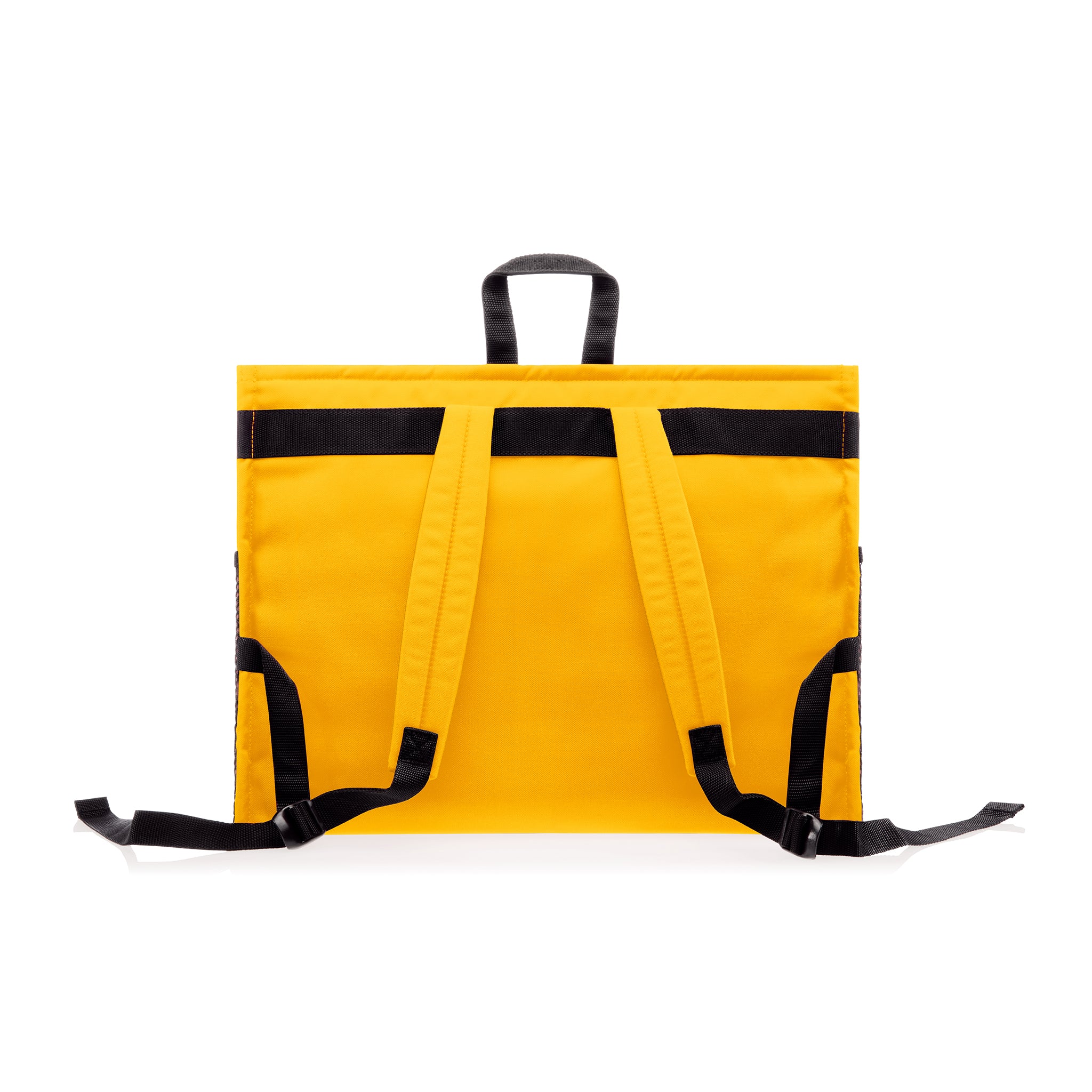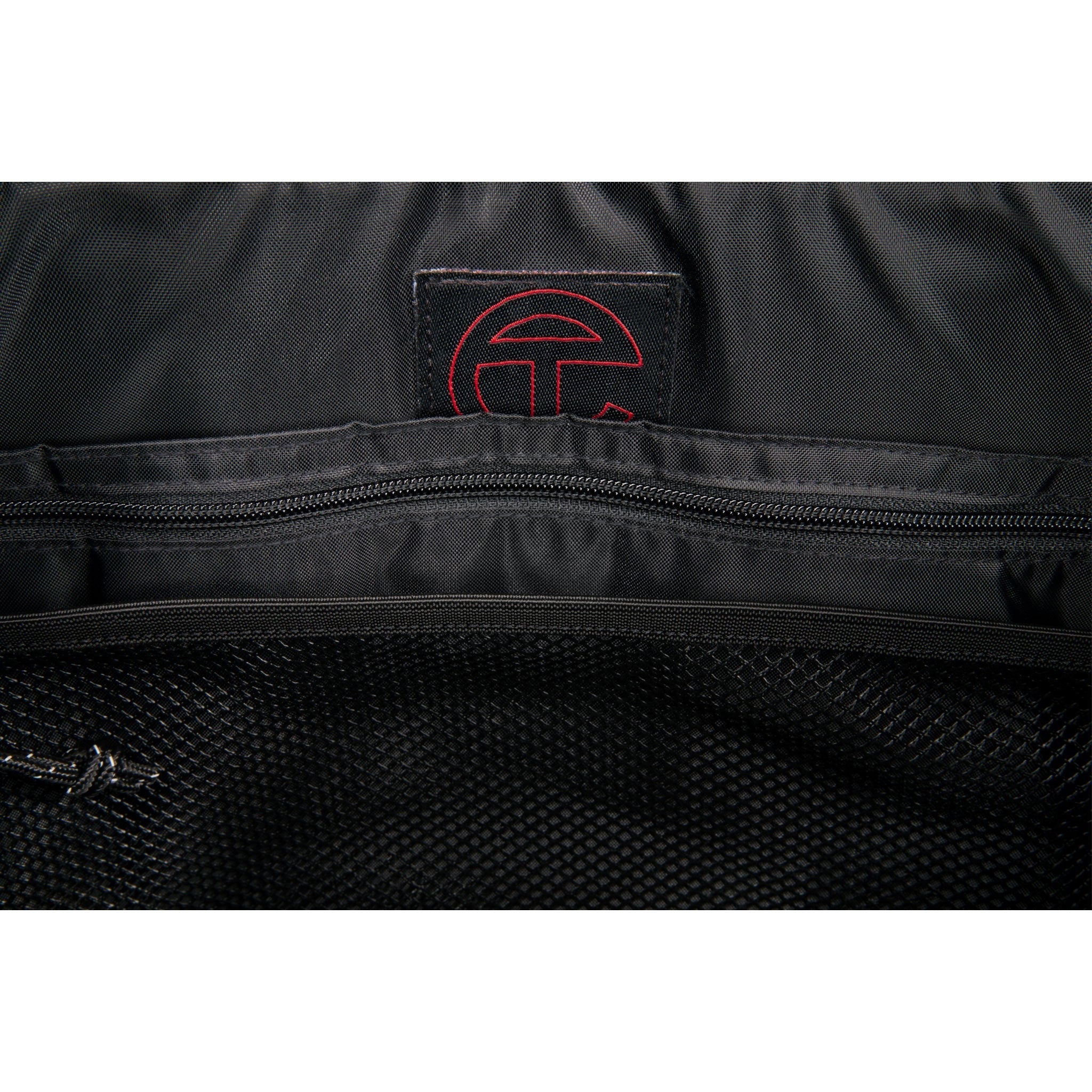 The iconic Large Shopper in tactical canvas with woven hand straps, removable/adjustable padded shoulder strap and adjustable backpack straps on the reverse side. Exterior features embossed Telfar logo, top zipper closure, and side mesh pockets. Interior features zipper pocket and padded laptop compartment.