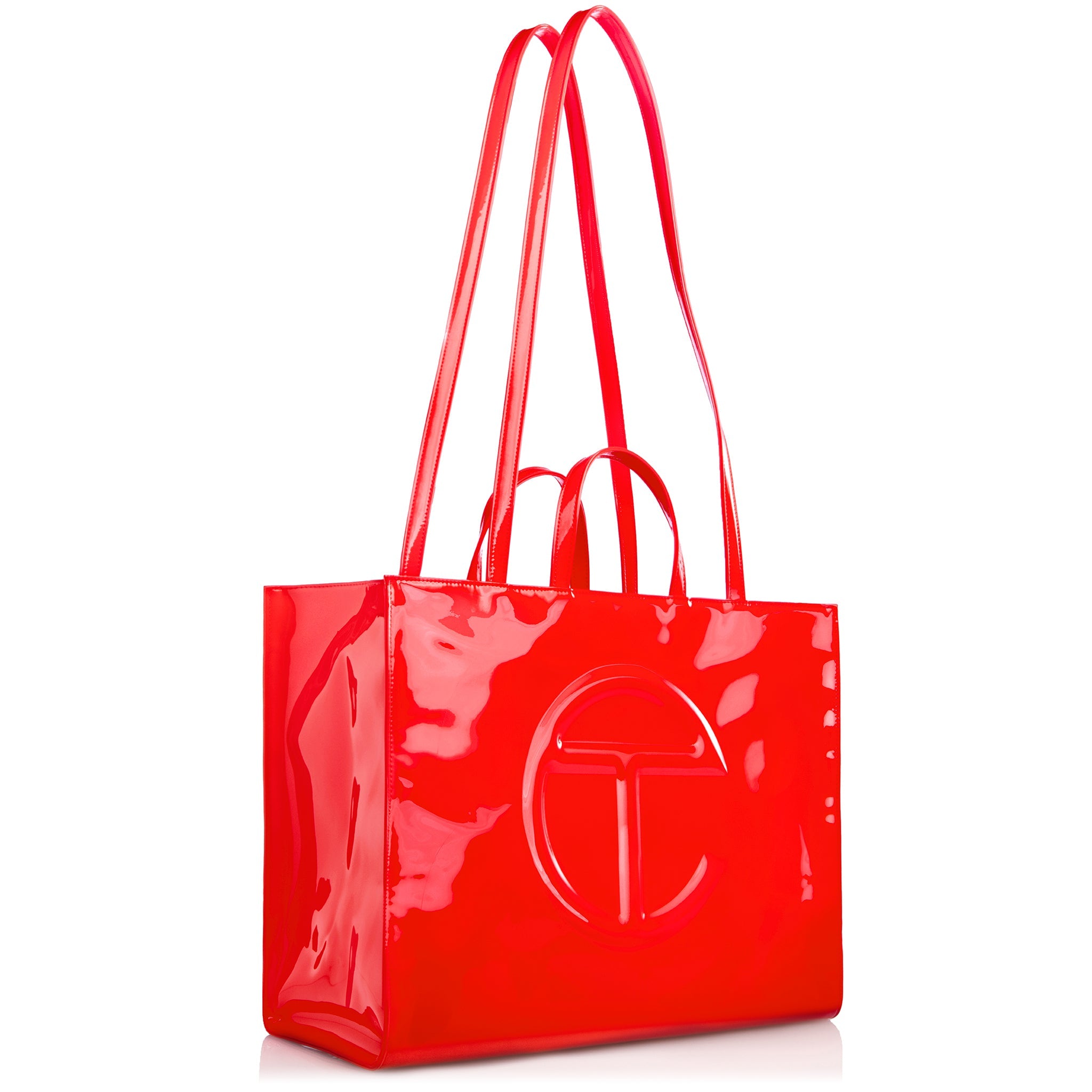 The iconic Unisex Shopping Bag is an Everyday bag for Everybody — now available with a high-gloss patent finish.