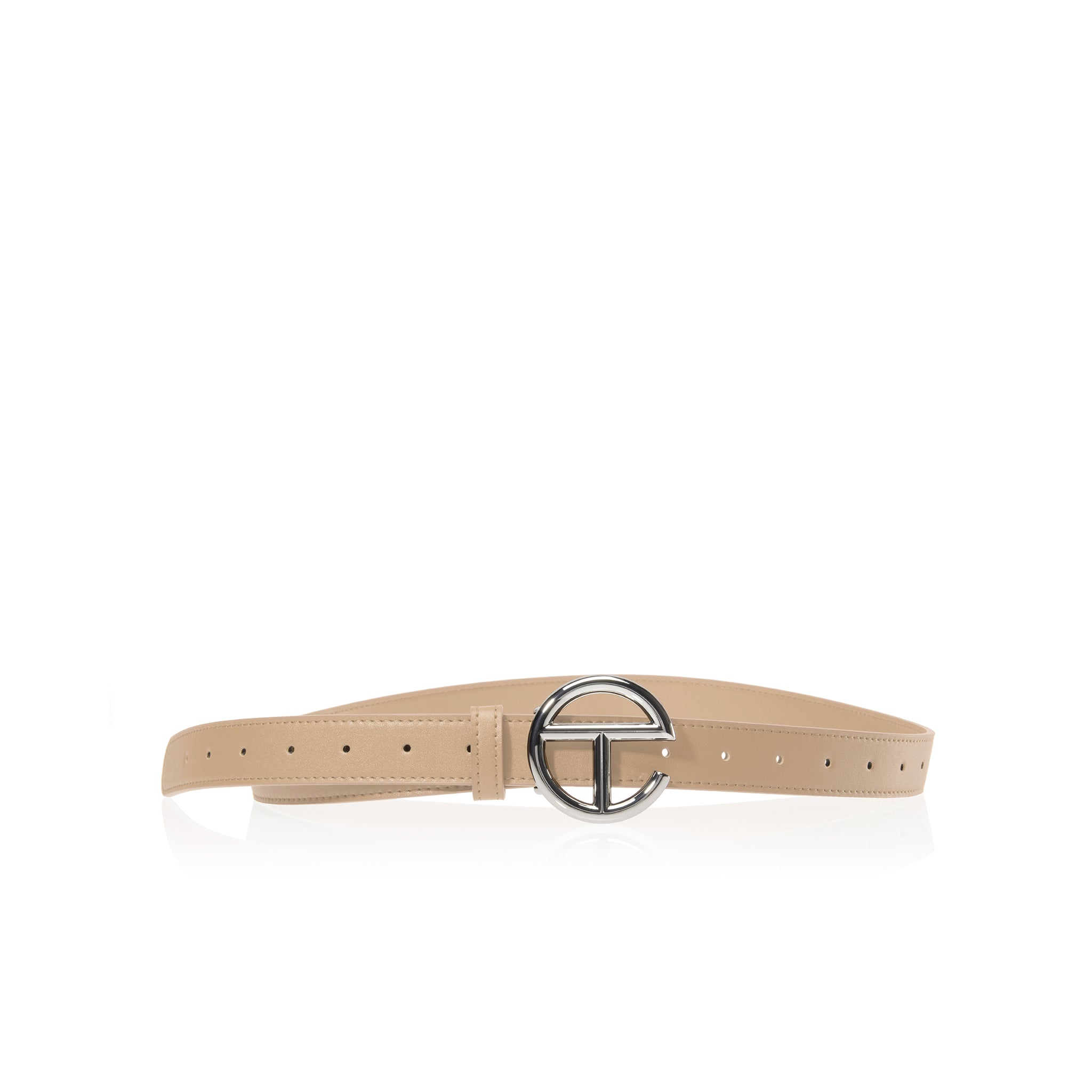 An Everyday belt for Everyone, inspired by our iconic Unisex Shopping Bag. Featuring a chrome-finish logo buckle, narrow faux leather strap, heavyweight topstitching and painted edges. Available in two sizes. Belt is protected by a drawstring bag and rigid outer box with silver foil logo.