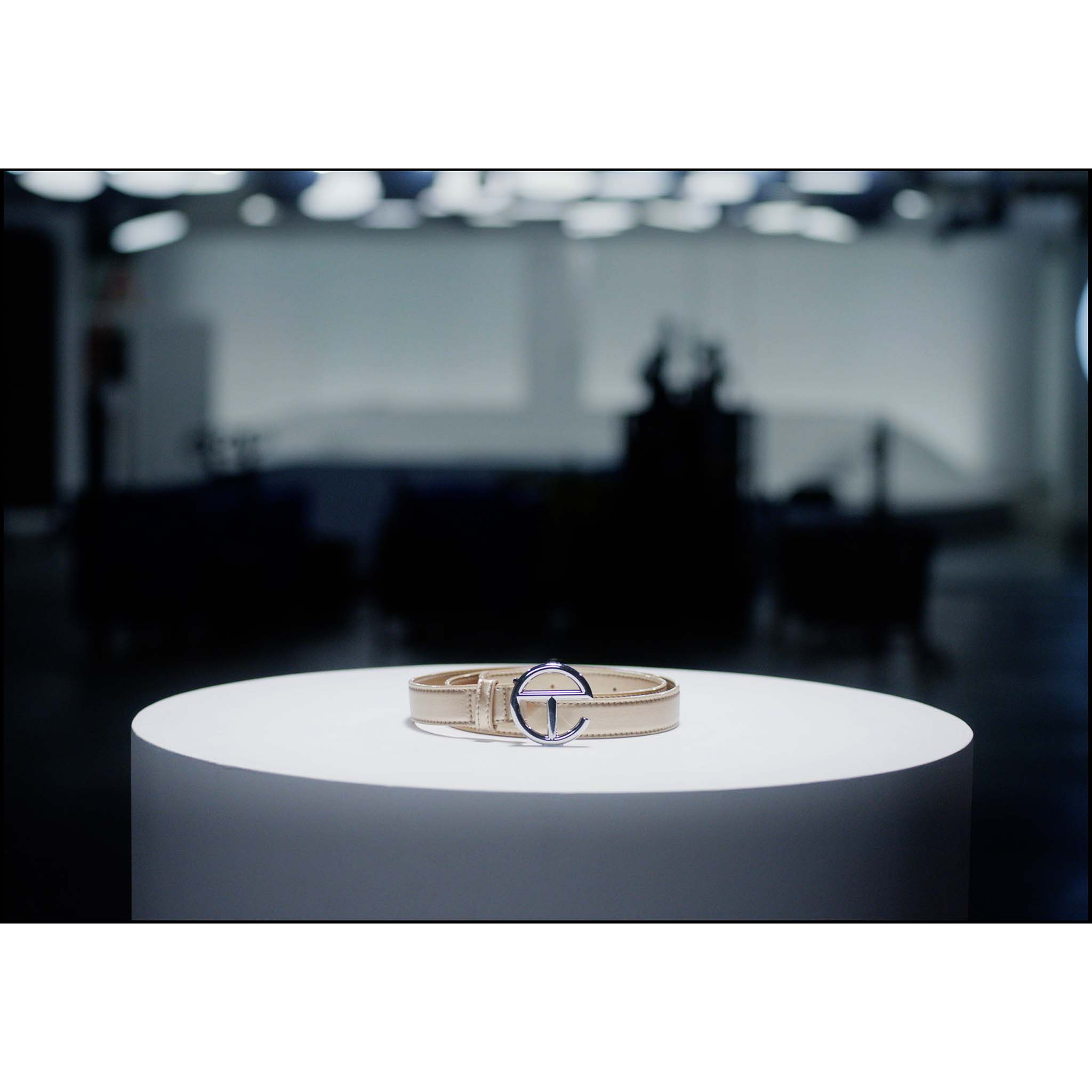 An Everyday belt for Everyone, inspired by our iconic Unisex Shopping Bag. Featuring a chrome-finish logo buckle, narrow faux leather strap, heavyweight topstitching and painted edges. Available in two sizes. Belt is protected by a drawstring bag and rigid outer box with silver foil logo.