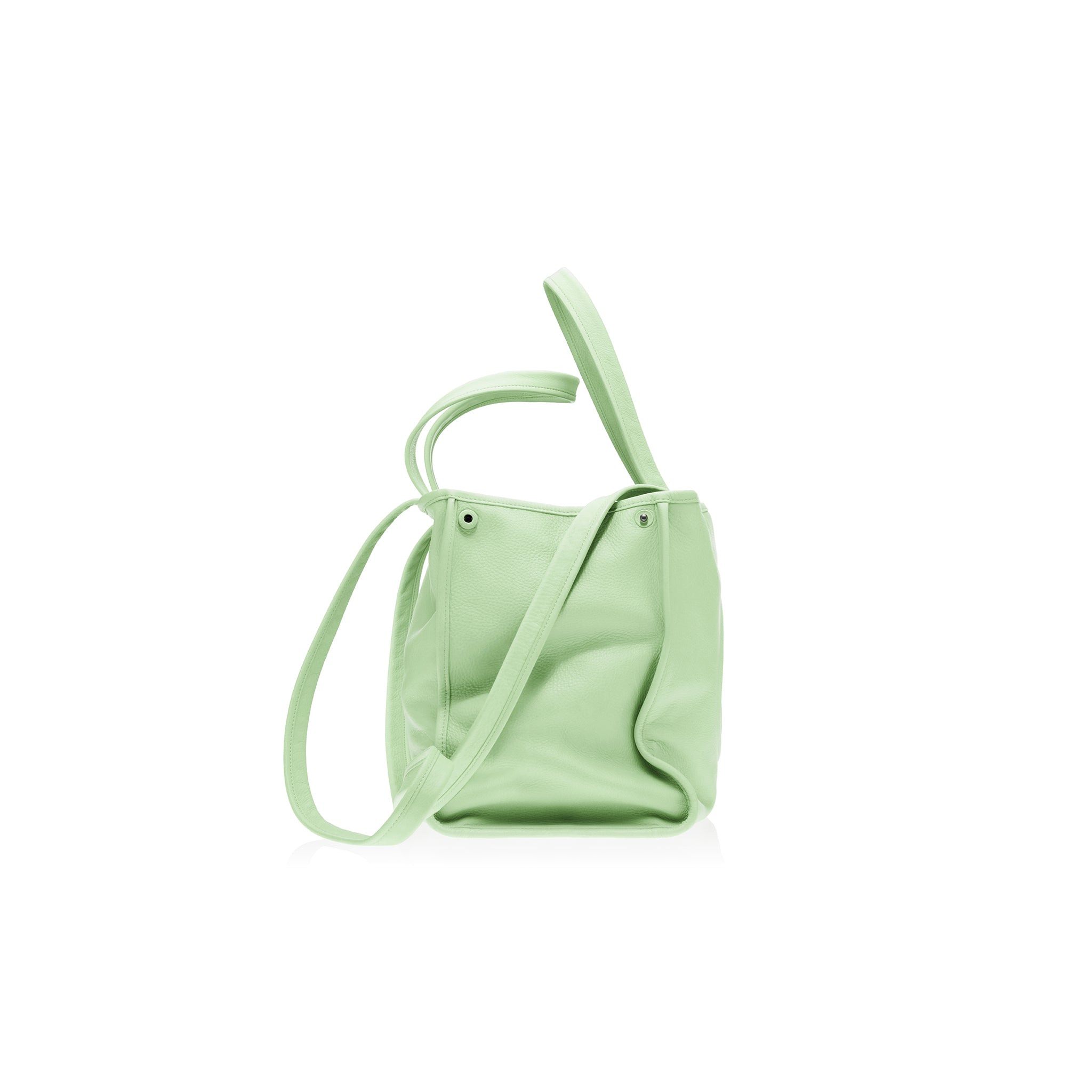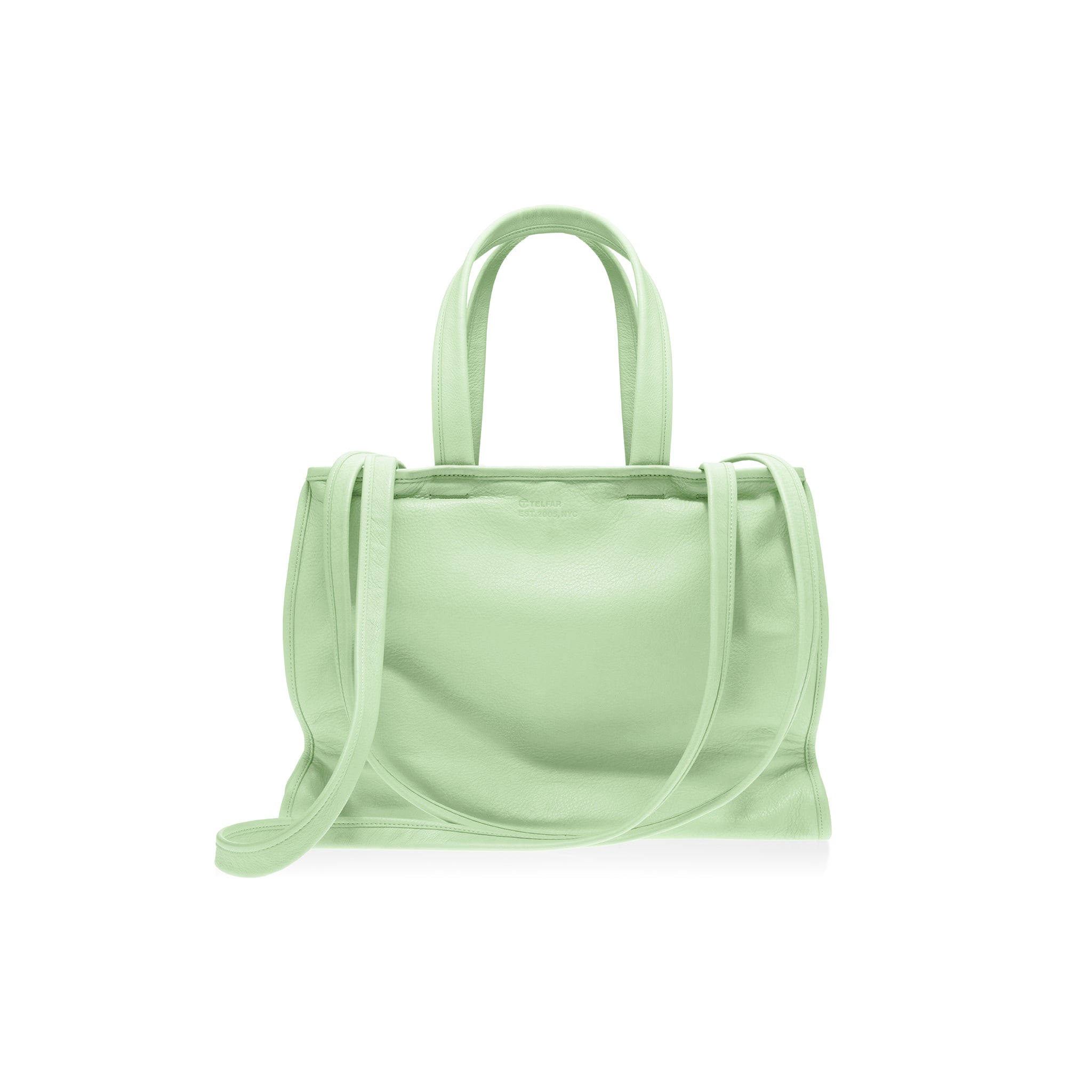 TELFAR’s answer to traditional luxury. Hewn in soft, aniline, full-grain pebble leather — left unlined (since it has nothing to hide), The Carry starts with our iconic tote and deepens in the gusset — to gather with leather-covered snaps and then drape with an unstructured swagger that you can feel on your eyes. With supple folds that contour to your body and hand straps lengthened luxuriously — so you can now carry The Carry — on your shoulder. Now featuring a zipper pocket and slip interior pockets. Hardware has been intentionally kept to a minimum; studded feet, and an interior key ring.