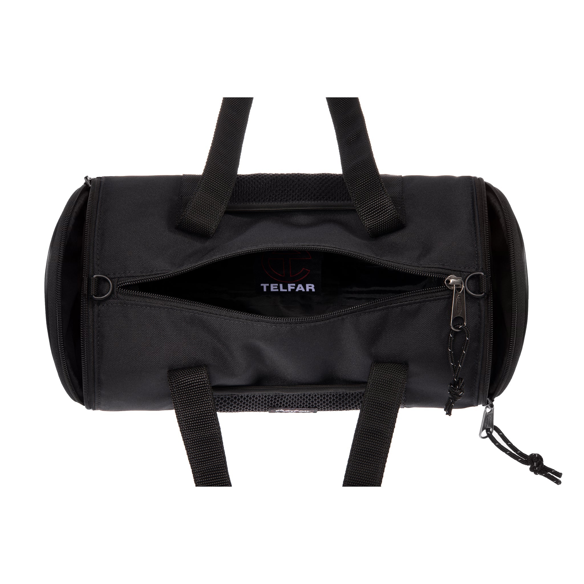 The Medium TELFAR Duffle—an all-day-everyday-everybody-everywhere size. Made in tactical canvas and featuring embossed TC logo zip pockets at both ends, a generous interior with zip pocket, exterior mesh pockets, and removable/adjustable padded shoulder strap to be worn crossbody, around the waist, or over the shoulder. PS: all three sizes nest and look bomb as a trio.