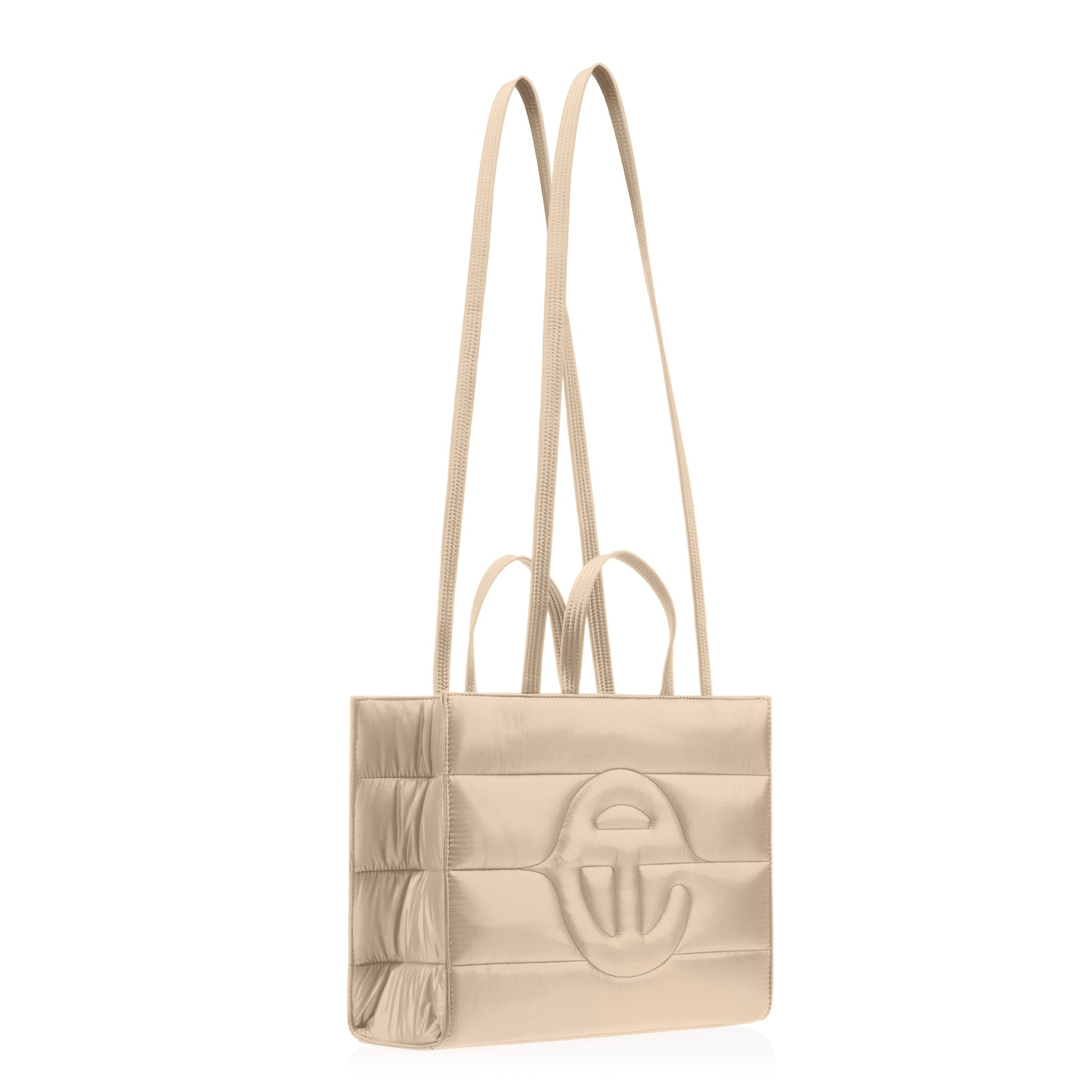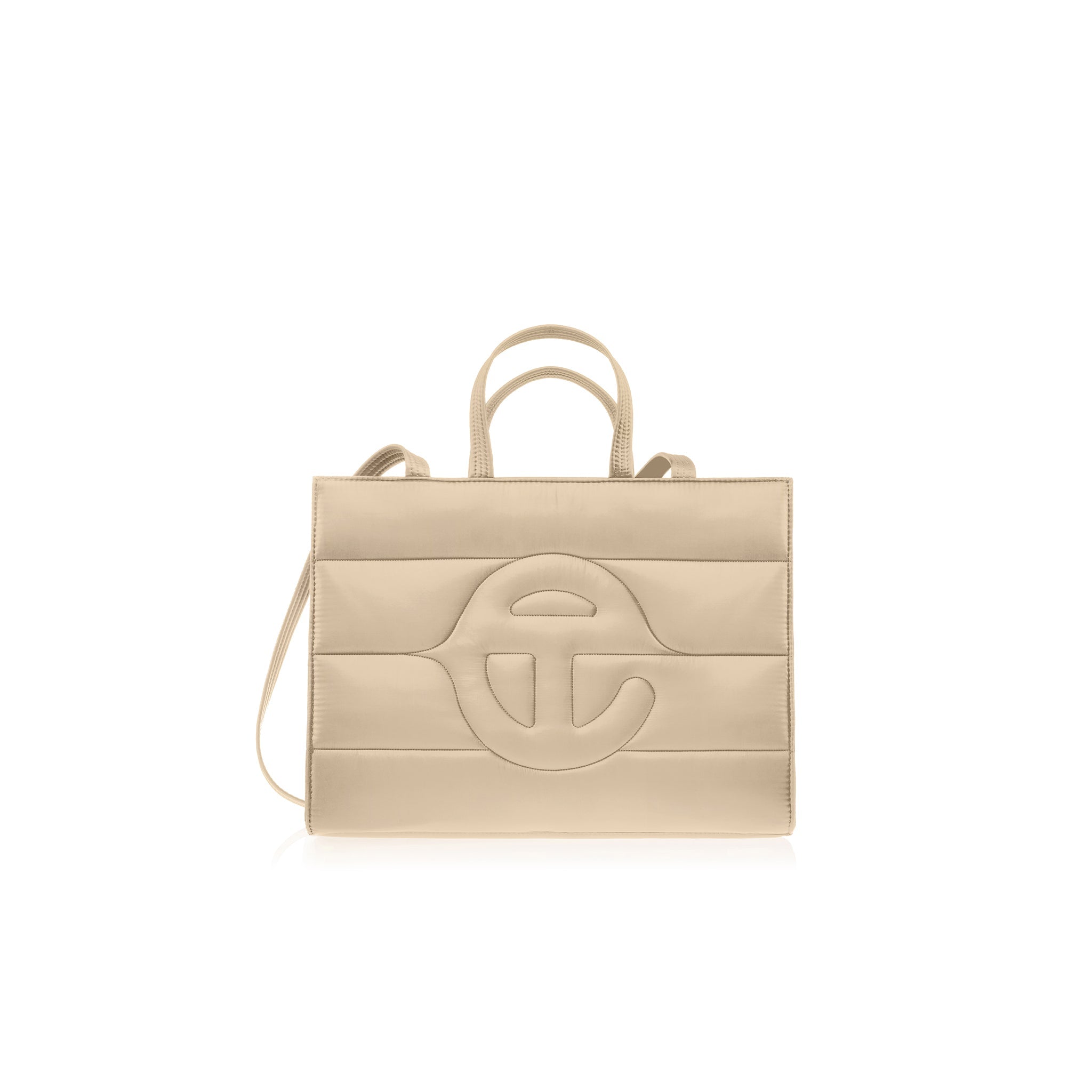 Our iconic Unisex TELFAR Bag, engineered in quilted nylon puff. Featuring a double strap to be held in hand, over the shoulder or cross-body, with a magnetic snap closure and interior zip pocket.