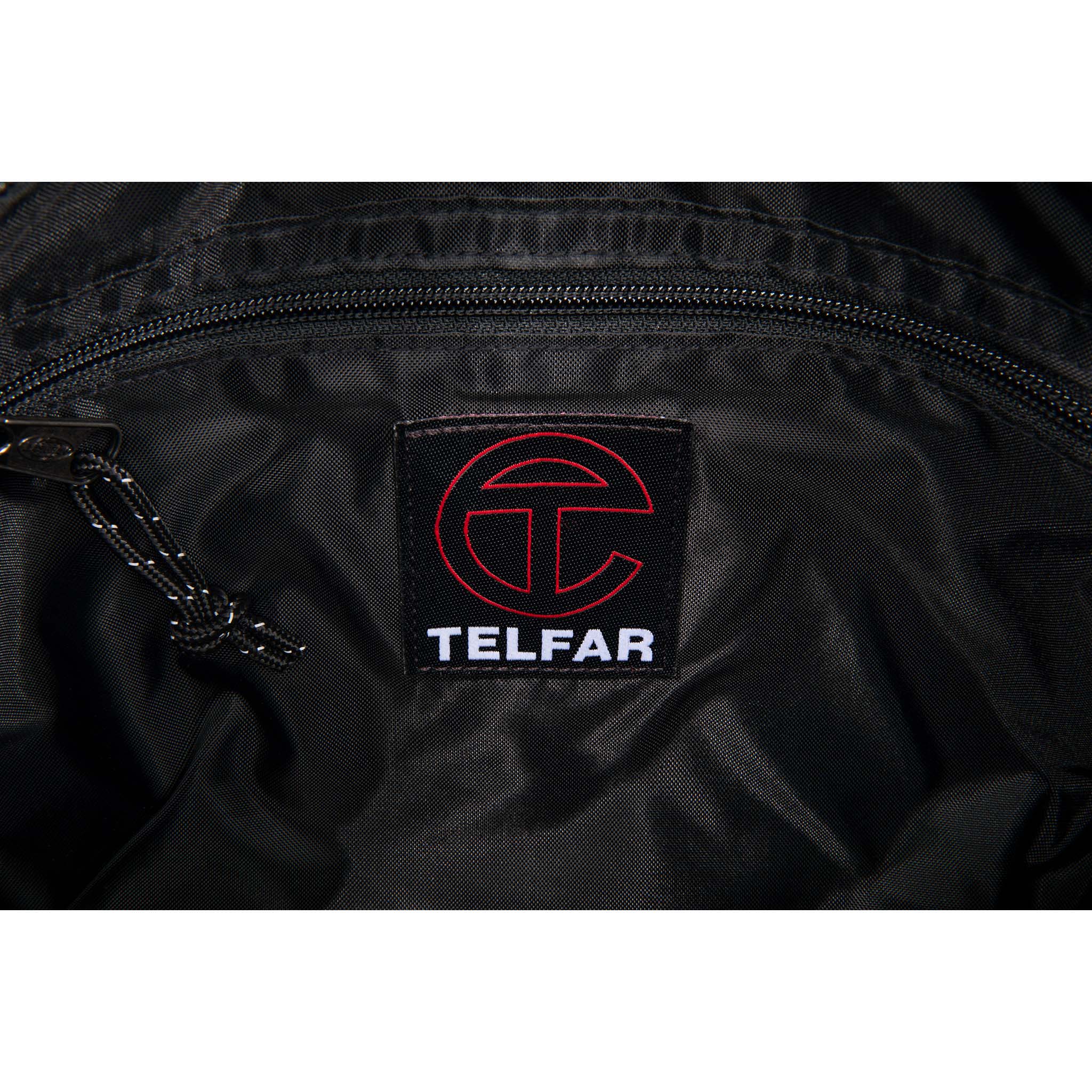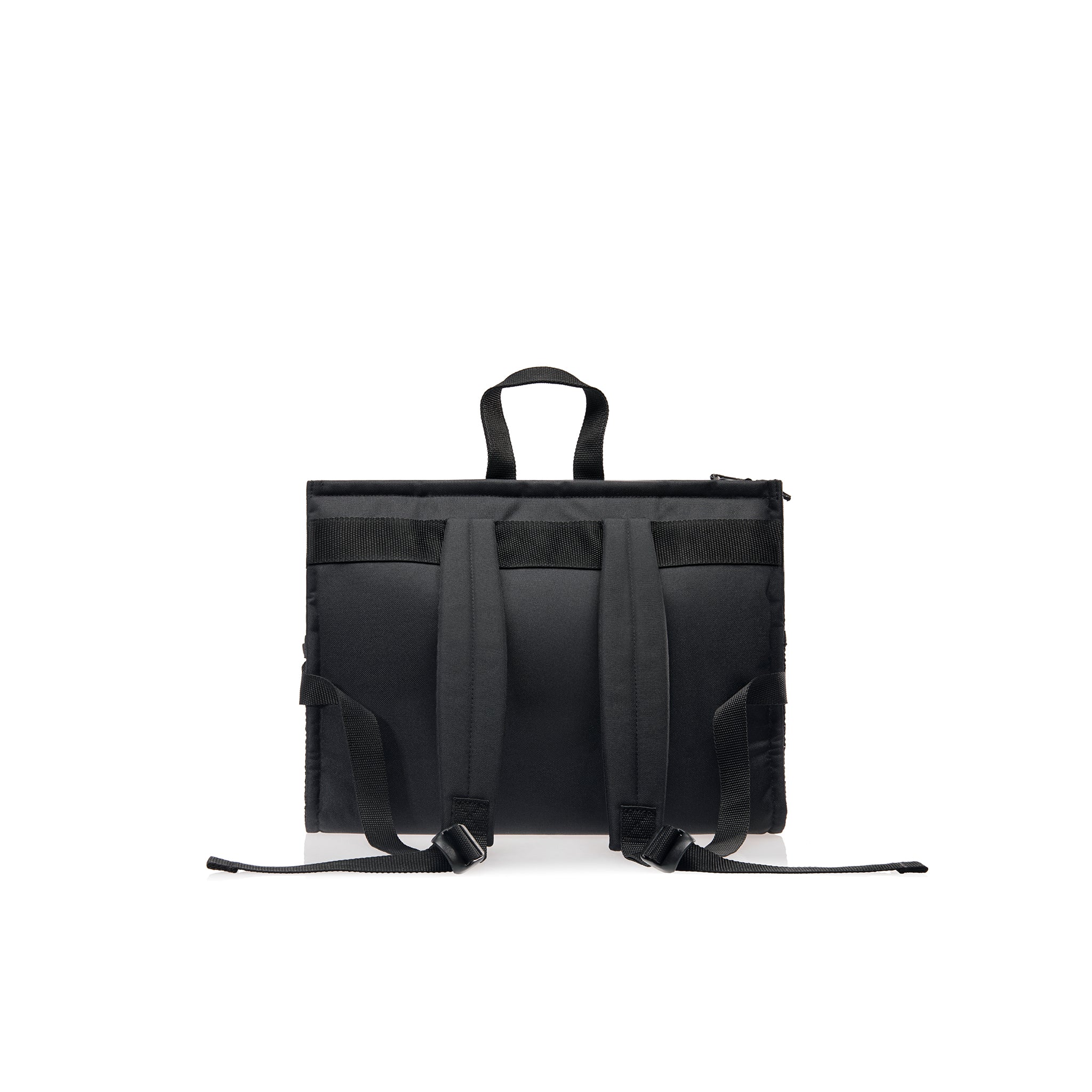 The iconic Medium Shopper in tactical canvas with woven hand straps, removable/adjustable padded shoulder strap and adjustable backpack straps on the reverse side. Exterior features embossed Telfar logo, top zipper closure, and side mesh pockets. Interior features zipper pocket and padded laptop compartment.