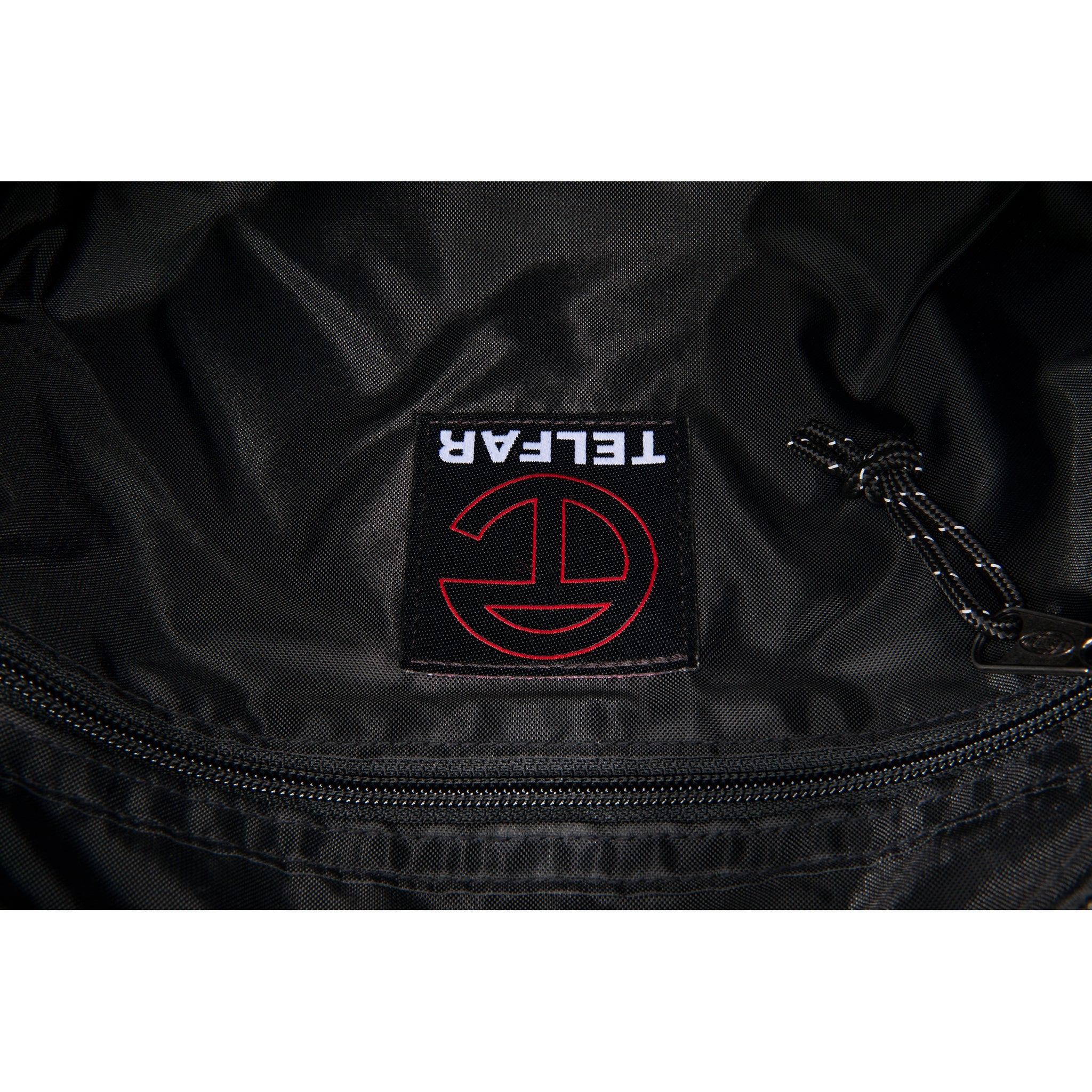The iconic Medium Shopper in tactical canvas with woven hand straps, removable/adjustable padded shoulder strap and adjustable backpack straps on the reverse side. Exterior features embossed Telfar logo, top zipper closure, and side mesh pockets. Interior features zipper pocket and padded laptop compartment.