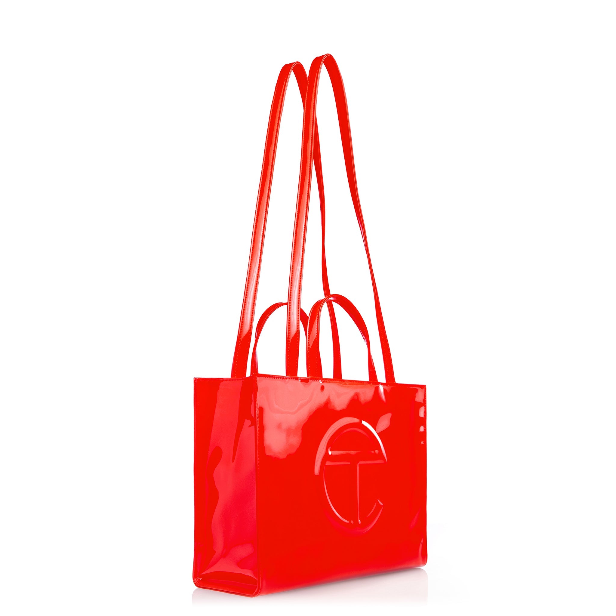 The iconic Unisex Shopping Bag is an Everyday bag for Everybody — now available with a high-gloss patent finish.