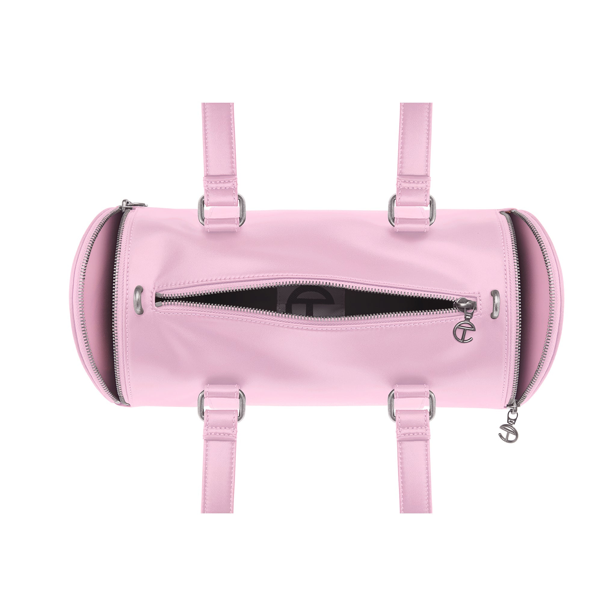 The Medium TELFAR Duffle is a universal unisex icon in faux leather, in an all-day-everyday-everybody size. Featuring twin functional embossed TC logo side pockets, a generous interior with inner pocket, custom antique silver hardware and logo zipper pulls, twin handles and a detachable shoulder strap.
