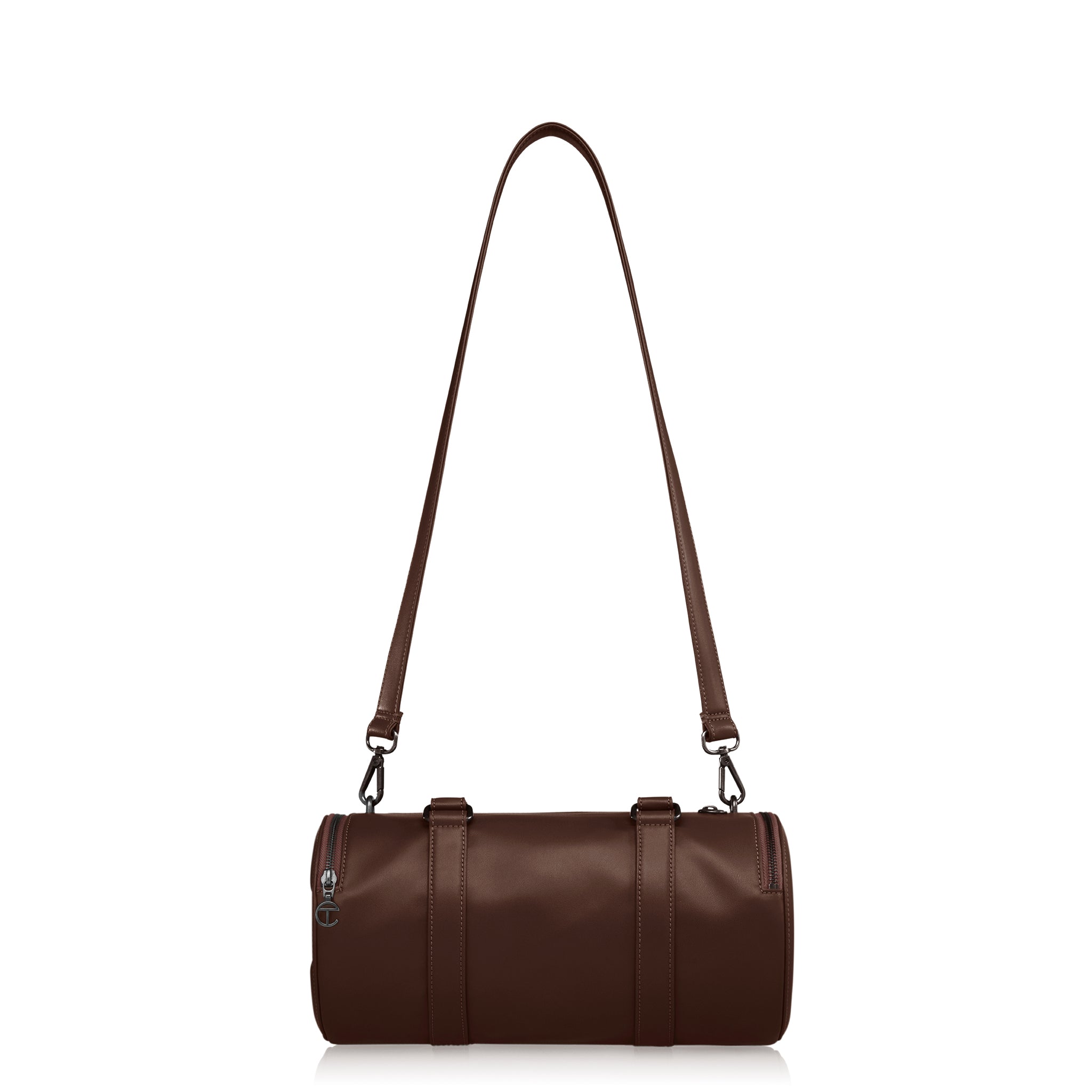 The Medium TELFAR Duffle is a universal unisex icon in faux leather, in an all-day-everyday-everybody size. Featuring twin functional embossed TC logo side pockets, a generous interior with inner pocket, custom antique silver hardware and logo zipper pulls, twin handles and a detachable shoulder strap.