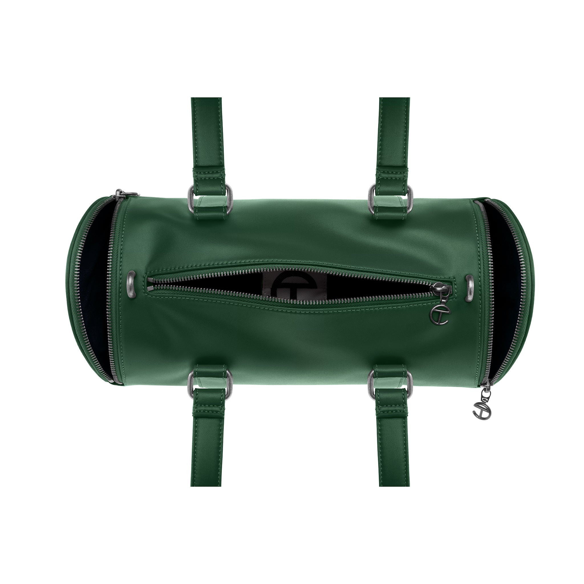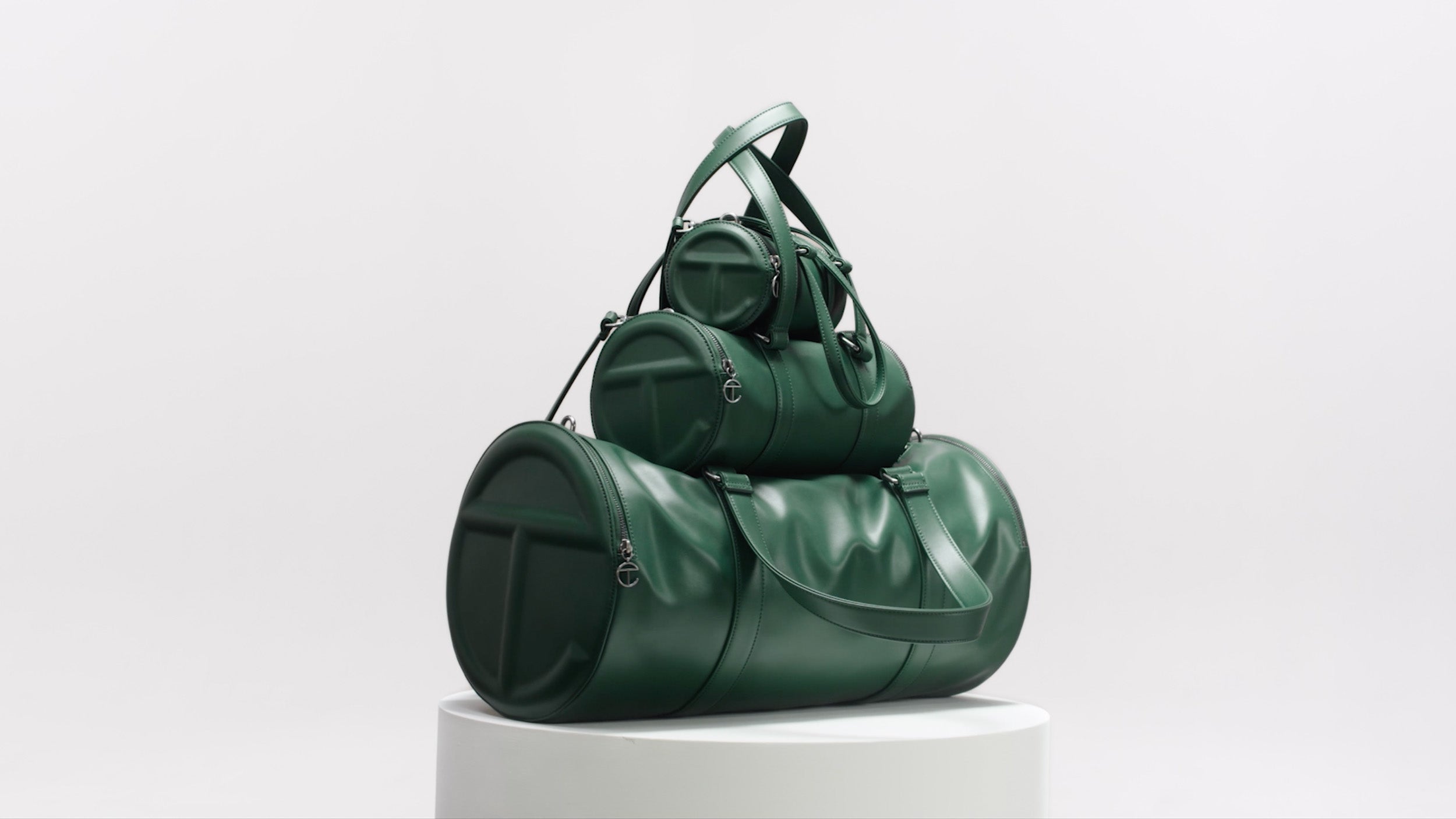 The Medium TELFAR Duffle is a universal unisex icon in faux leather, in an all-day-everyday-everybody size. Featuring twin functional embossed TC logo side pockets, a generous interior with inner pocket, custom antique silver hardware and logo zipper pulls, twin handles and a detachable shoulder strap.