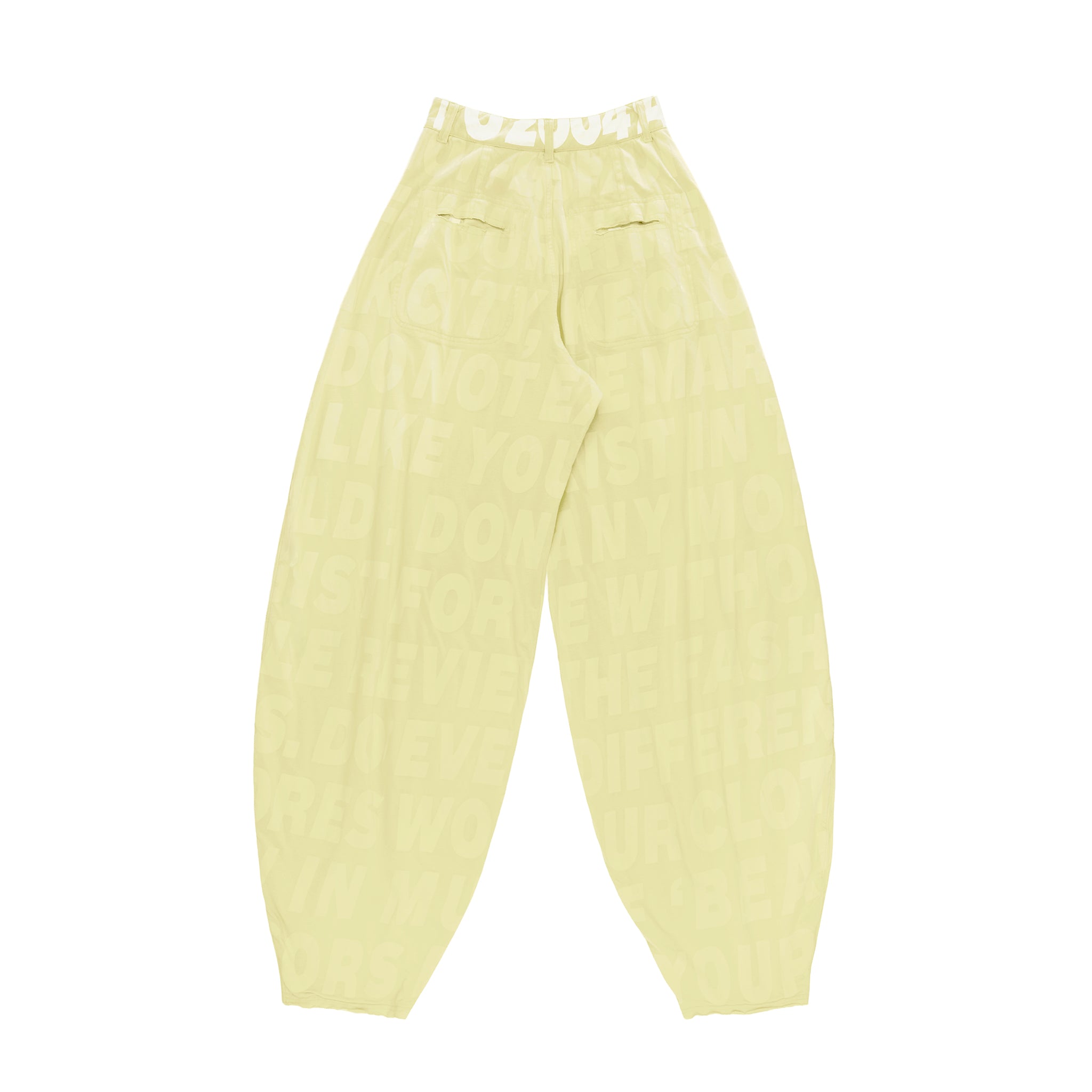 The Balloon T-Shirt Pant — a unisex cultural icon tailored with intention to do exactly what it’s supposed to do. Featuring our signature Mission print, deep pockets in front, slit pockets in back, zipper and fuax horn button closure. Exposed seams and raw edges at back panel. Baggy fit that tapers at the ankles.