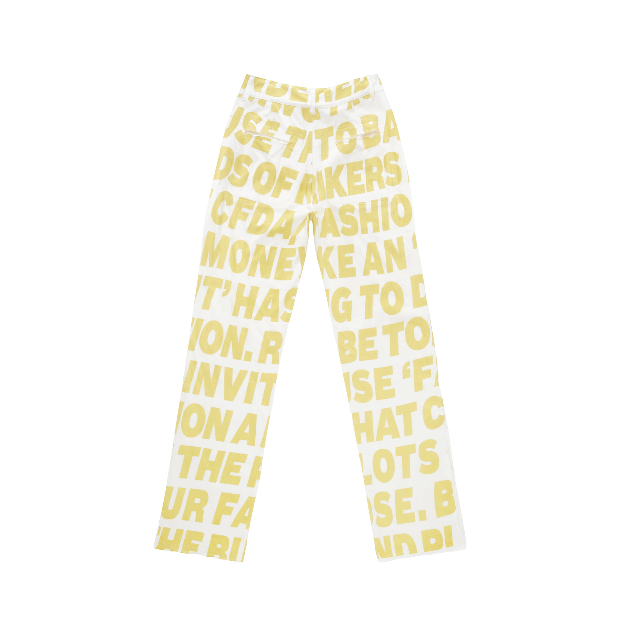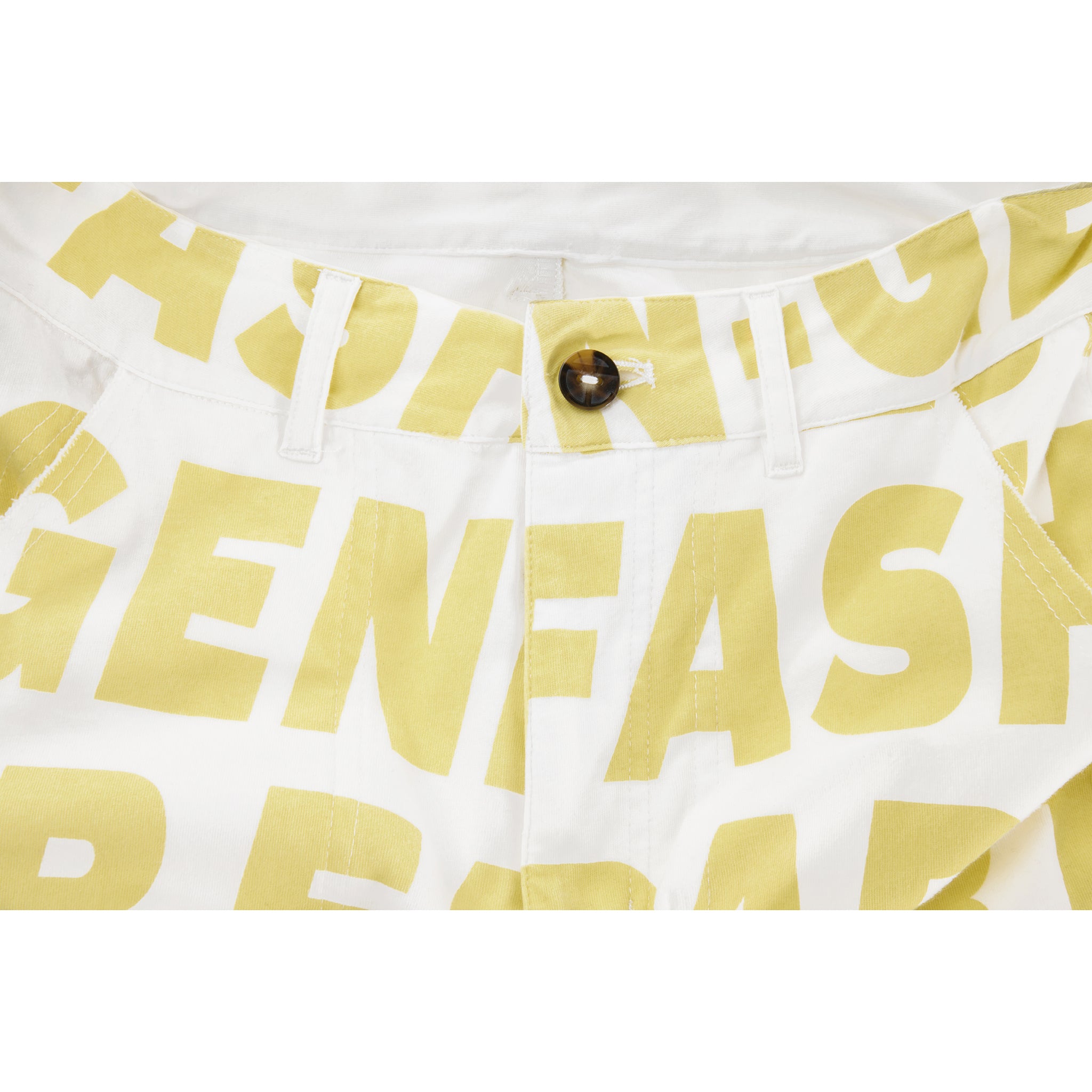 Our Split T-Shirt Pant — a unisex cultural icon in our signature Mission print on 100% ultra-soft jersey cotton. Featuring deep pockets in the front, slit pockets in back, logo, zipper and custom faux horn button closure — forming a relaxed straight fit silhouette with raw edges and side slits.