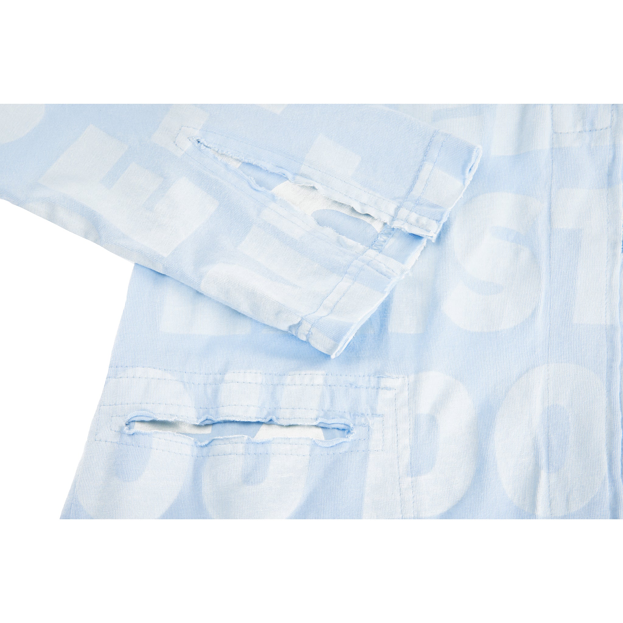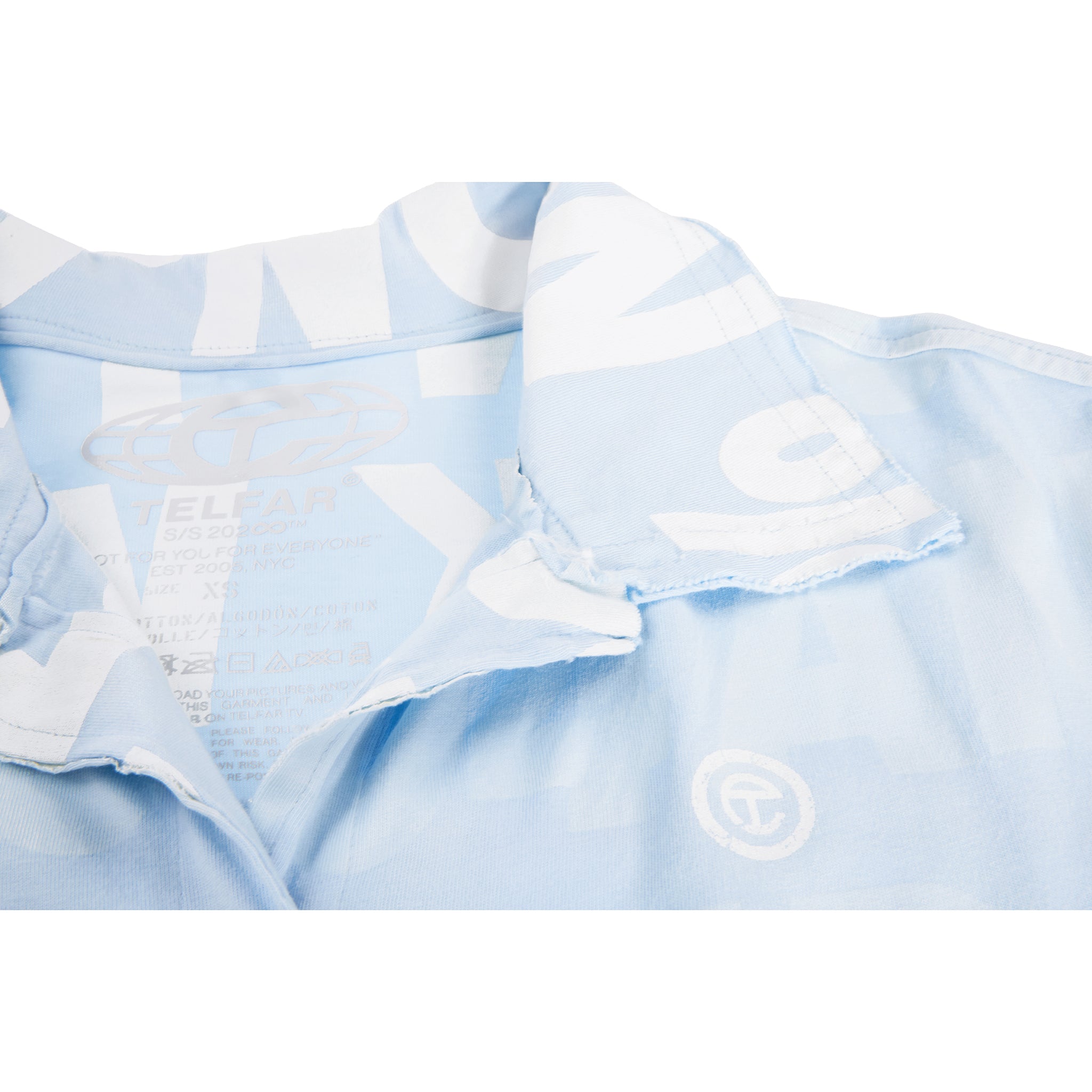 The Tall Split Dress Shirt — featuring our signature Mission print on 100% ultra-soft jersey cotton. Constructed with a classic collar, long sleeves, hidden button closures, deep slit pockets at the waist, exposed seams and raw edges.