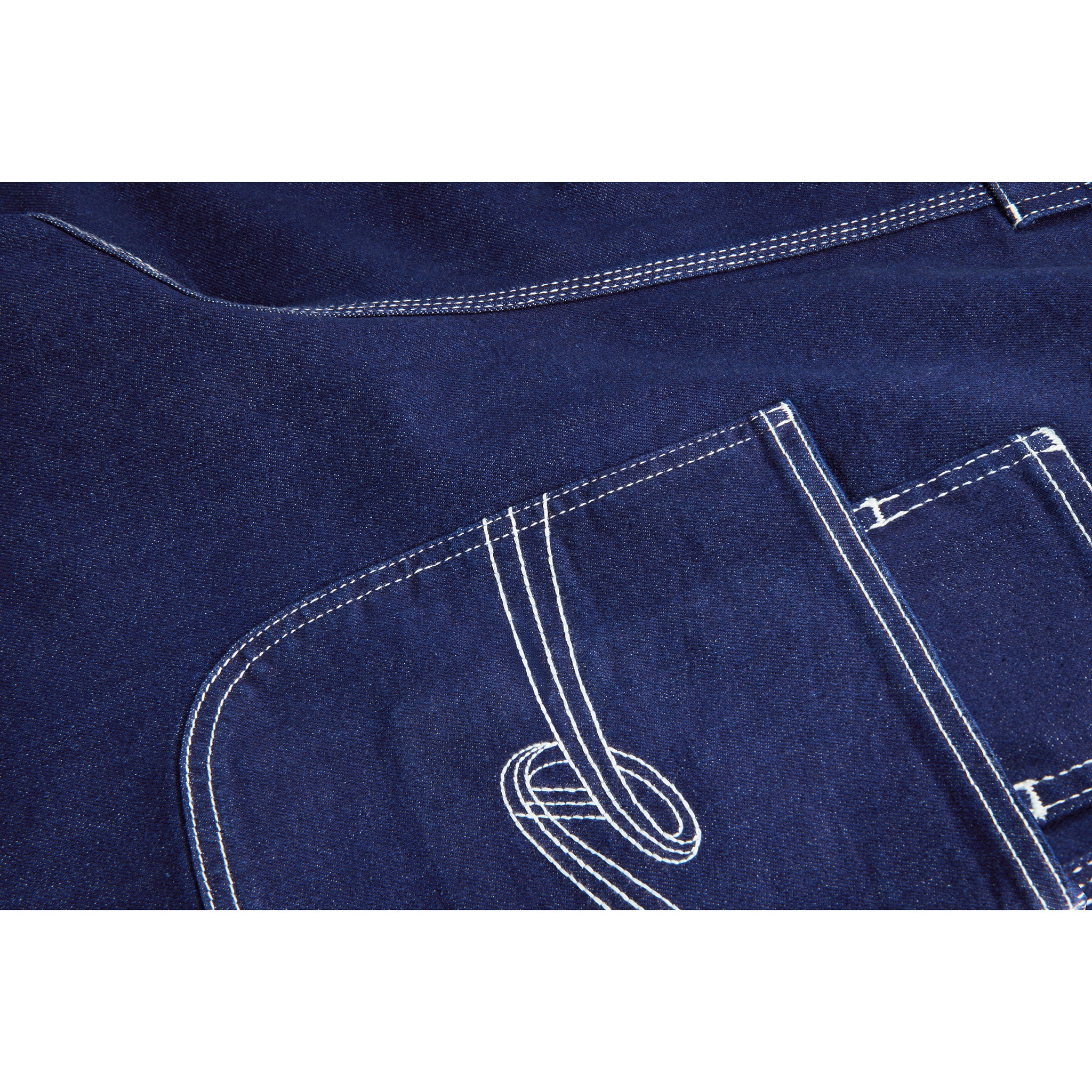 Our take on the classic blue wash Painter Jean — a unisex cultural icon tailored with intention to do exactly what it’s supposed to do. Featuring a hammer loop, logo embroidered deep pockets wrapping from front to back, hidden belt loop stash compartments, custom hardware and debossed leather patch on back.