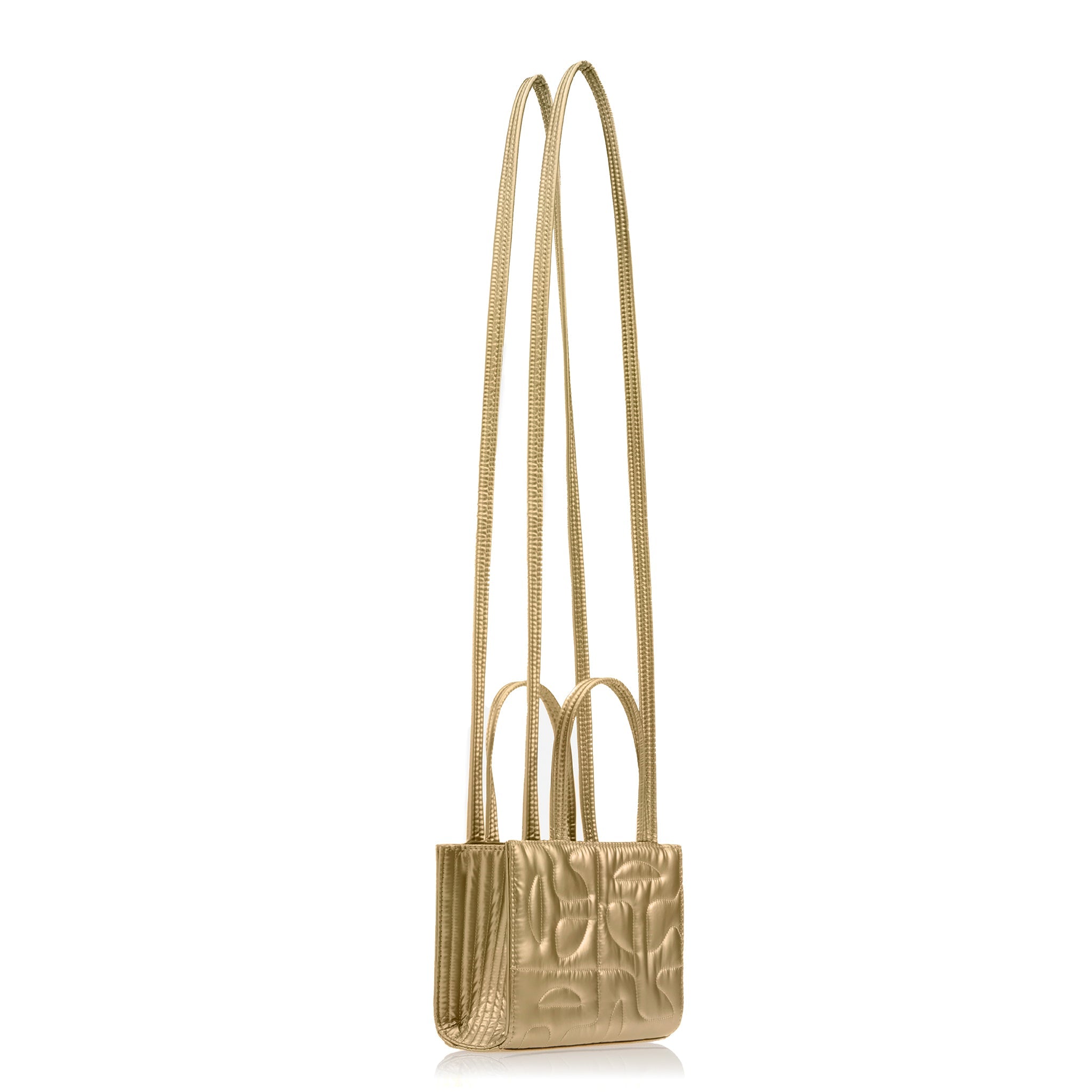 Our iconic Unisex TELFAR bag, engineered by Moose Knuckles, with our signature all-over monogram quilt pattern — available for the first time in SMALL size. Featuring a double strap to be held in hand, over the shoulder, or cross-body, with a magnetic snap closure.