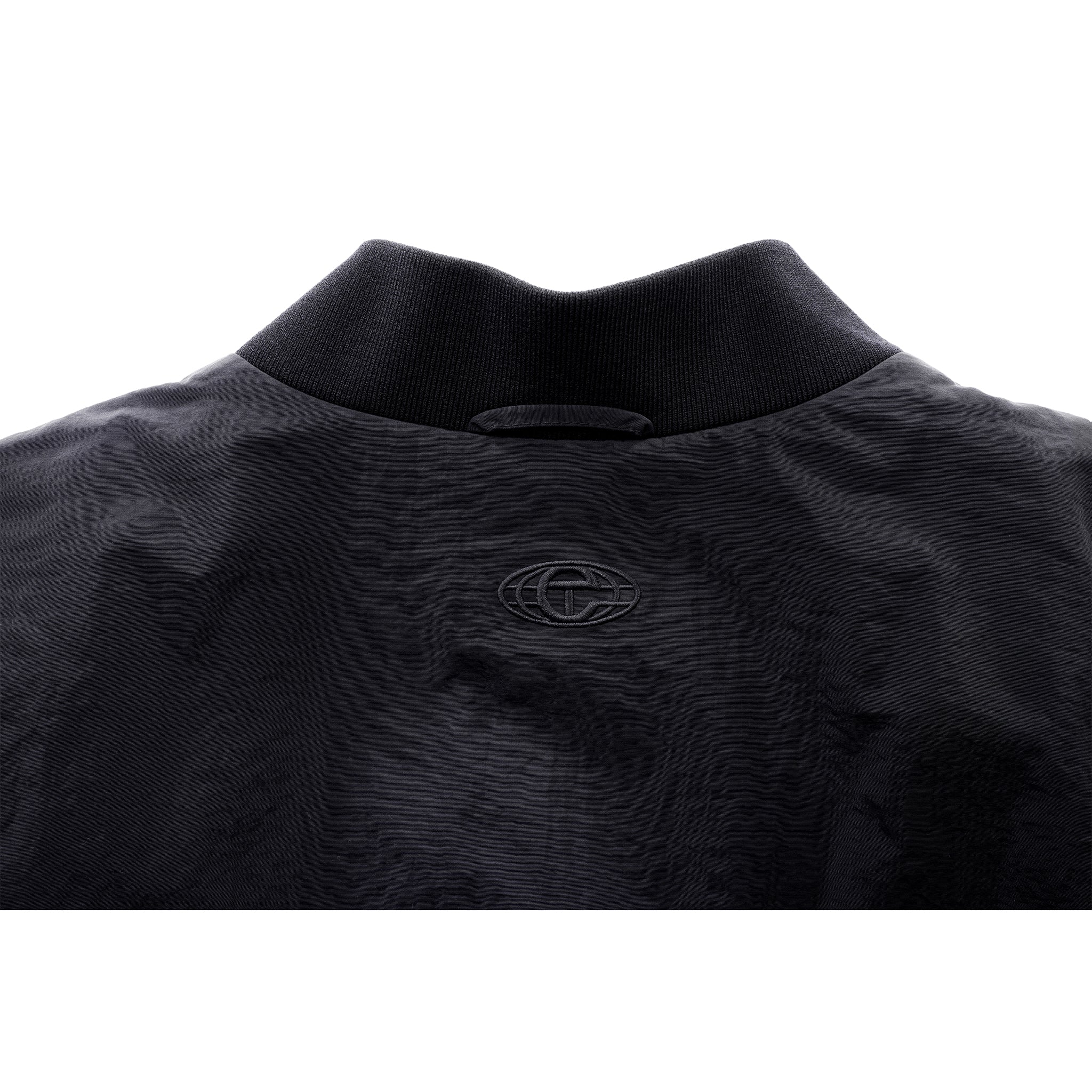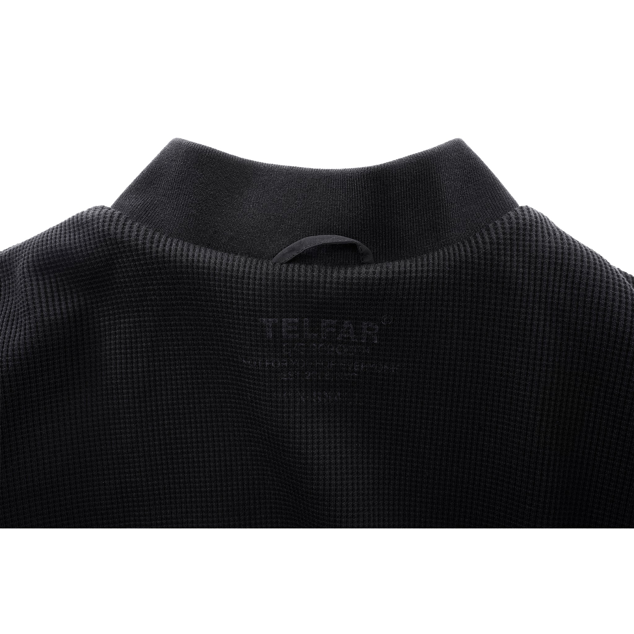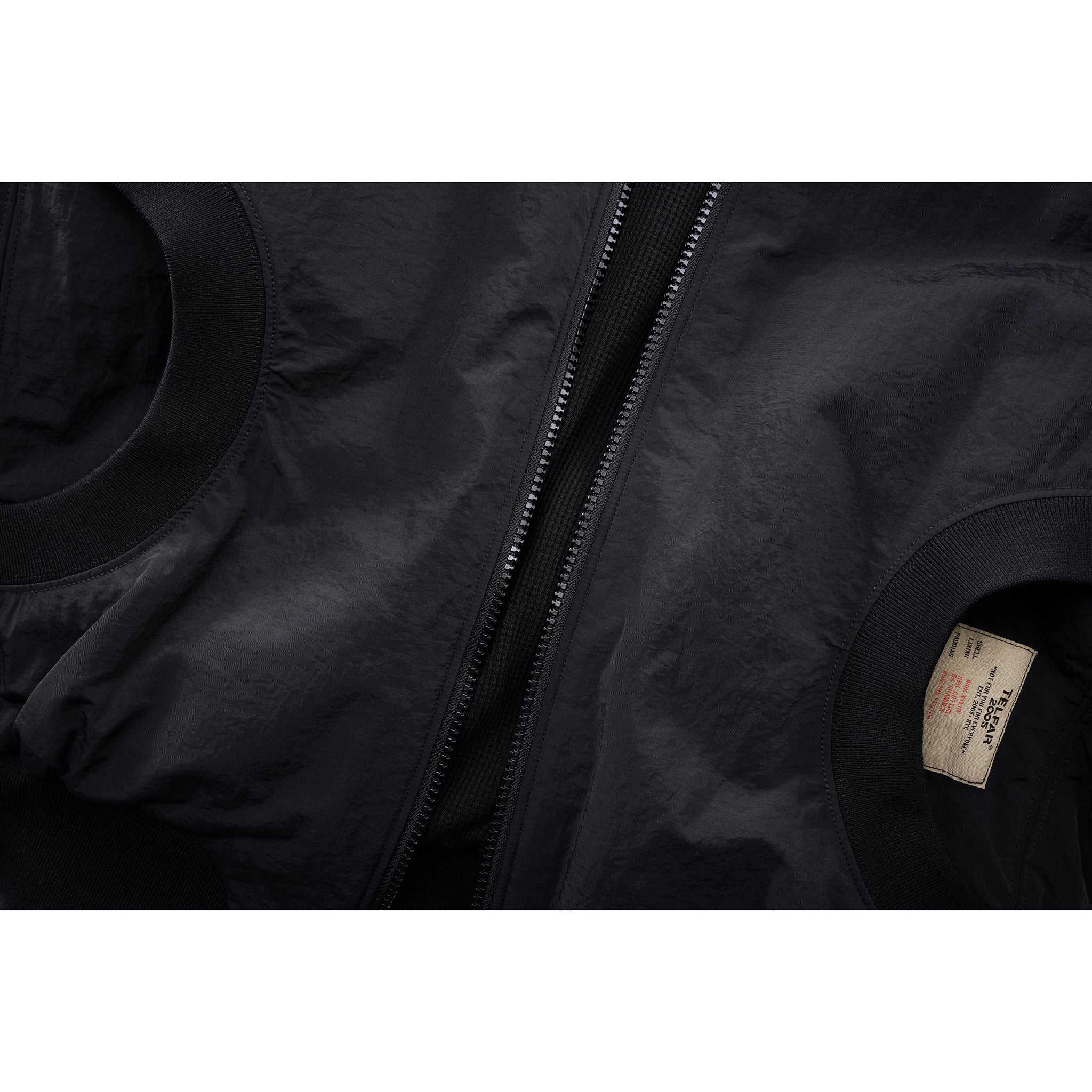 Reversible bomber jacket with water-resistant matte exterior, thermal waffle knit interior. Slit pockets at the side and around the elbows. Ribbed trim at the collar, waistband, cuffs and pockets. Full zipper closure. Available in Black and Rust.