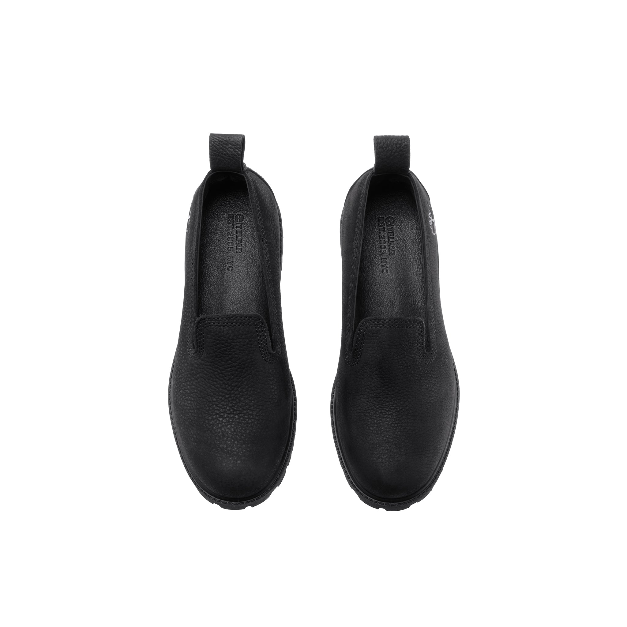 The Telfar Timberland Loafer — where we cut away the whole upper to get down to the core versatility that make Timbs a classic. For any season — or no reason; the Telfar Timberland Loafer gives physical form to what’s been true regardless: Timbs are not just for the fall — and not just for ‘work’ — you can wear this shoe to a wedding, the beach or whatever. Now it’s official — no boxcutters needed. Features a rounded toe, custom embossed cobranding, interior anti fatigue removable footbed, and rubber lug outsole. Available in wheat and black