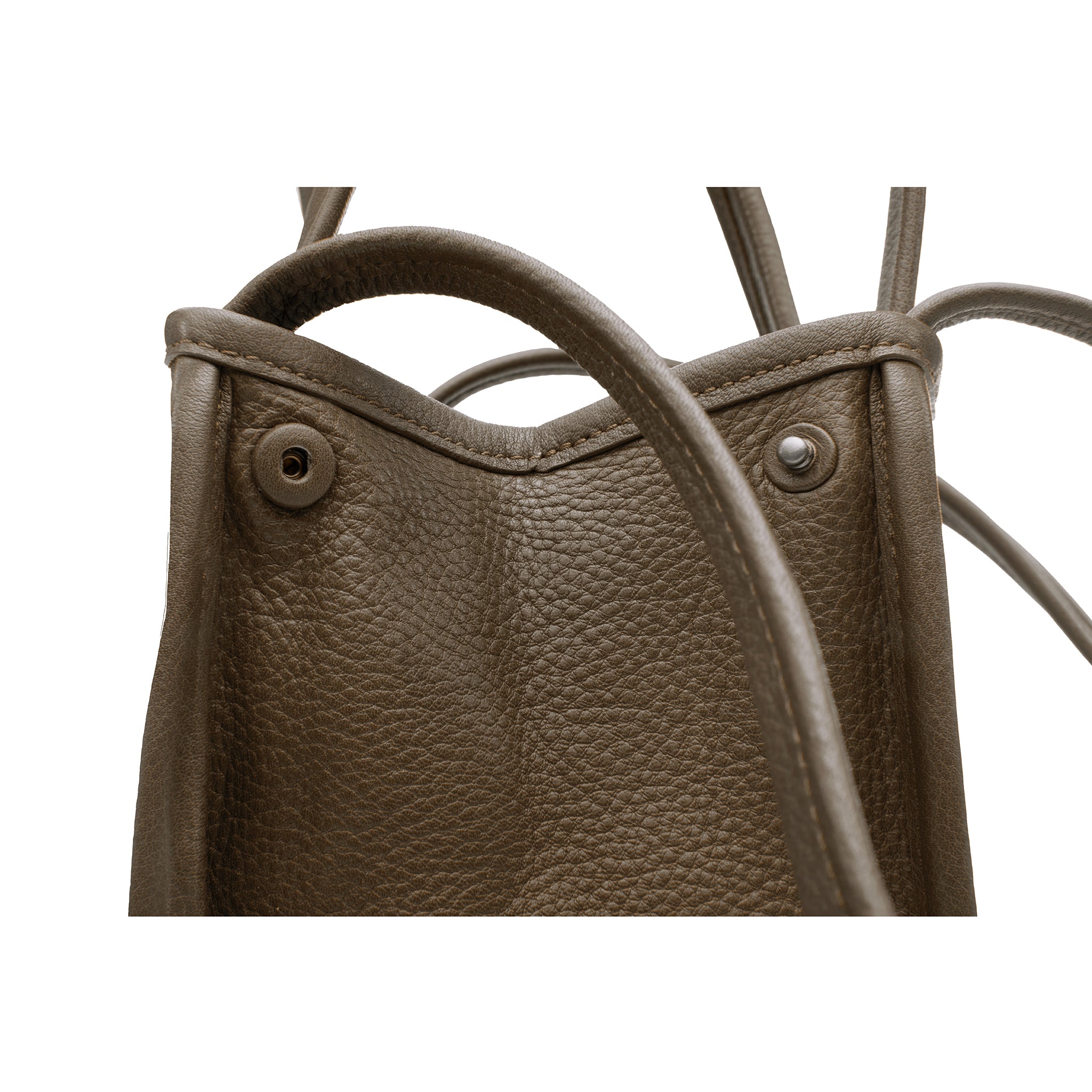 TELFAR’s answer to traditional luxury. Hewn in soft, aniline, full-grain pebble leather — left unlined (since it has nothing to hide), The Carry starts with our iconic tote and deepens in the gusset — to gather with leather-covered snaps and then drape with an unstructured swagger that you can feel on your eyes. With supple folds that contour to your body and hand straps lengthened luxuriously — so you can now carry The Carry — on your shoulder. Hardware has been intentionally kept to a minimum; studded feet, and an interior key ring.
