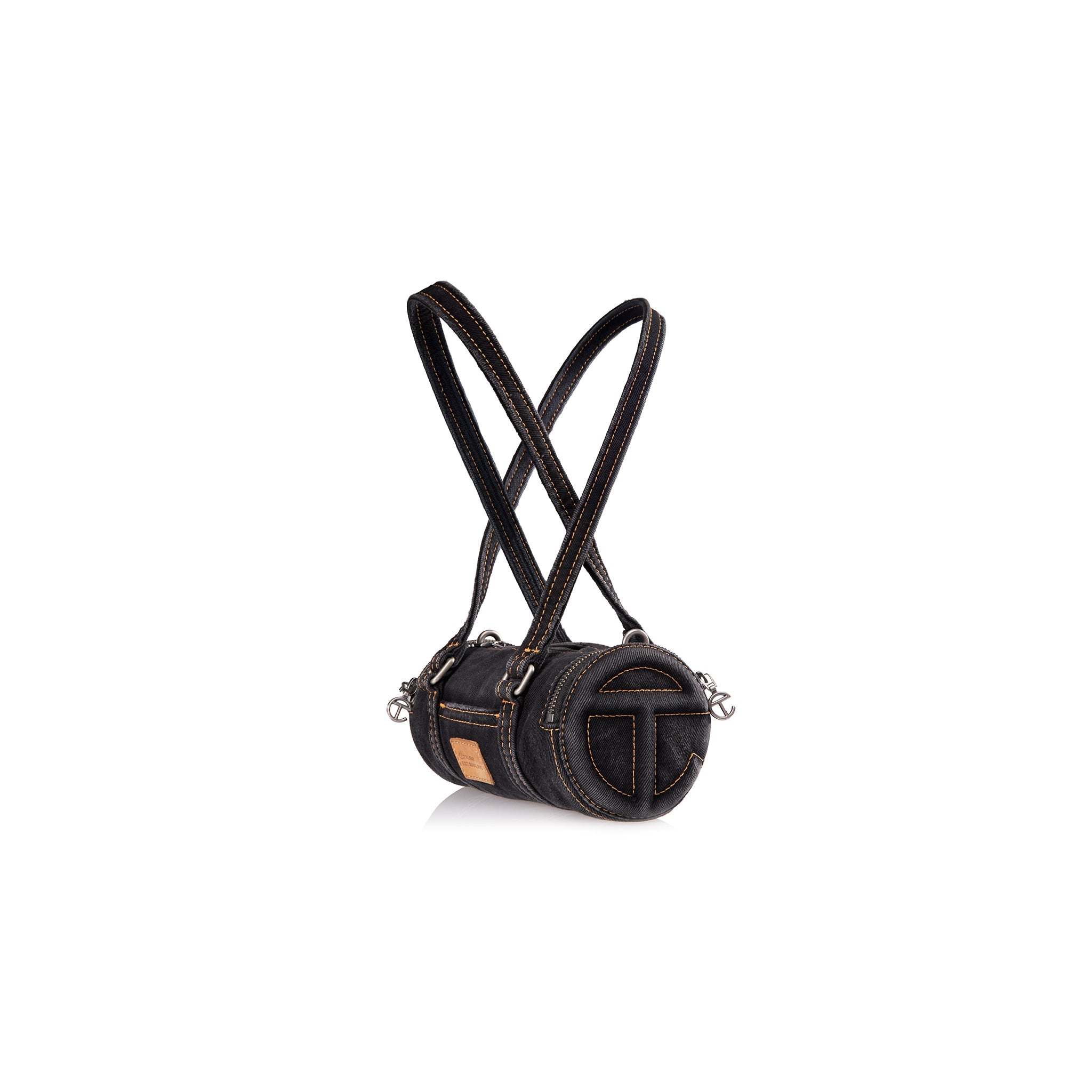 The Small TELFAR Duffle is a universal unisex icon – now in blue and black denim wash, in an irresistible fun-size that’s fully functional for any function and beyond. Featuring embossed TC logo zip pockets on both ends, slit pocket at the side panel, a generous interior with inner pocket, custom antique silver hardware and logo zipper pulls, twin handles and a detachable shoulder strap.