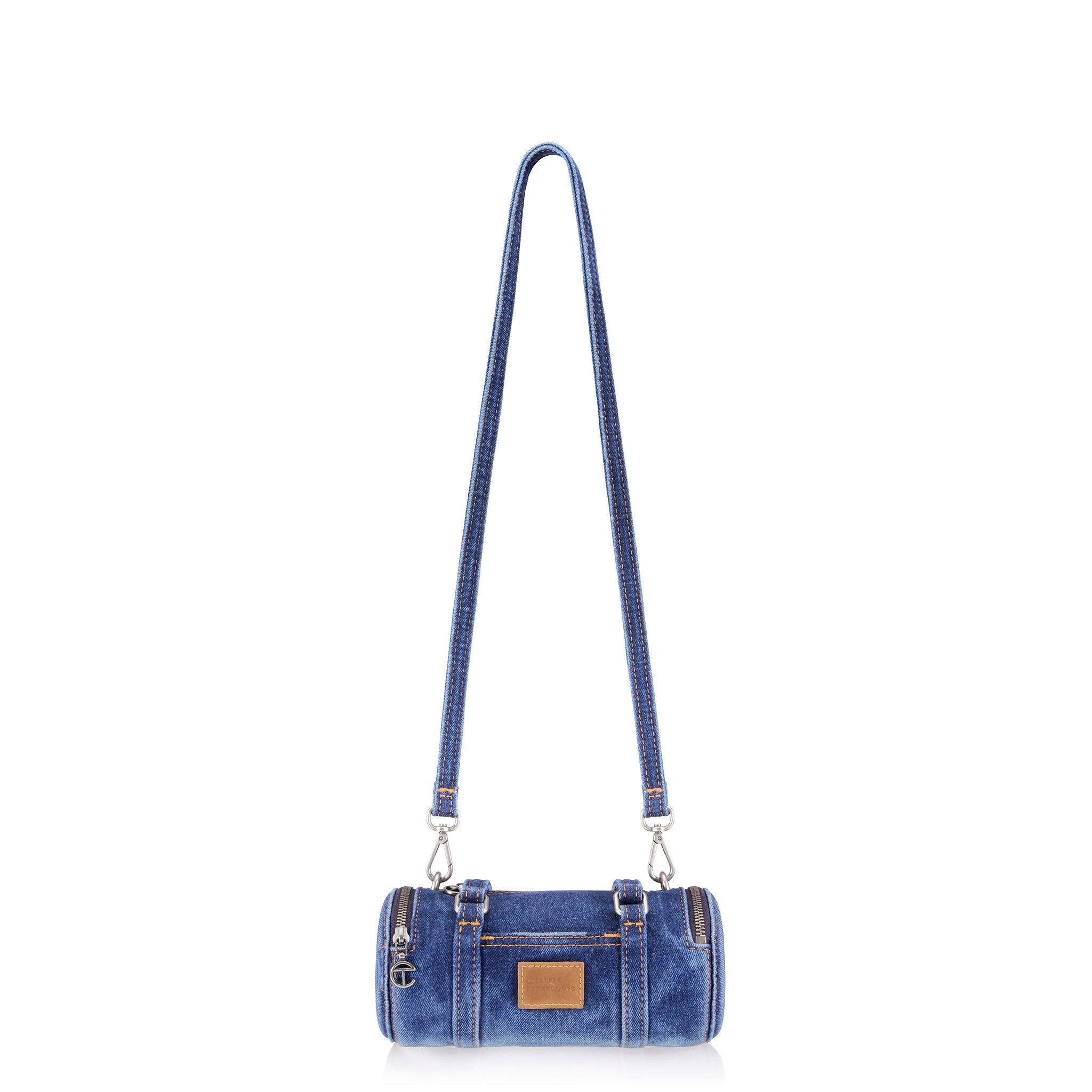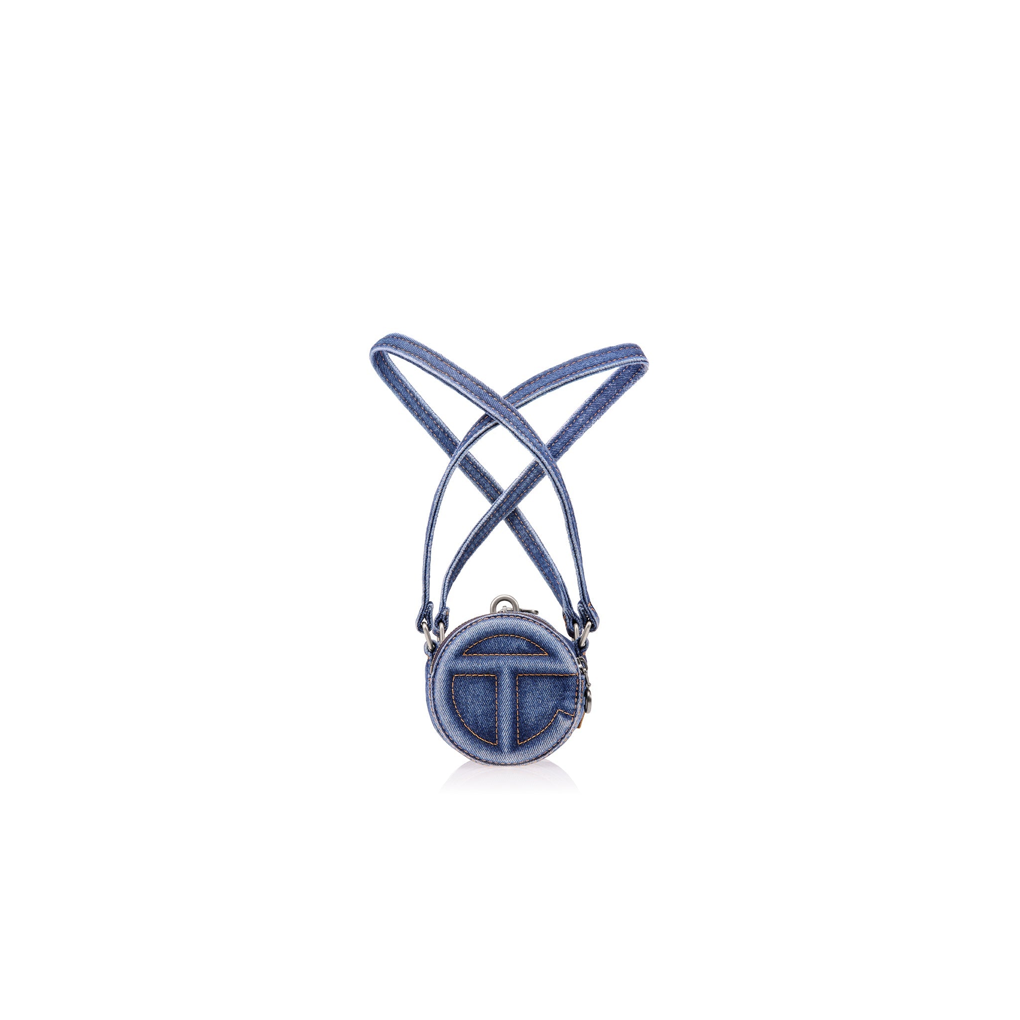 The Small TELFAR Duffle is a universal unisex icon – now in blue and black denim wash, in an irresistible fun-size that’s fully functional for any function and beyond. Featuring embossed TC logo zip pockets on both ends, slit pocket at the side panel, a generous interior with inner pocket, custom antique silver hardware and logo zipper pulls, twin handles and a detachable shoulder strap.