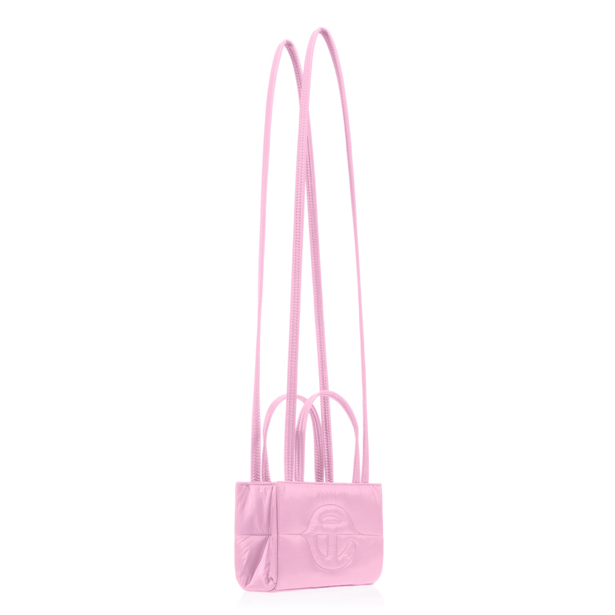Our iconic Unisex TELFAR Bag, engineered in quilted nylon puff — available for the first time in SMALL size. Featuring a double strap to be held in hand, over the shoulder or cross-body, and a magnetic snap closure.