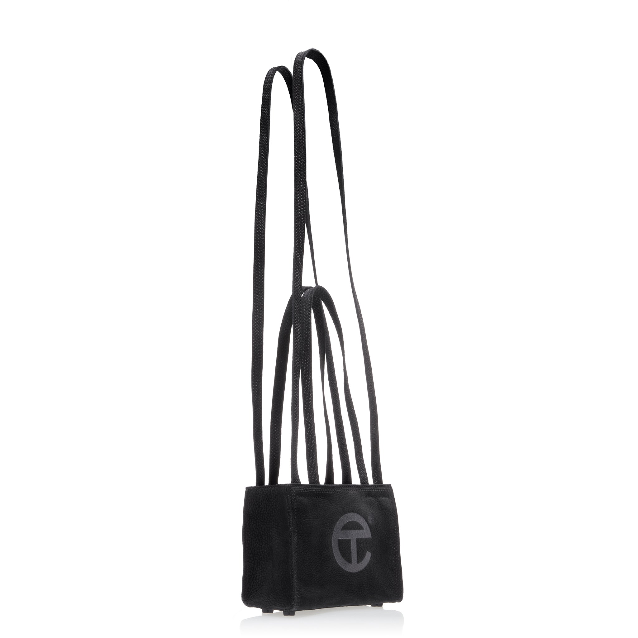 The Telfar Timberland shoppers: hewn in supple pebbled nubuck leather is both our softest and hardest ever collab. Our thick nubuck leather requires no internal structure or lining and gives a suave drape; with the iconic heavy quadruple needle stitch running its straps and our logo burned into its front. But we saved the best for last — with the base of each bag studded with four natural rubber feet taken straight from the iconic tread of the Timberland boot. Available in wheat and black.