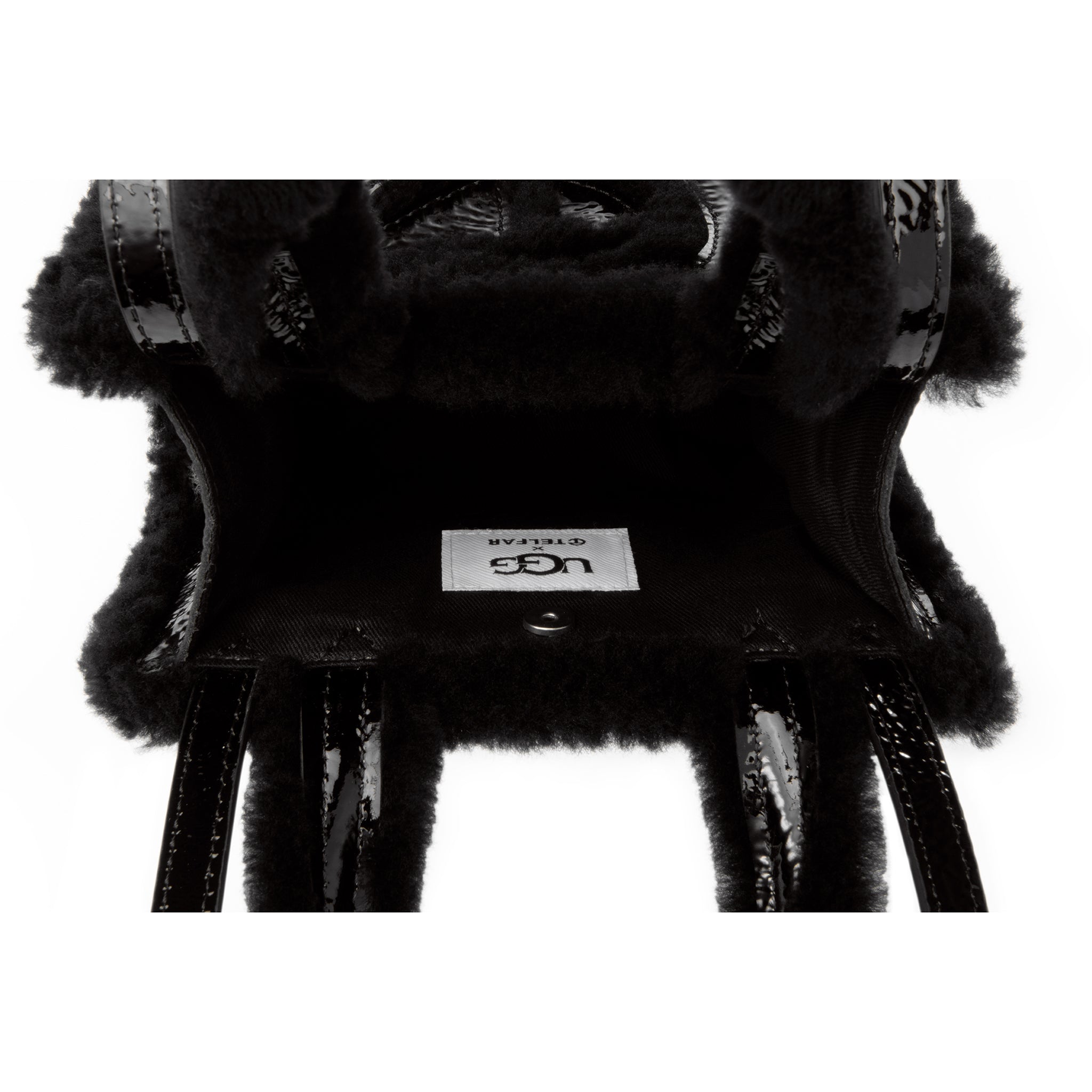 Our iconic UGG x TELFAR shopper in crinkle patent leather with a cuddly genuine shearling trim. Bag features double strap to be worn cross-body, inner zip compartment and magnetic snap closure.