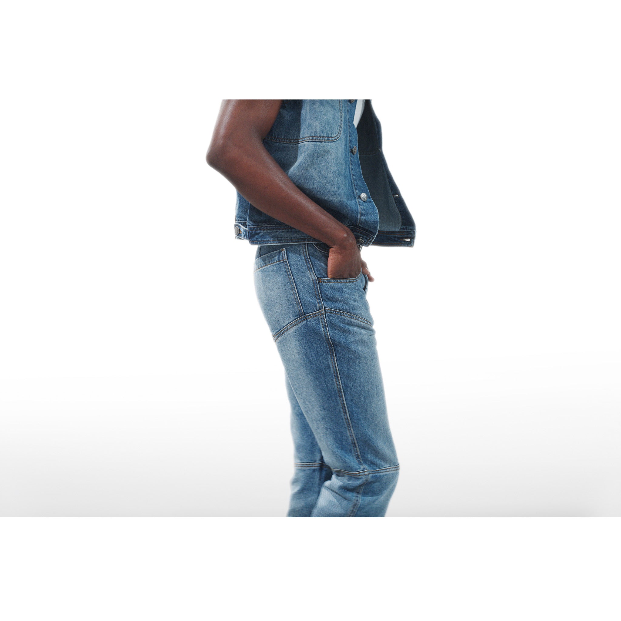 Our signature Straight Leg Jean silhouette featuring hidden belt loop stash compartments, custom hardware and debossed leather patch in back. Available in blue and black washed denim.