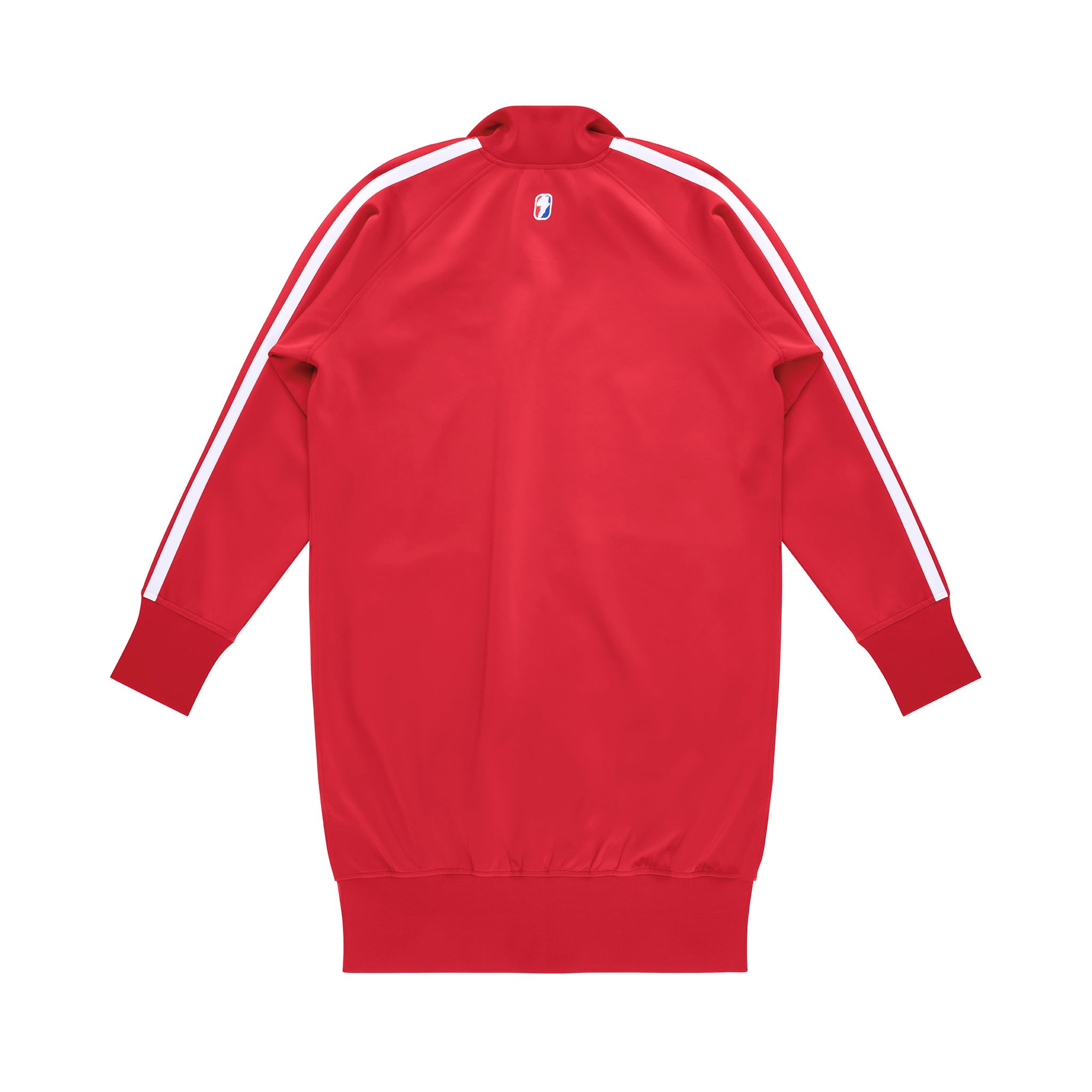 Long-line track jacket featuring sculptural stripes on the sleeves, athletic logo embroidery on the chest, logo zipper pull, welt pockets with zipper closure, ribbed collar, cuffs and waistband.
